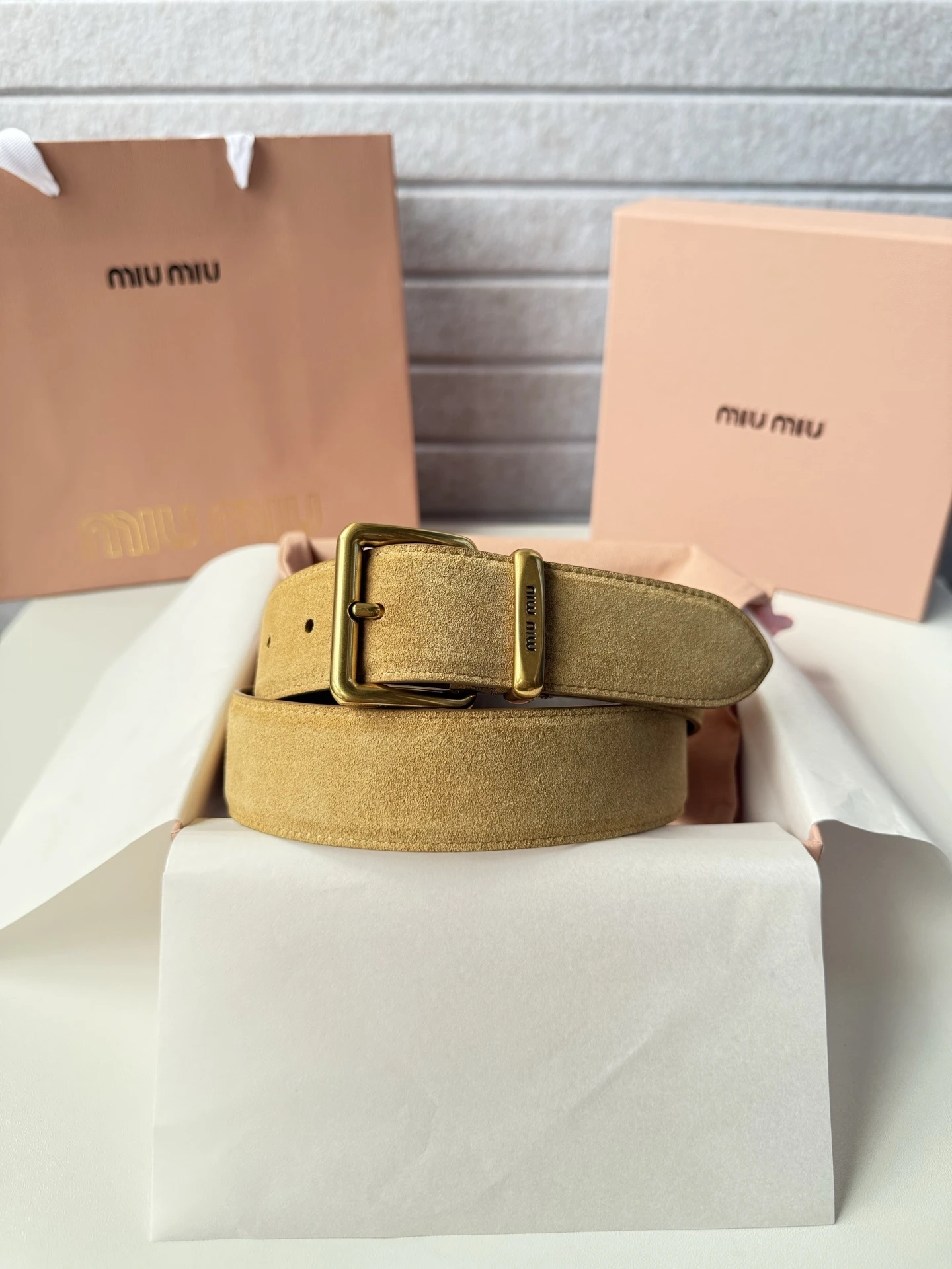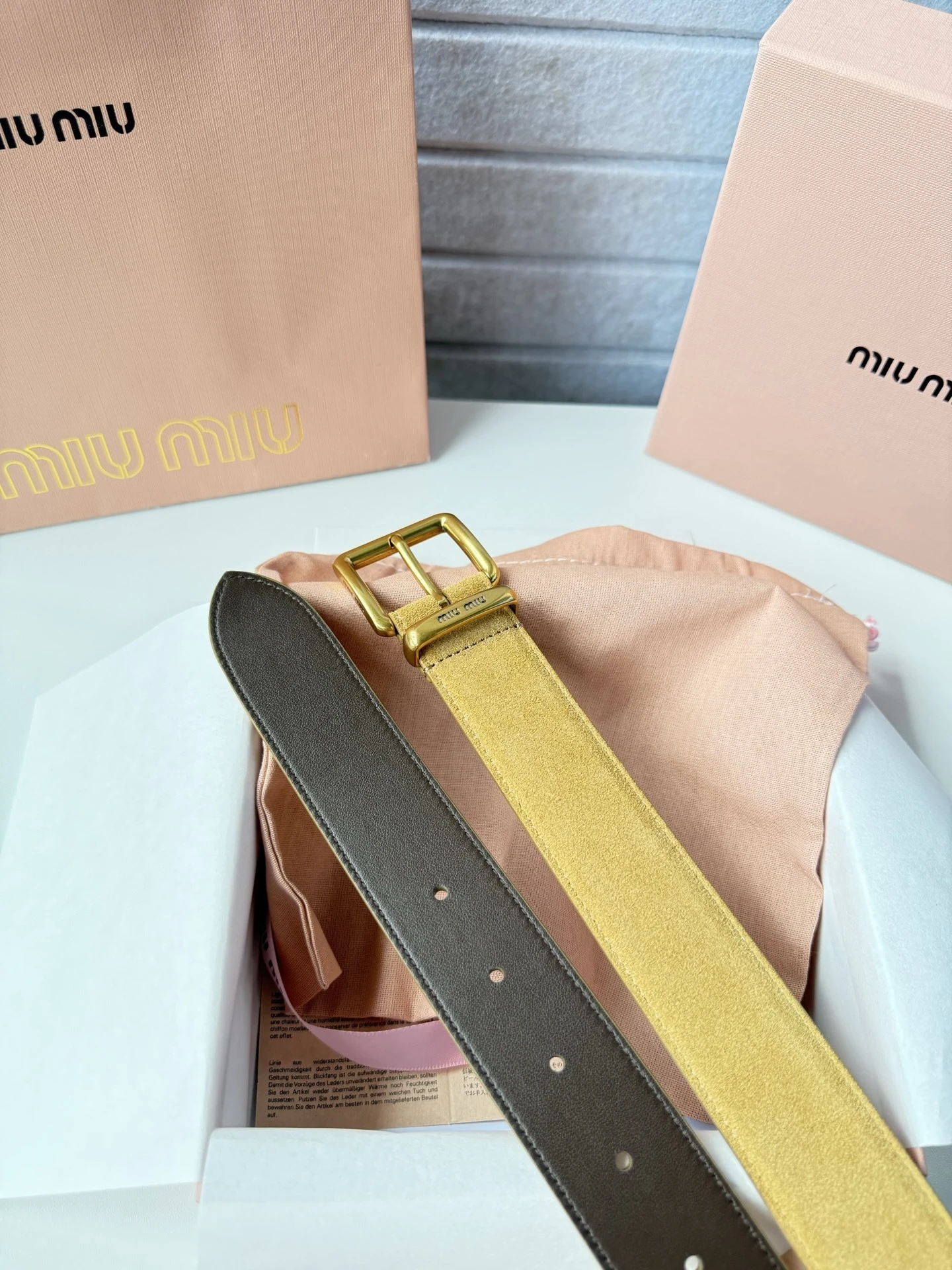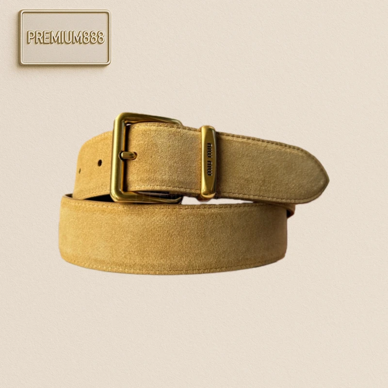 Miumiu high-end women's belt, width 3.5cm. Double-sided top-grain cowhide material, soft and comfortable. Original steel logo on the back. Fine craftsmanship, paired with pure c