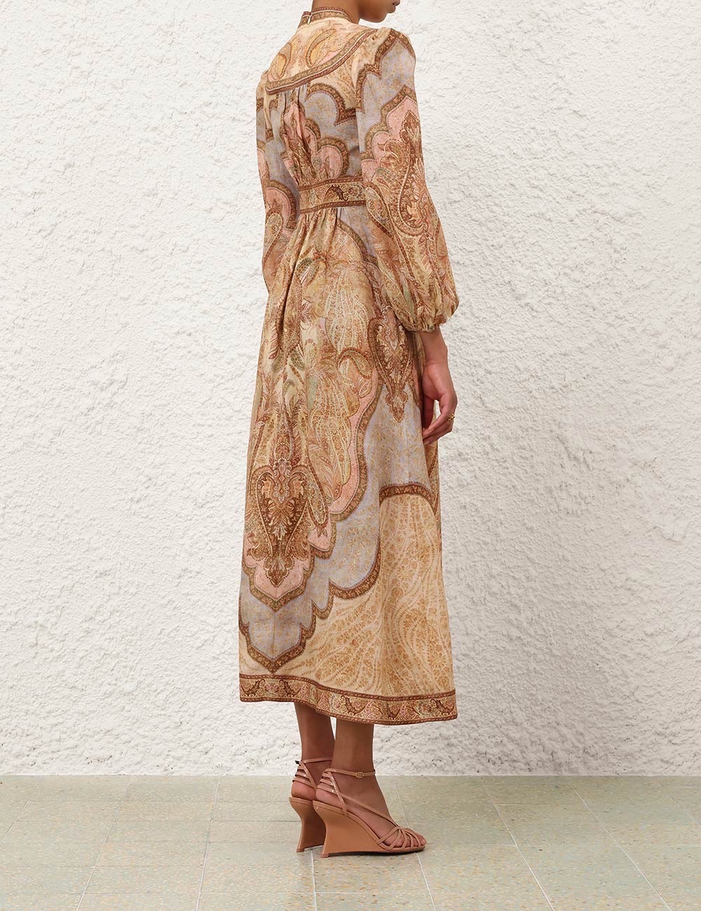 Zimmerman Extract the narrative texture of Persian paisley patterns, and reconstruct the visual rhythm with Byzantine mosaic-style soft mist color matching