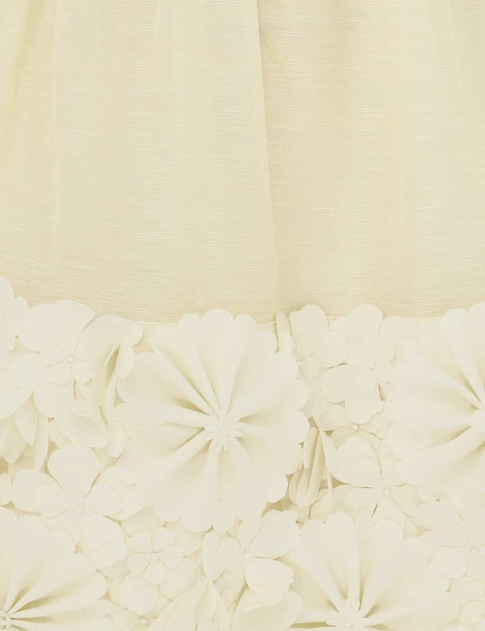 Made of luxe linen and silk, The whimsical Harmony minidress decorates the off-the-shoulder bodice with numerous floral appliqu