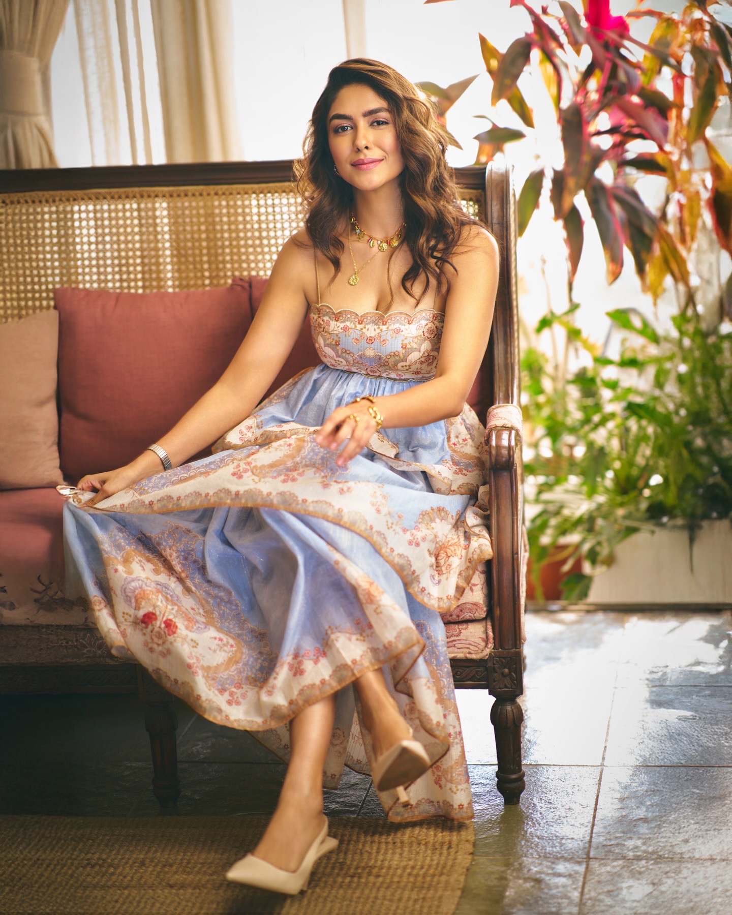 Zimmerman The pale blue base is adorned with vintage paisley patterns, and the strapless design paired with a full skirt creates a romantic tension, like wearin