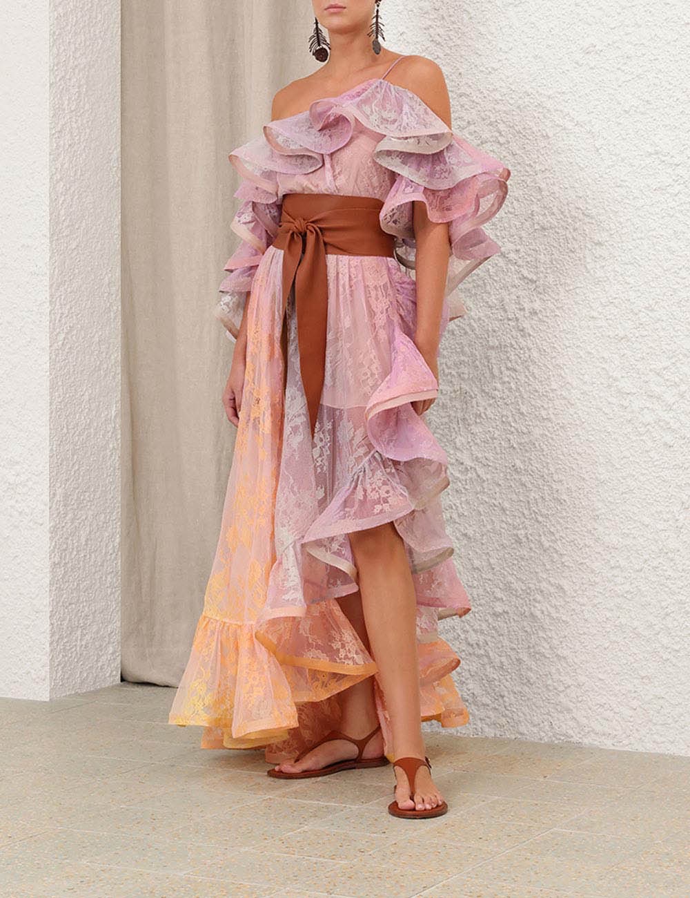 Zimmerman The Dawning Lace Midi Dress in Sunset from our Spring