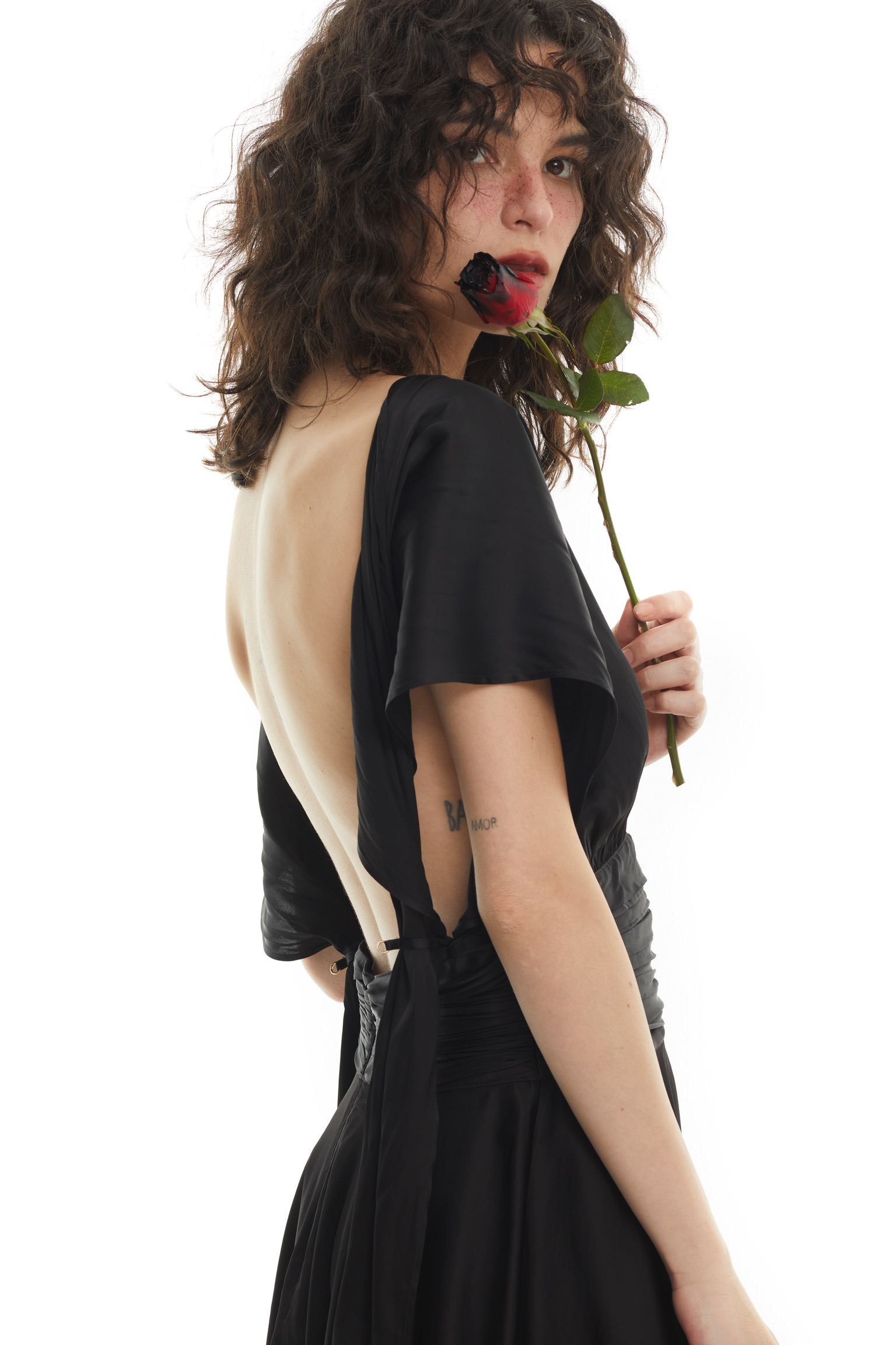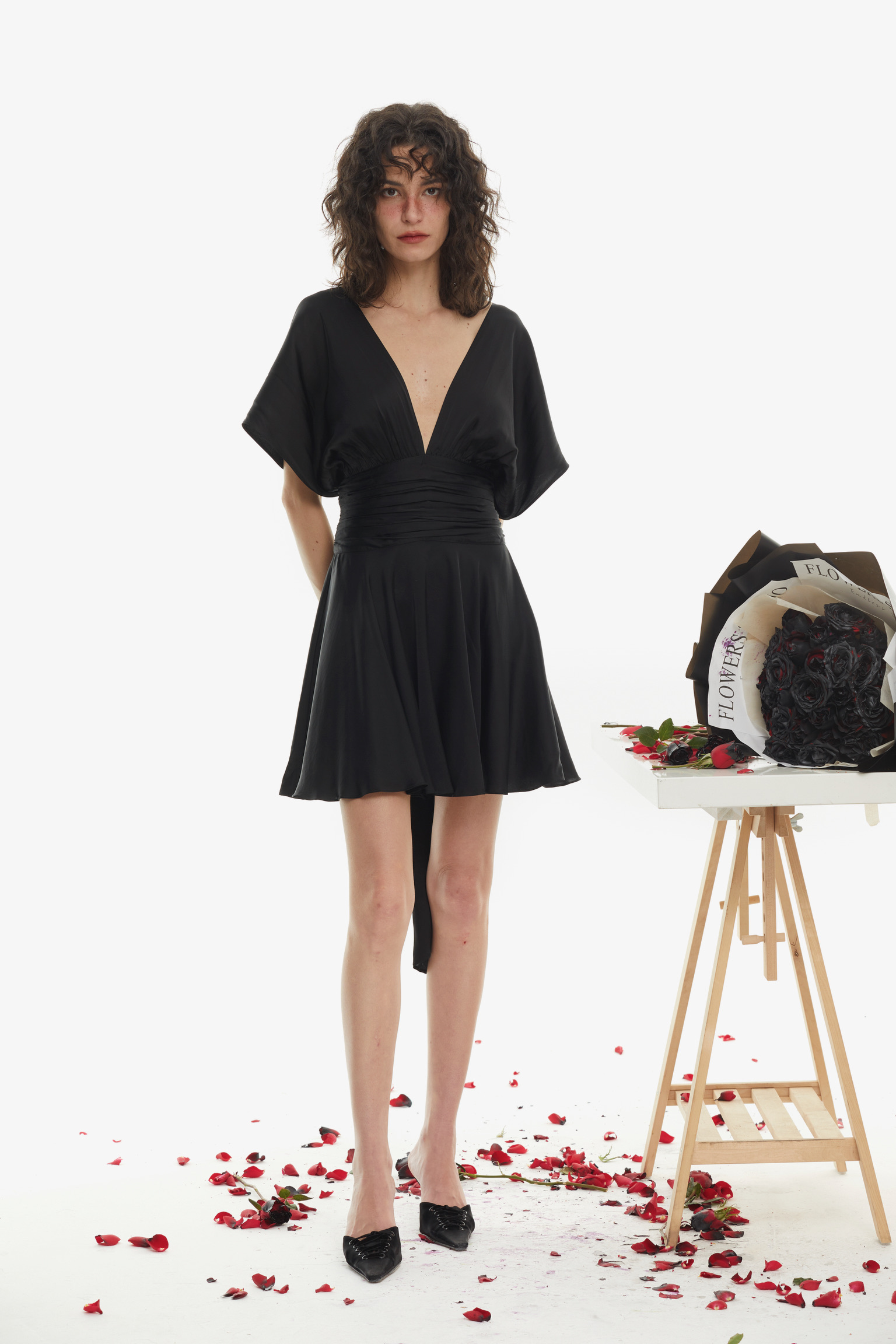 This convertible black mini dress is conceived as a canvas of fluid femininity, designed to blur the line between garment and self-expression. Crafted