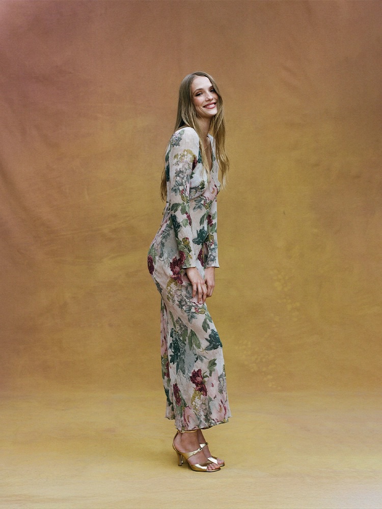 The Inka - long, elegant and semi sheer to give you the perfect amount of cover. With her deep neck line and bias cut skirt, channeling the ethereal s