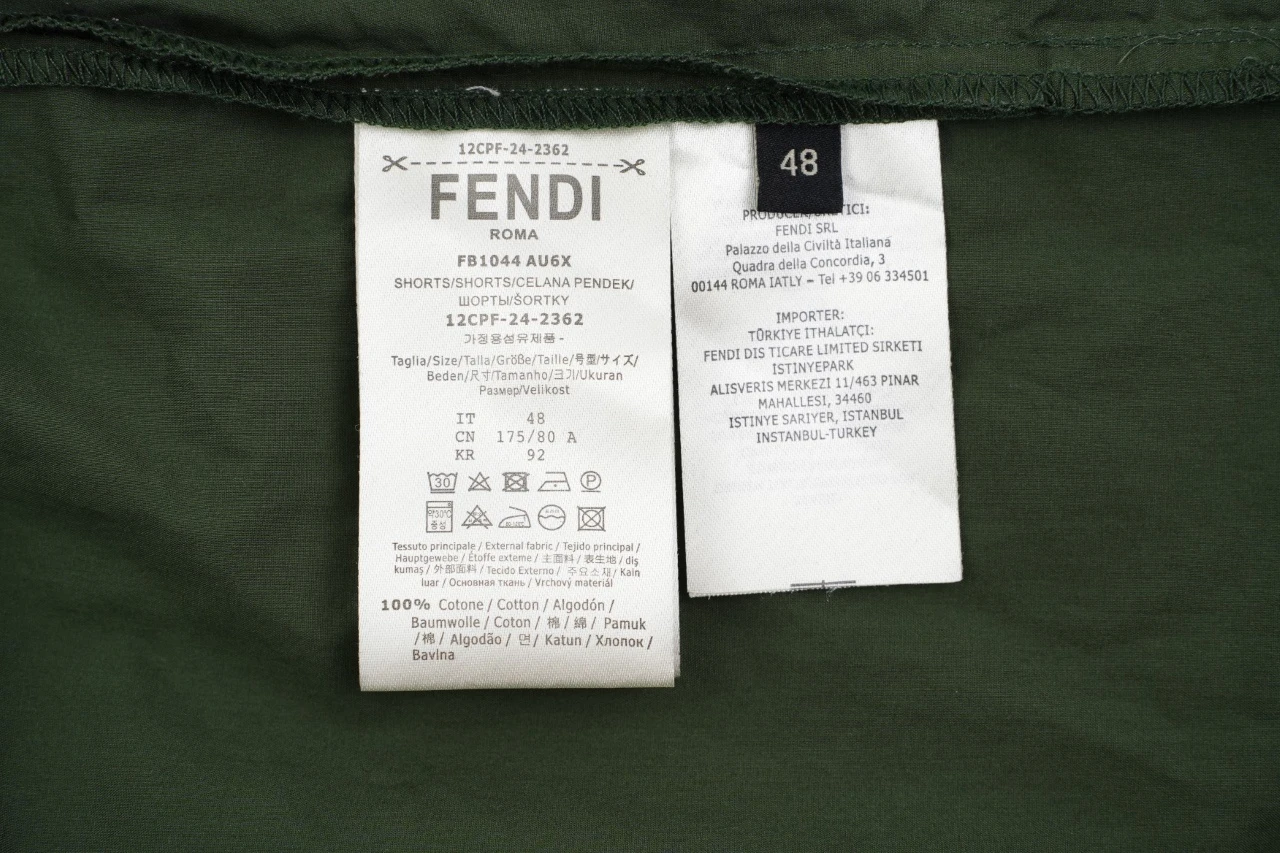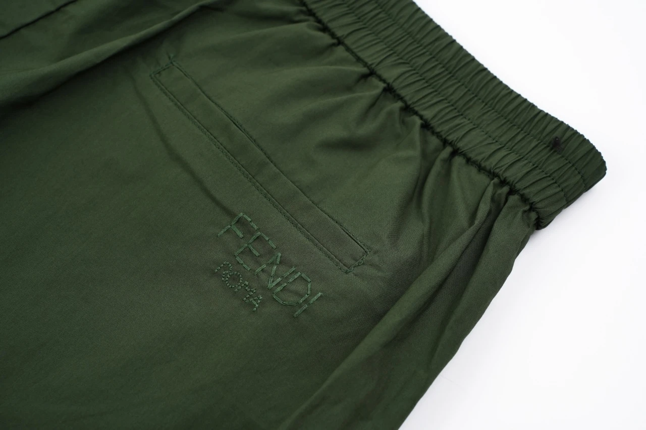 Fendi Embroidered shorts on the back pocket Fabric: worsted compact Tencel cotton, 110 grams, composition 100% cotton Exclusive weaving and dyeing Tencel cotton face cloth, the development of the version took more than 2 months. The weaving, thickness and material of the bulk fabric are the same as