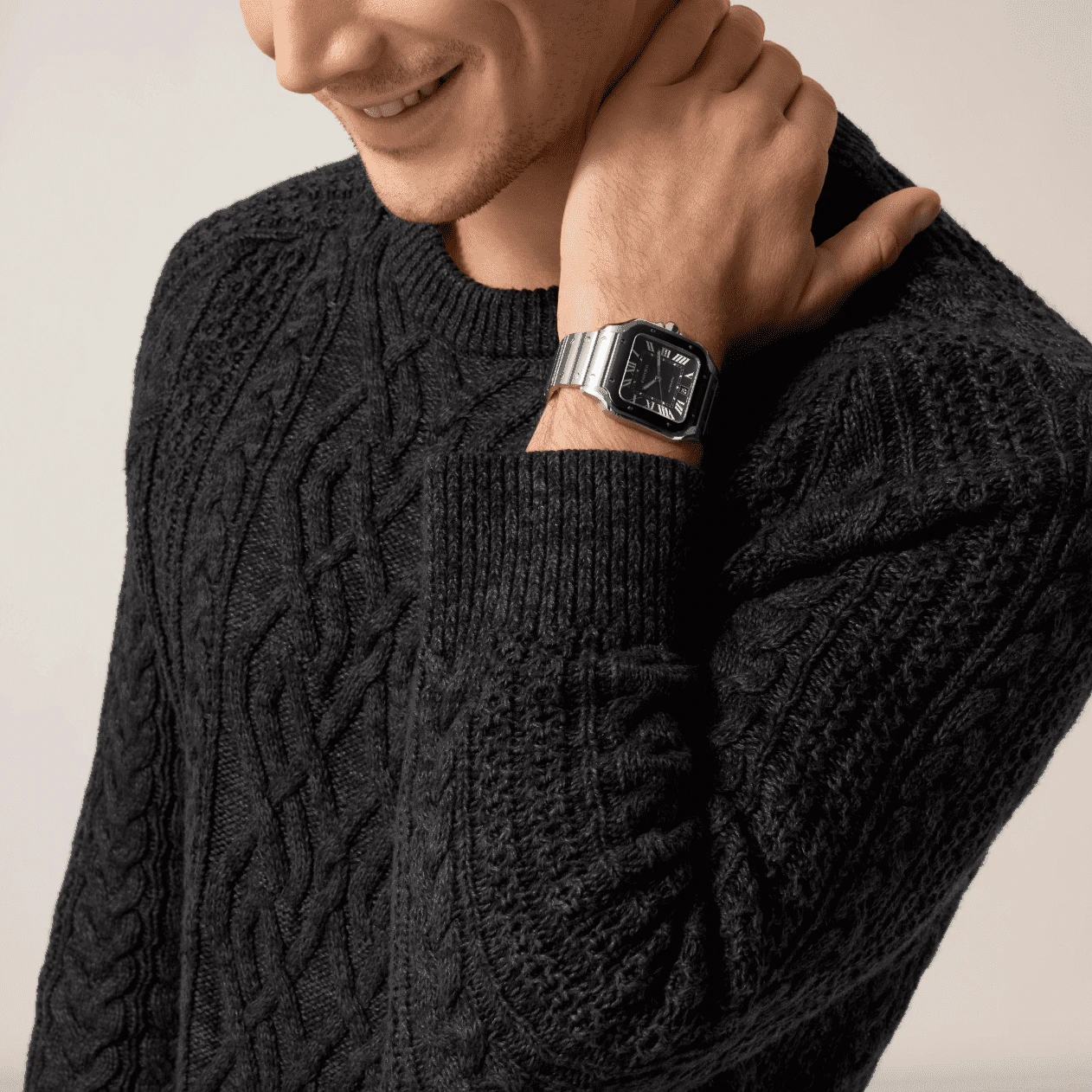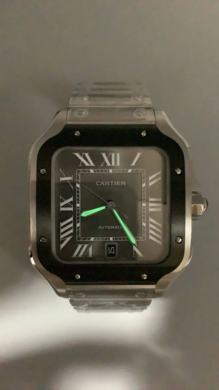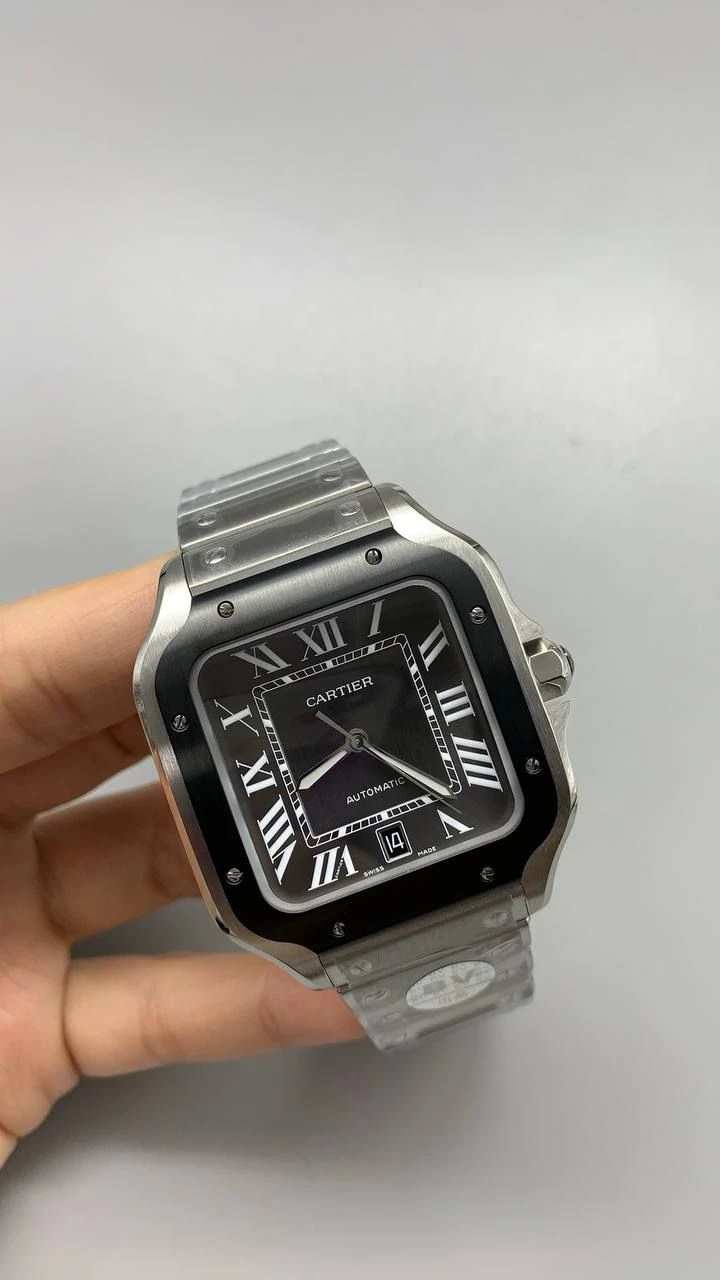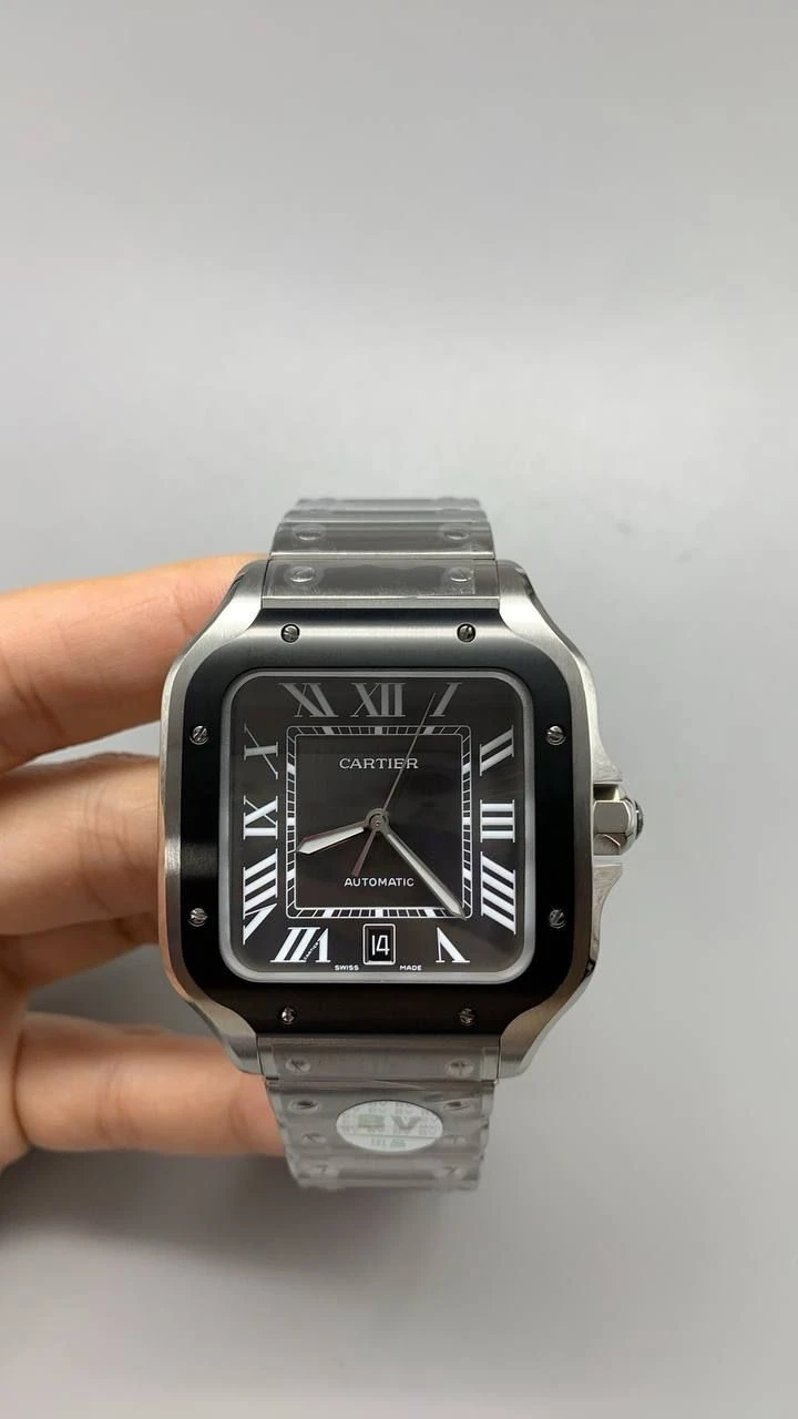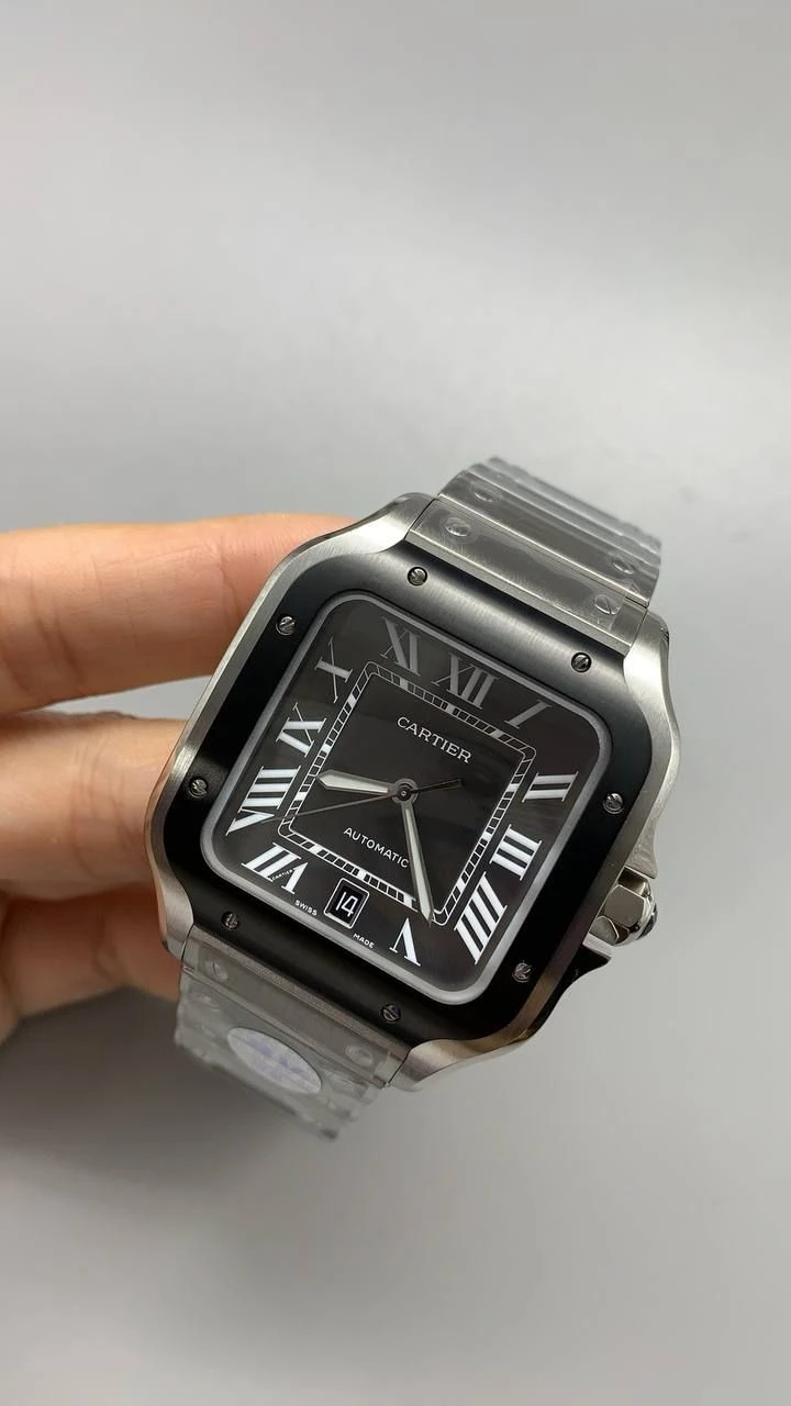 Часы Cartier Santos (сталь и черный циферблат)