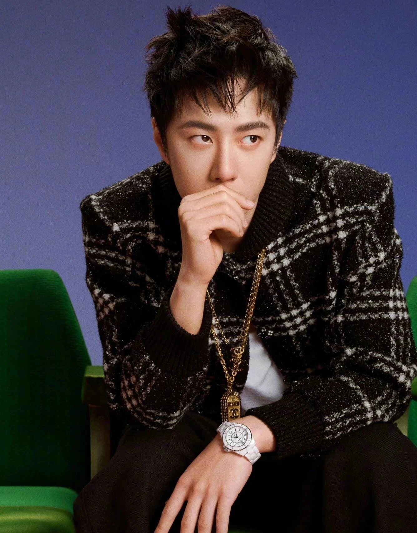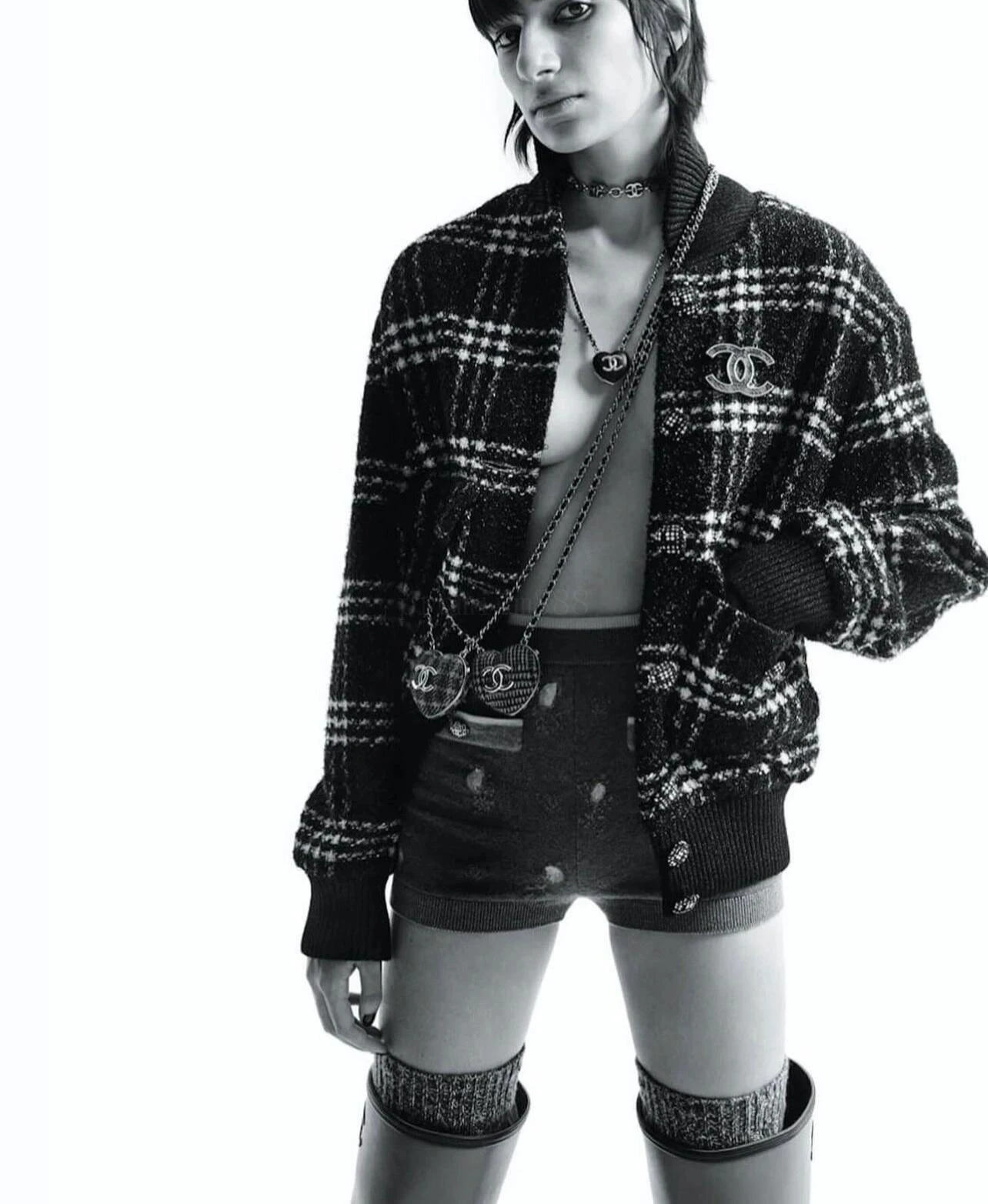 Chanel plaid single-breasted jacket Custom worsted wool melted yarn plaid elegant material and logo Logo Human silk jacquard lining Excellent texture Comfortable and close to the skin Outlining the retro silhouette in pure black and white The shimmering glittering yarn between the checks is intertw