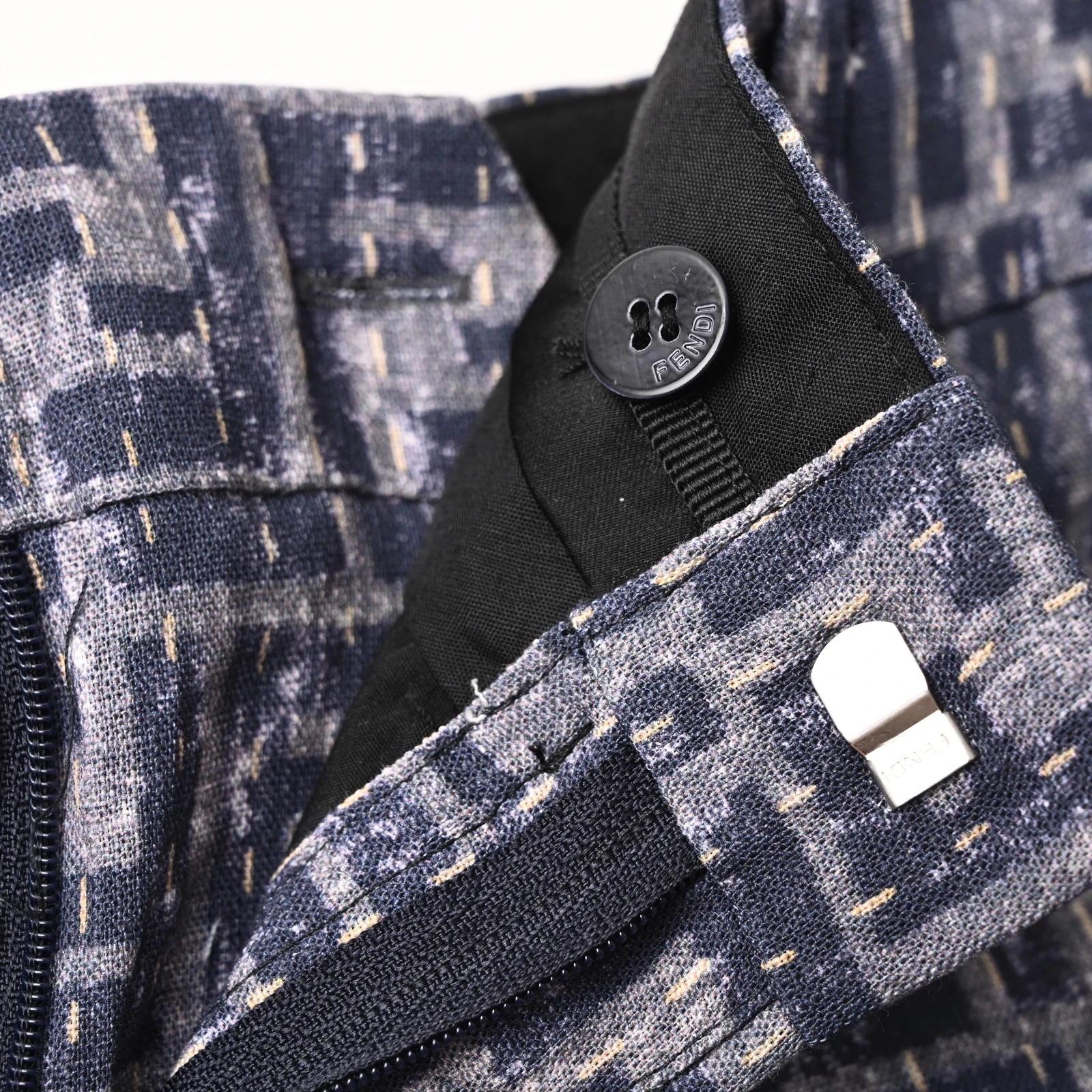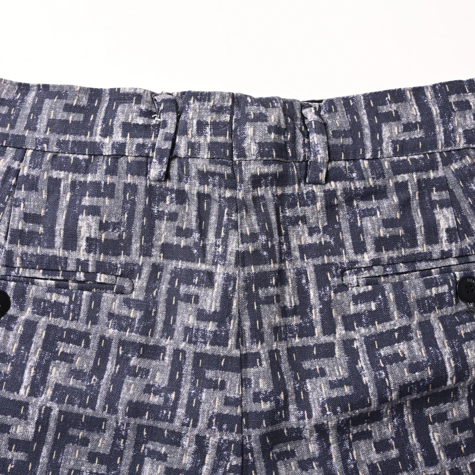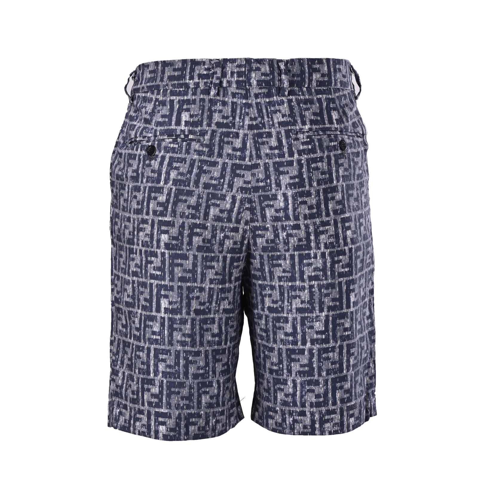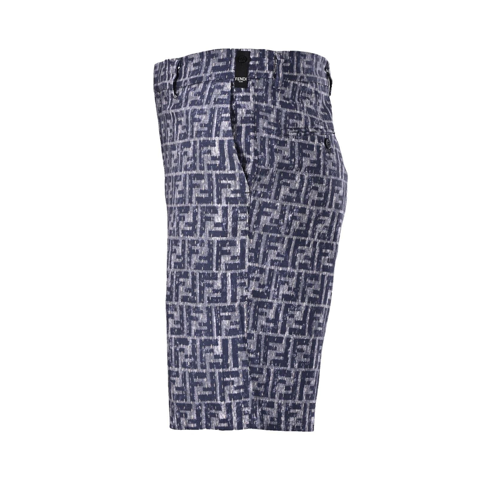 FENDI FD Grey FF Shorts Linen-blend bamboo 150g fabric, direct spray fabric, counter-cutting, customized 1:1 buttons, customized 1:1 weave blue, customized 1:1 logo, loose fit Size:48 50 52 54