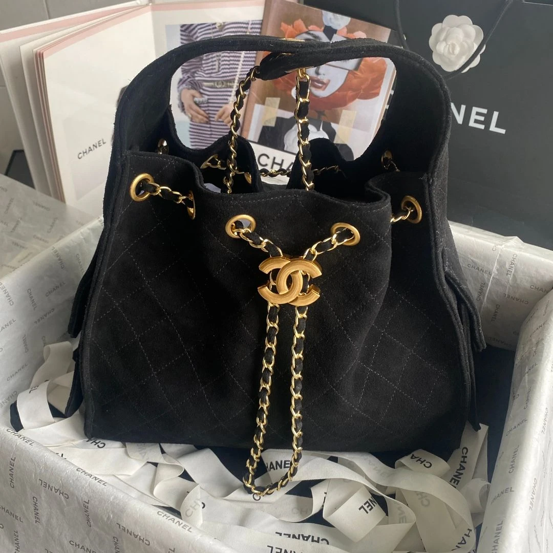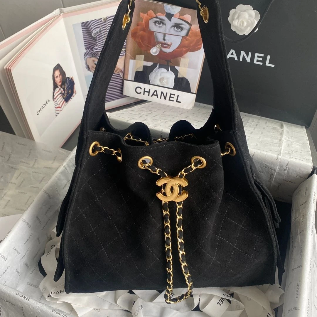 Chanel Drawstring Bucket Bag (Black)