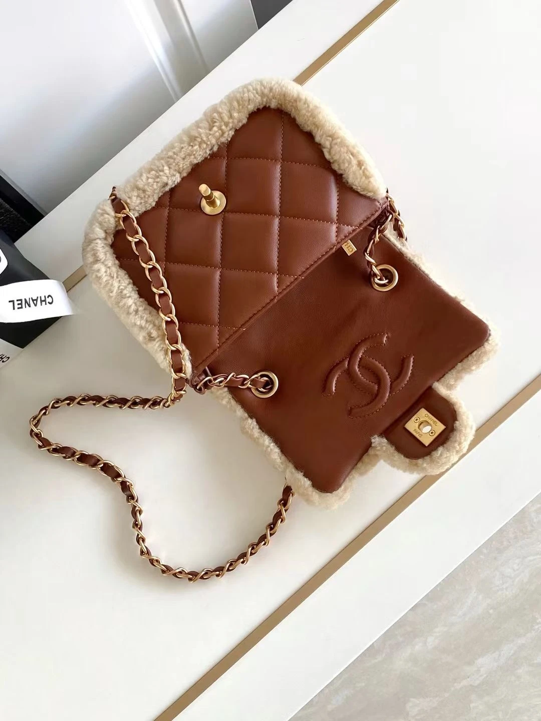 Chanel Shearling Flap Bag (Light Brown)