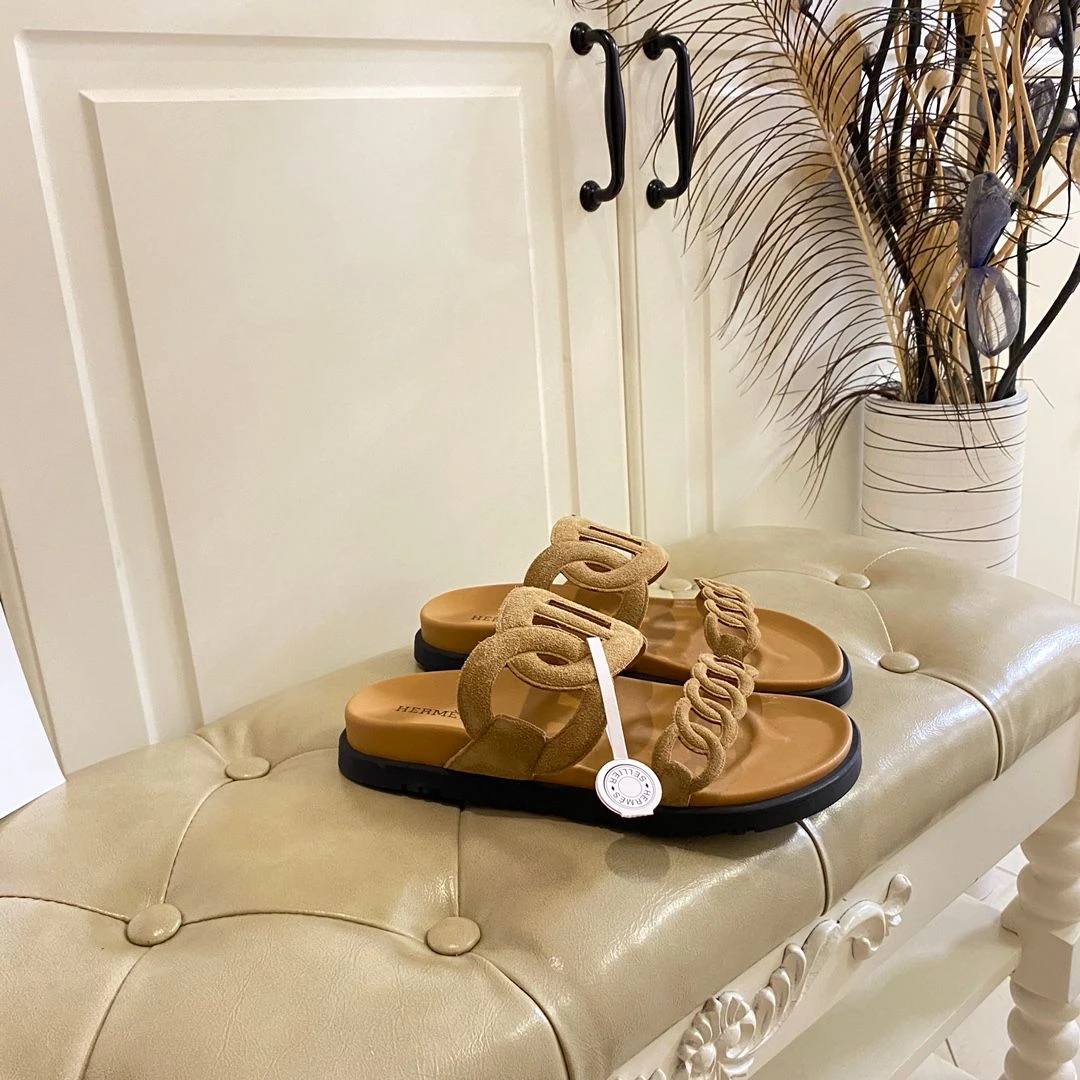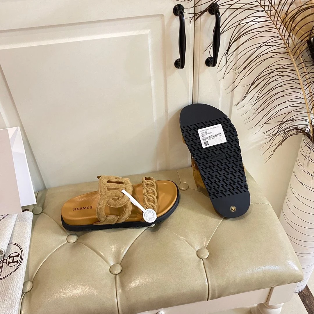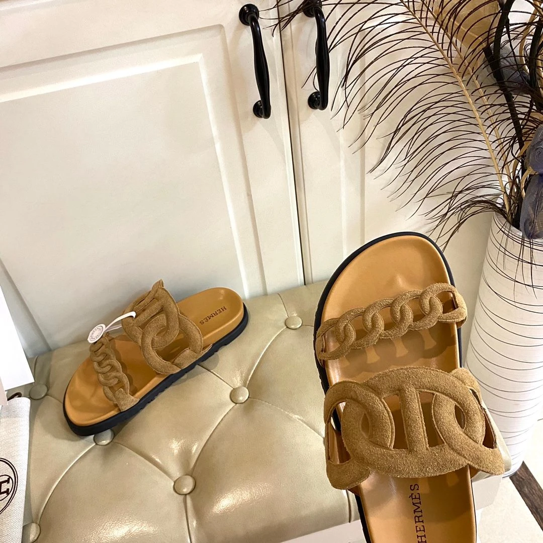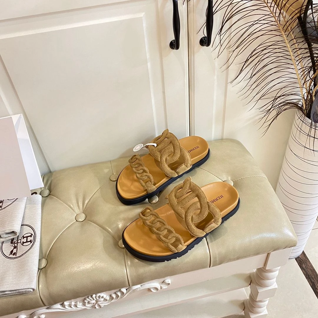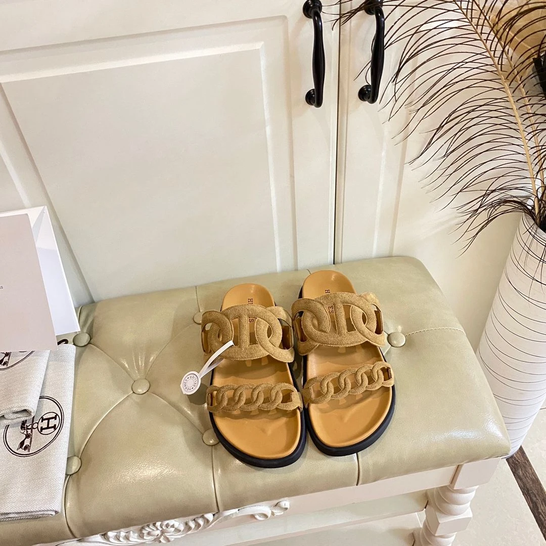 Hermes Hermès Chain Reaction Sandals (Suede Mustard)