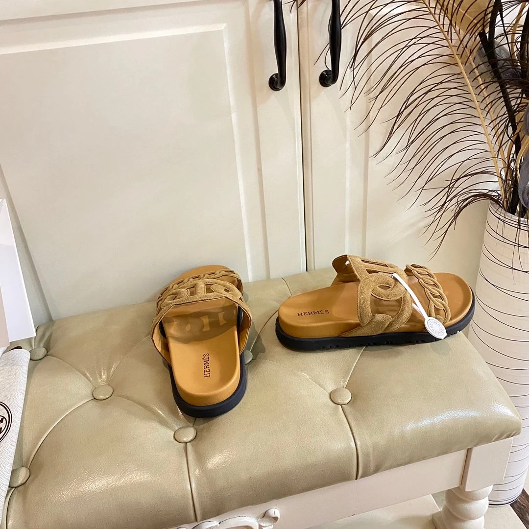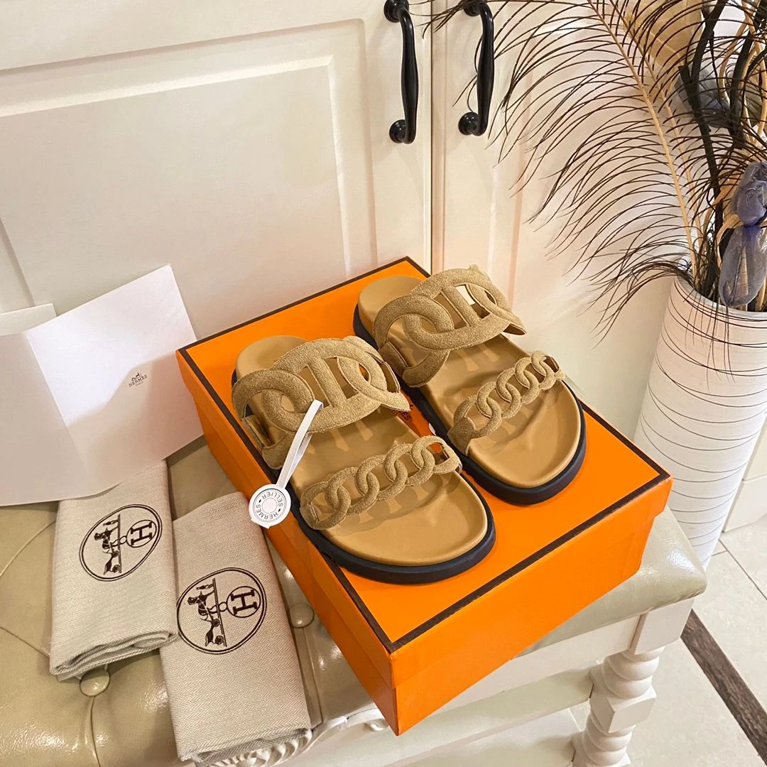 Hermès Chain Reaction Sandals (Suede Mustard)