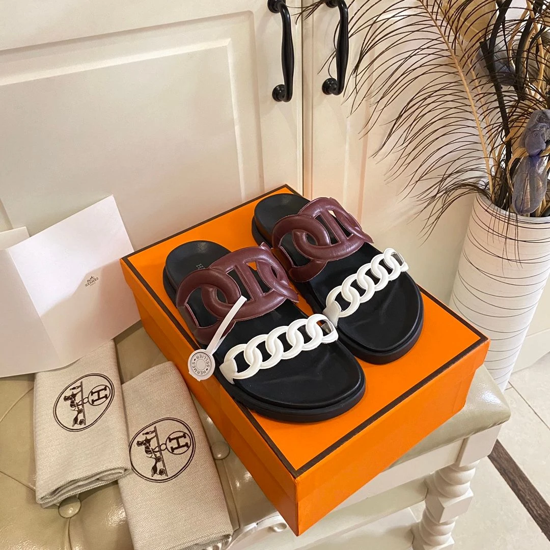 Hermès Sandalias Extra (Brown White)