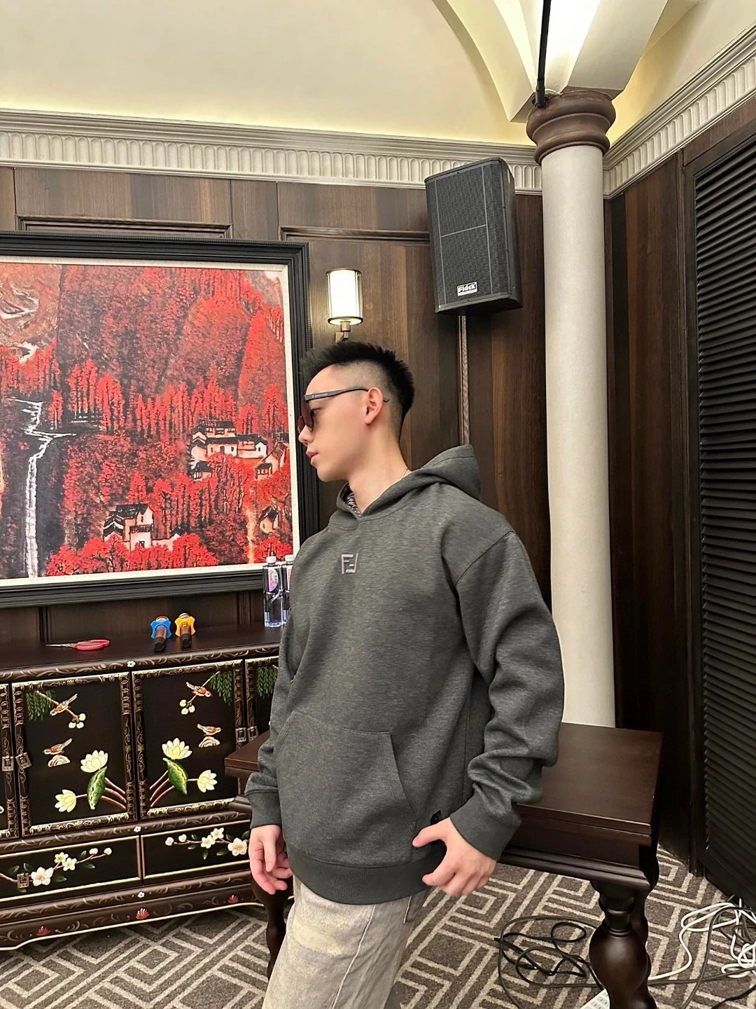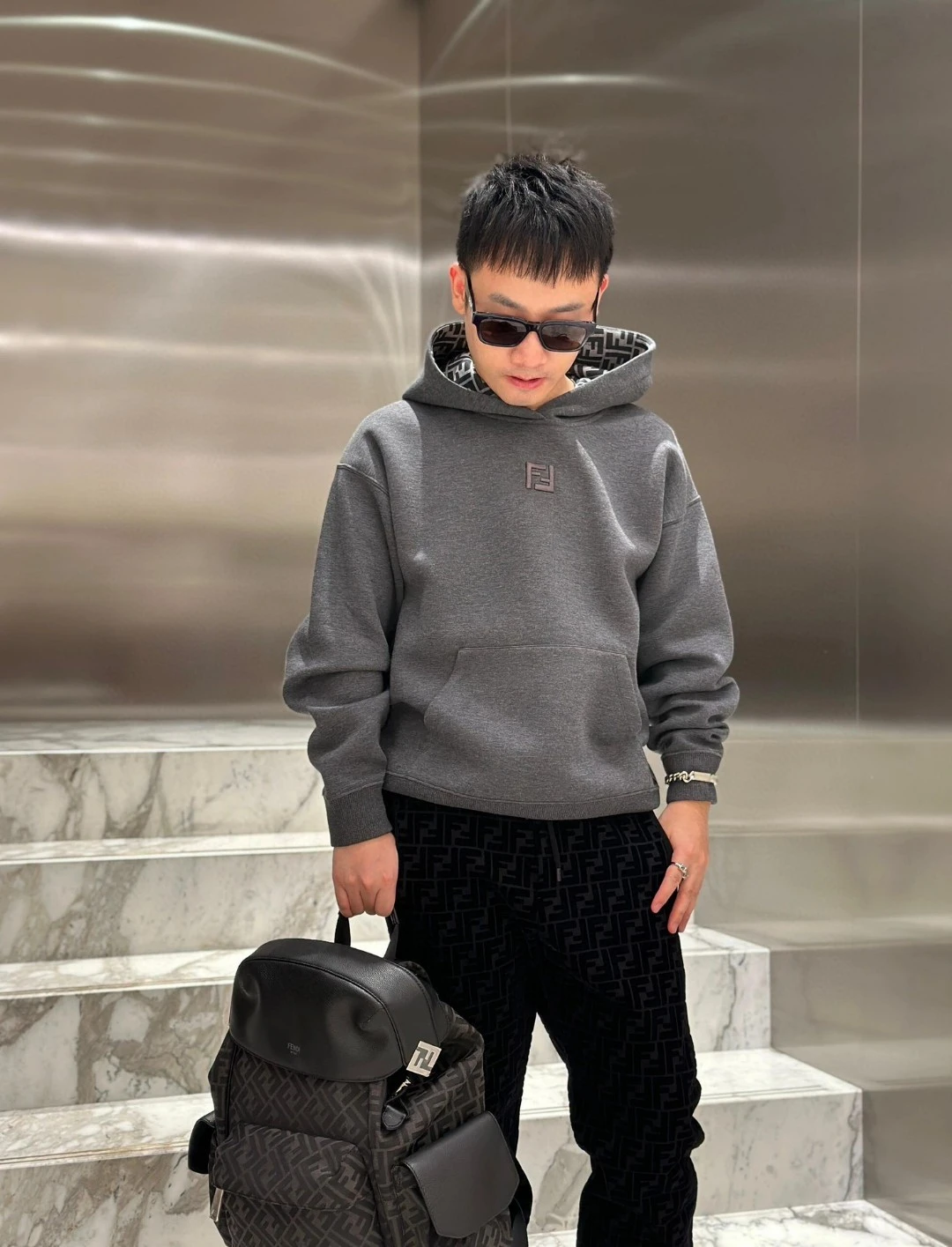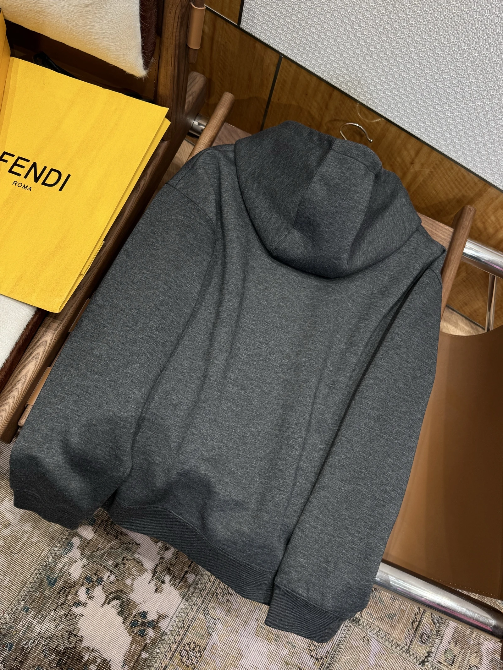 FENDI Fendi FF embroidered hooded sweatshirt ———————— Customized double-layer luxury soft air cotton, soft to the touch, comfortable to the skin, the body is laid out in dark gray, just the right amount of calm, the chest is decorated with the signature three-dimensional embroidery embellishment, th