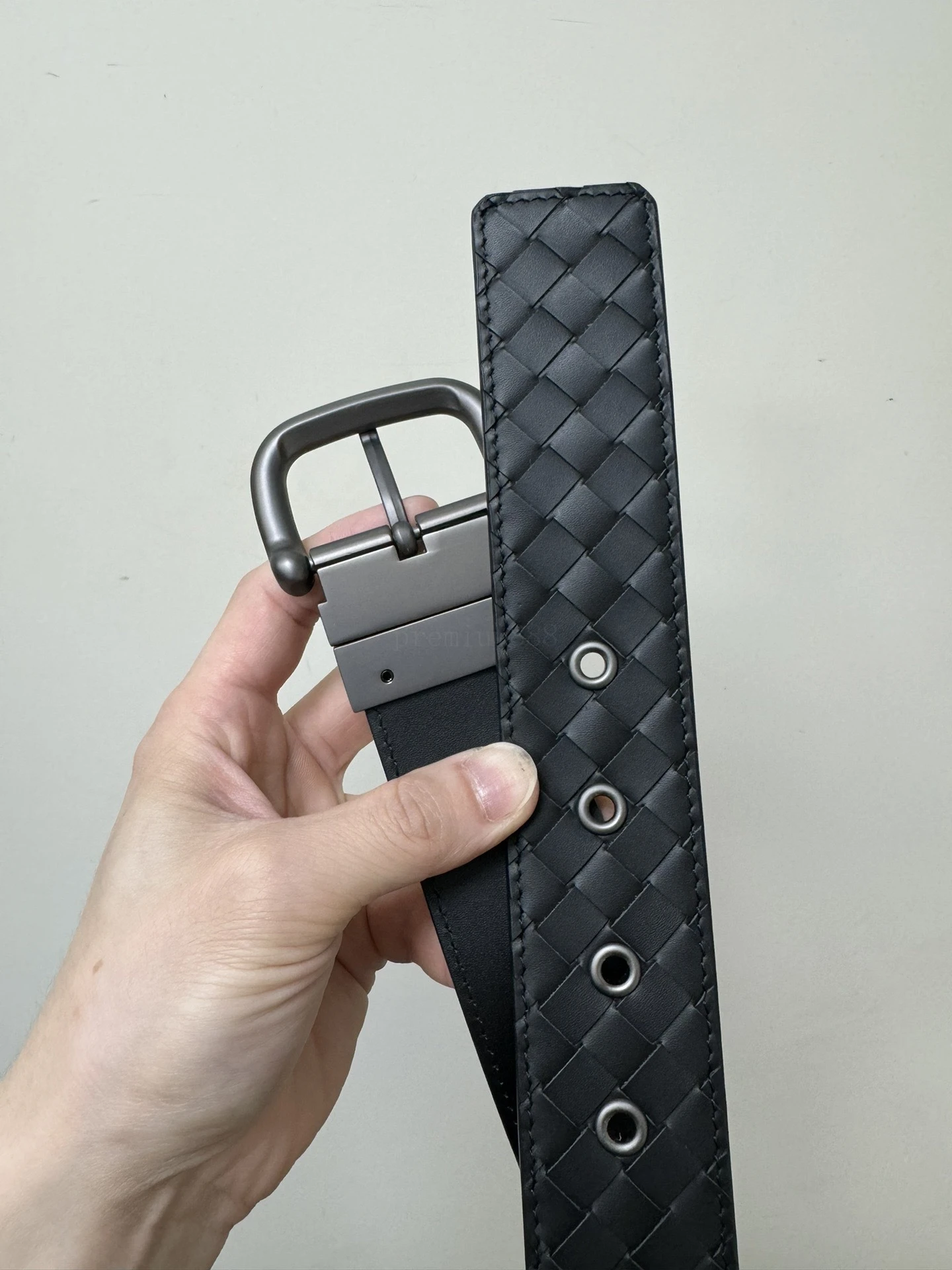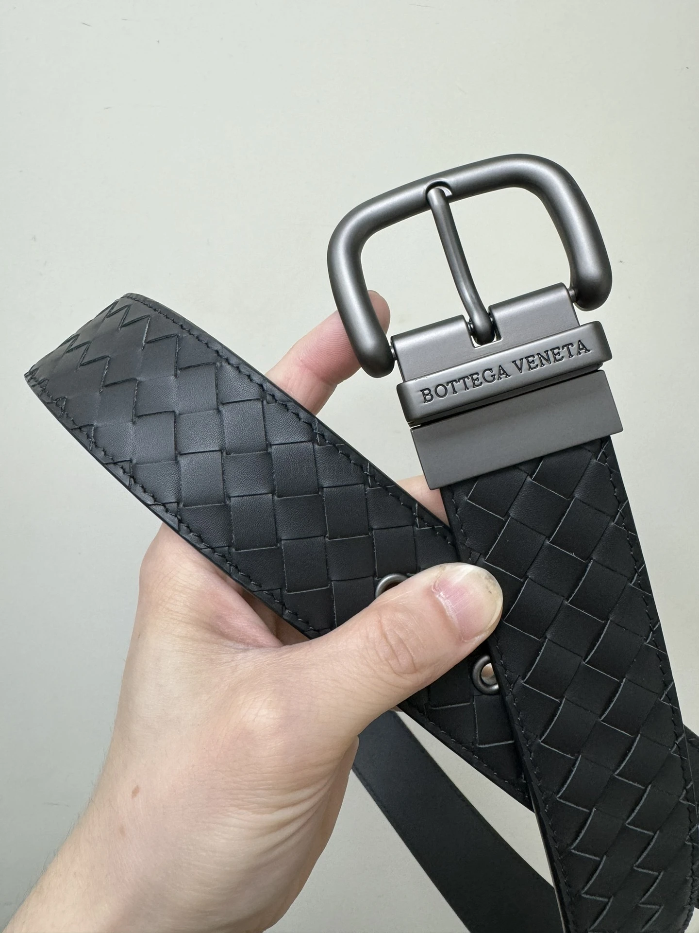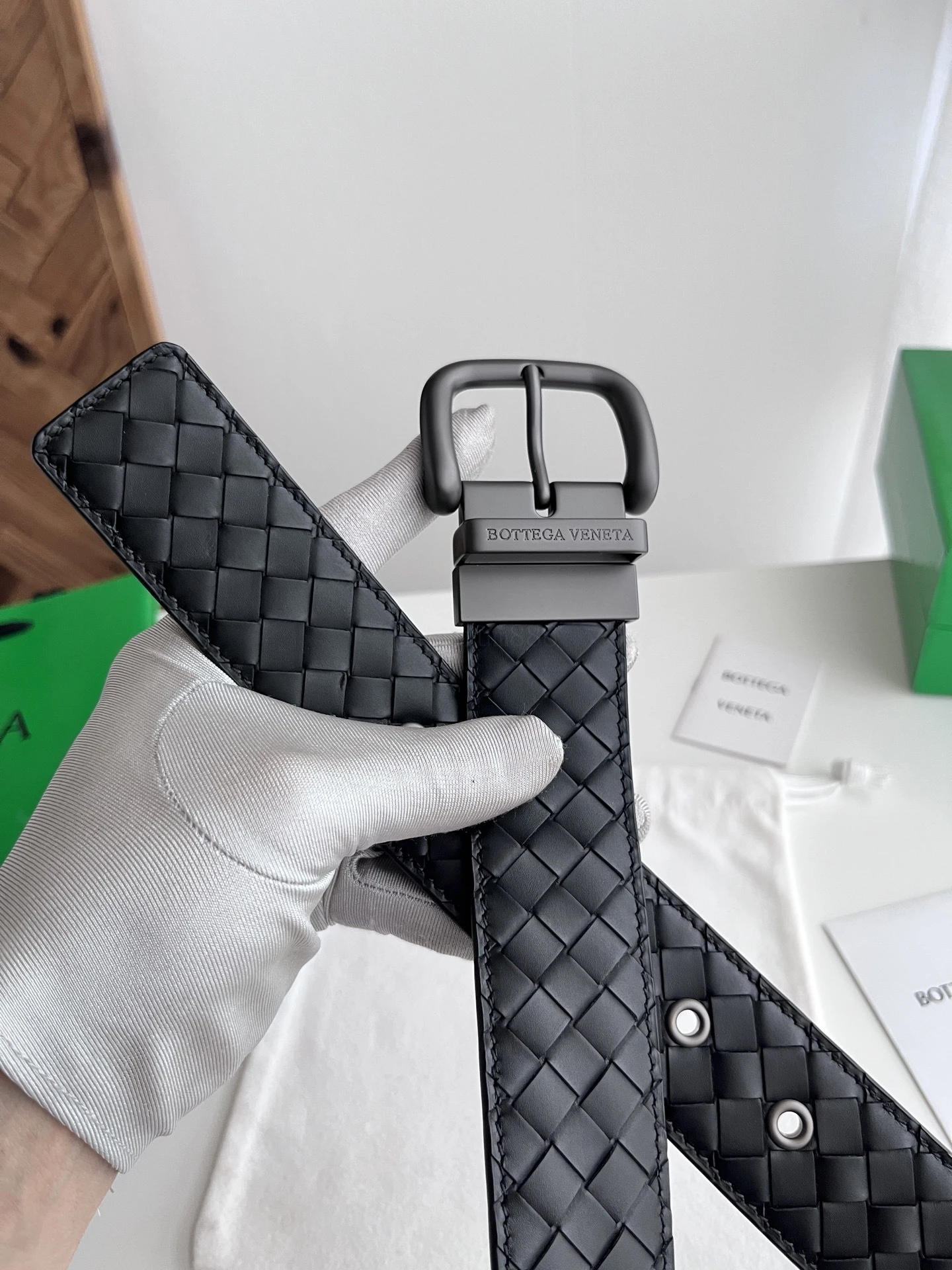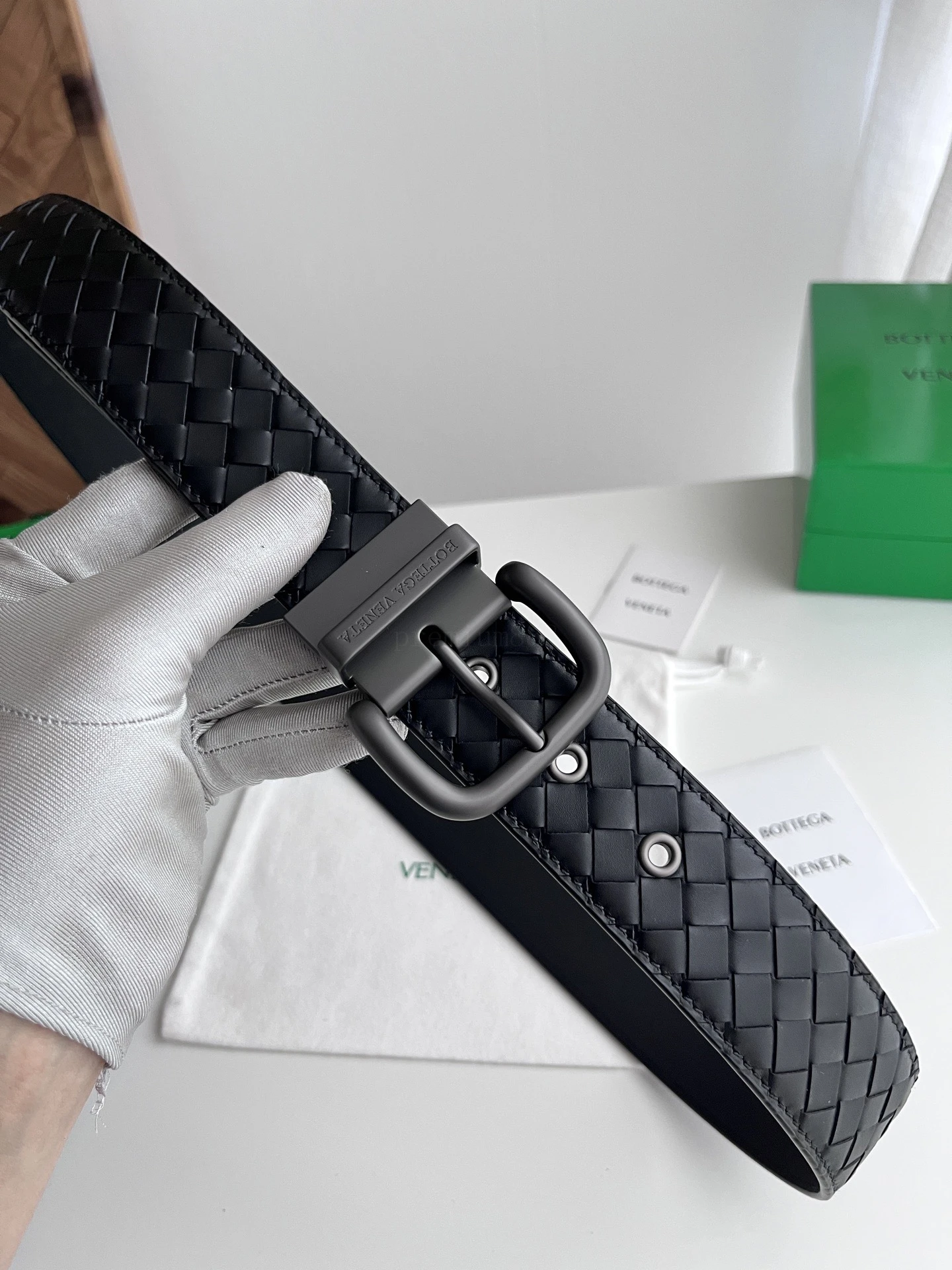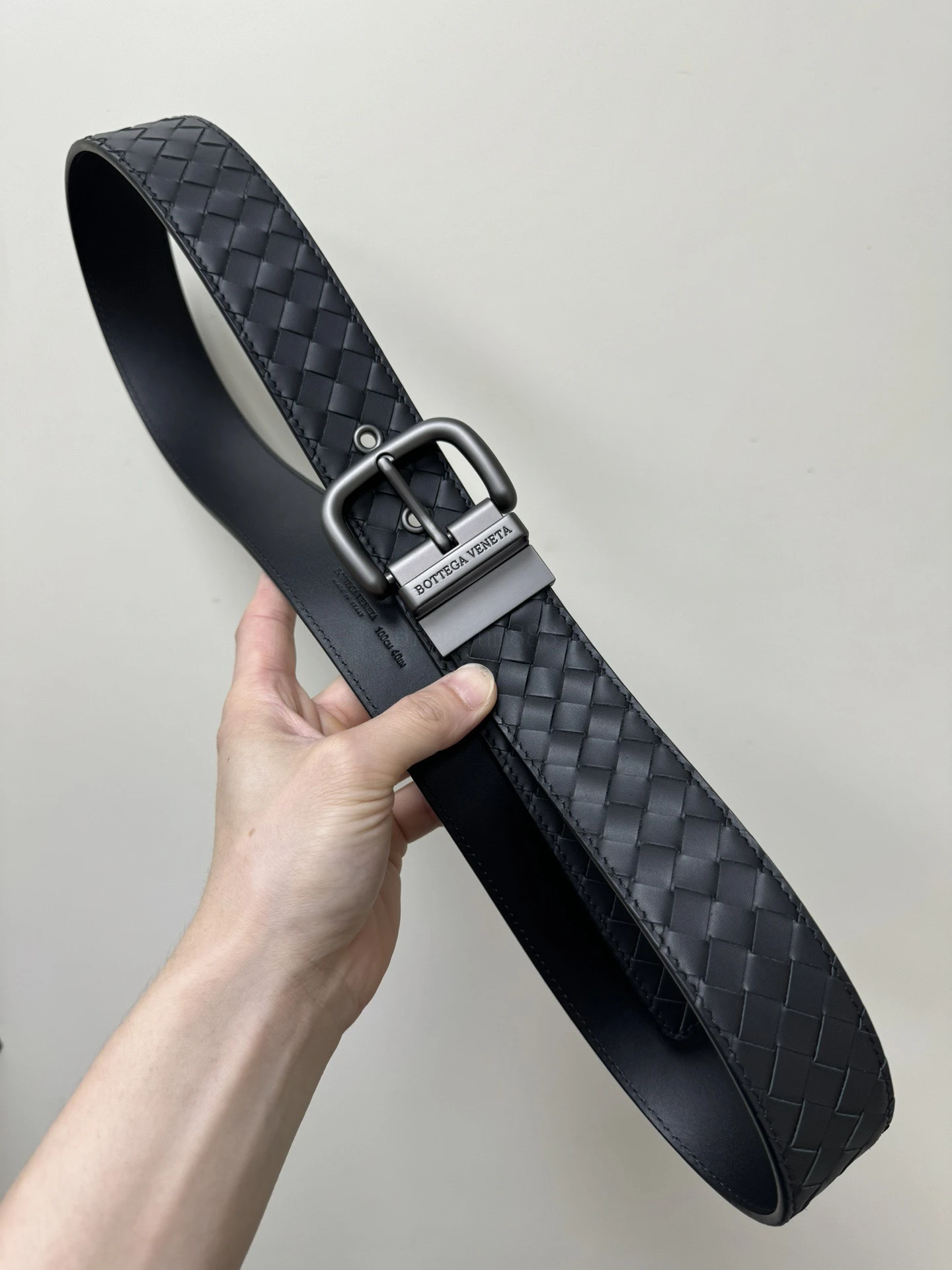 BOTTEGA VENETA 3.8cm Color: Black New double-sided men's belt Pure handmade small checkered intreccio woven Italian pure hand-woven imported calfskin Every detail reflects the supreme taste and style The overall design adds an elegant charm A paragon of understated luxury Elegant and charming aura E
