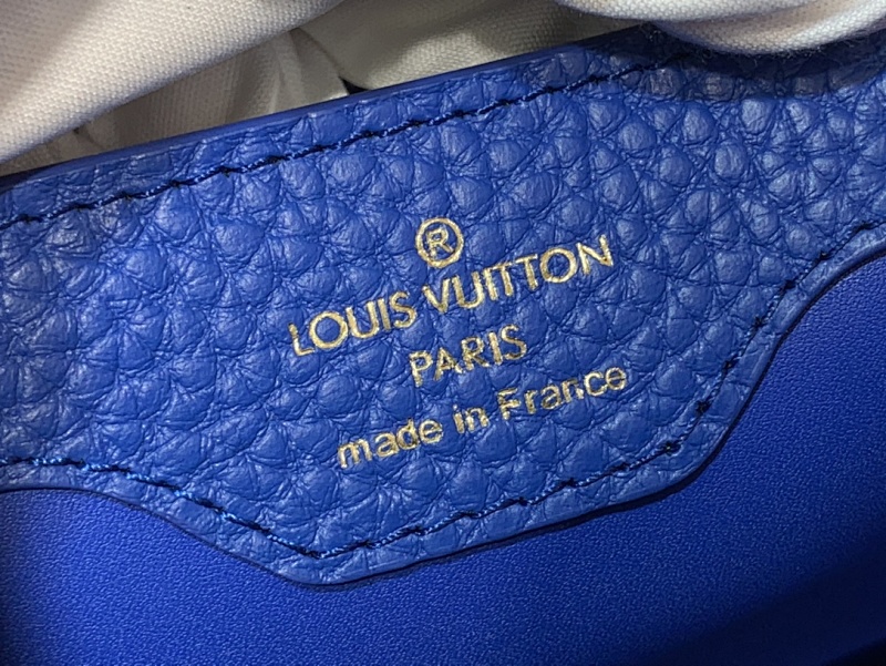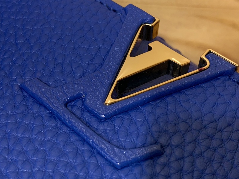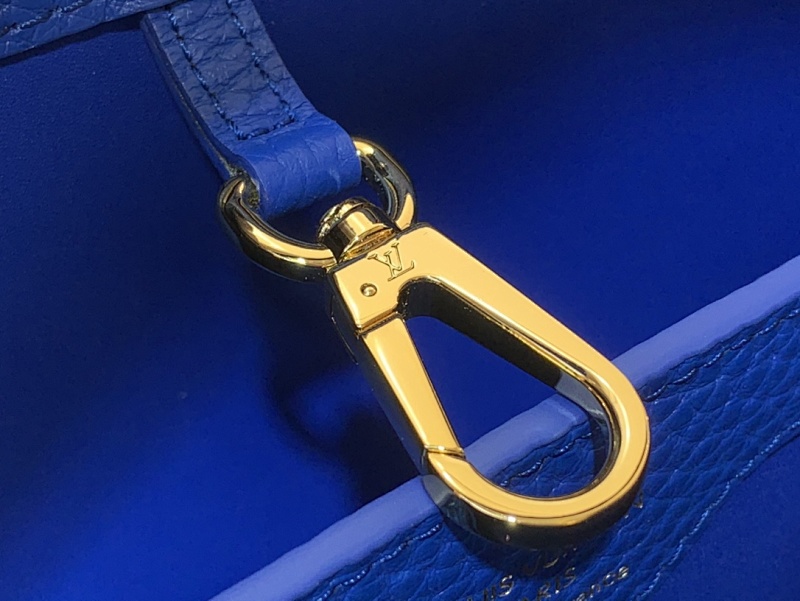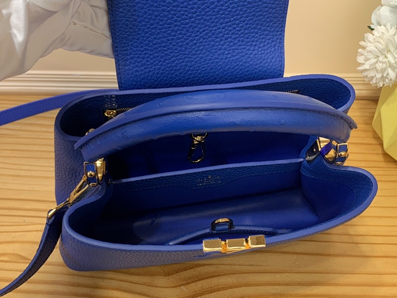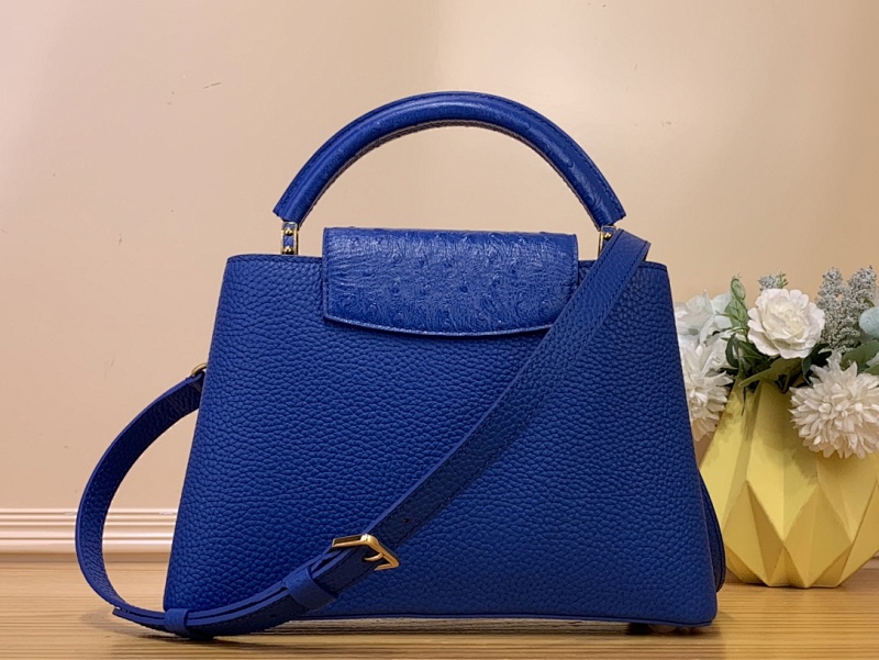 【Capucines 小号手袋 】M94227 48865 蓝色 牛皮拼鸵鸟纹 · blue