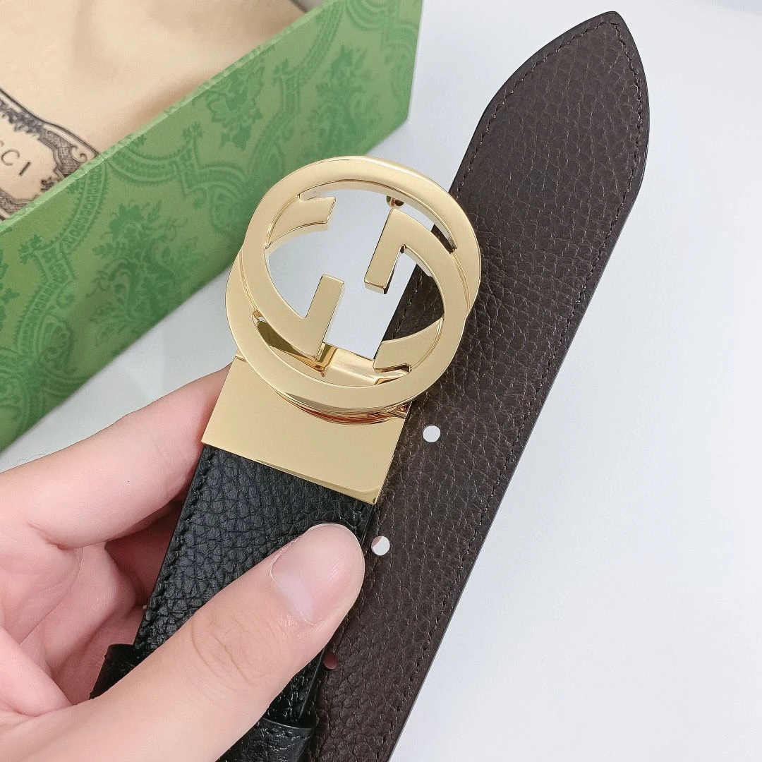 Gucci Belt - Темно-коричневый ремень с золотистой пряжкой GG