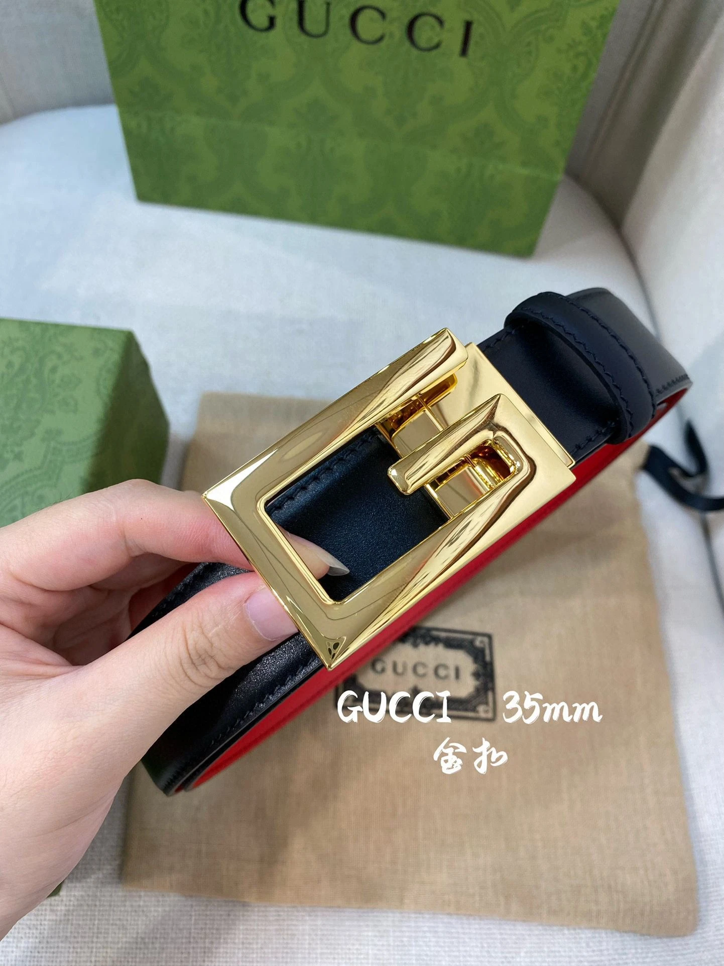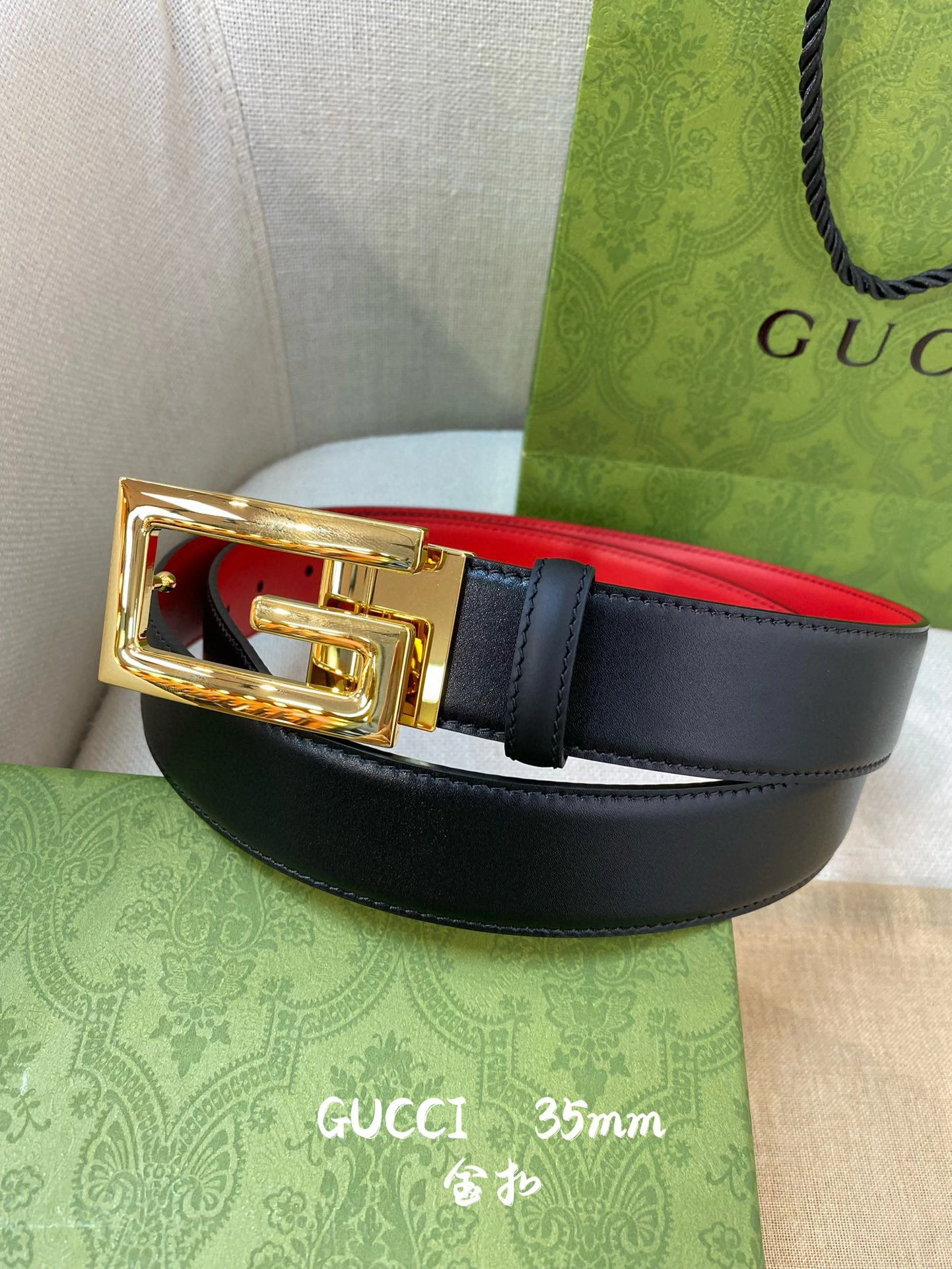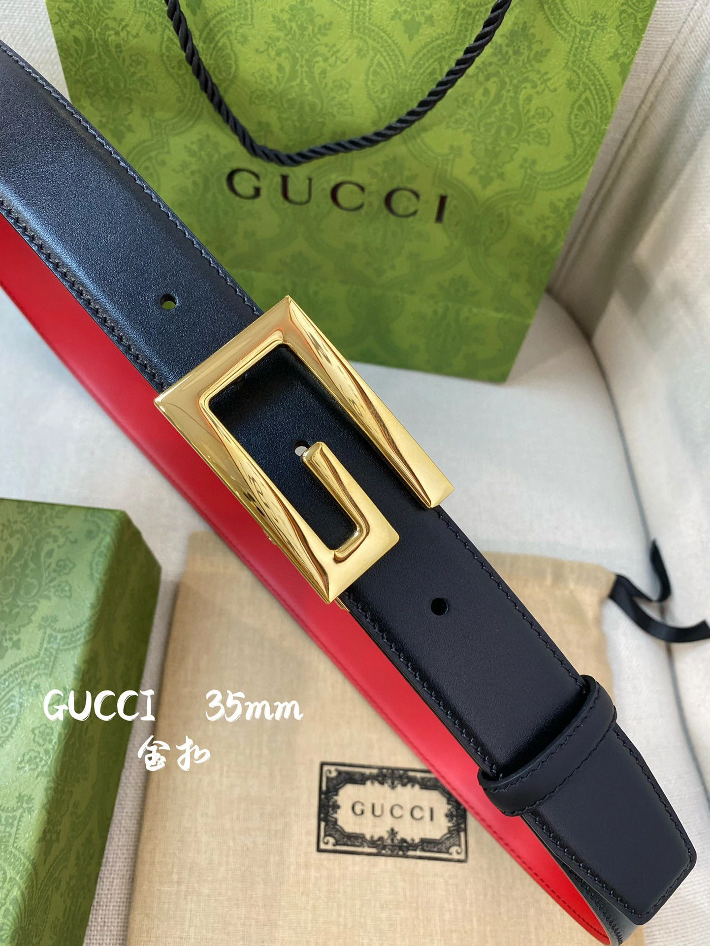 Gucci Square G Buckle Leather Belt with Gold Finish
