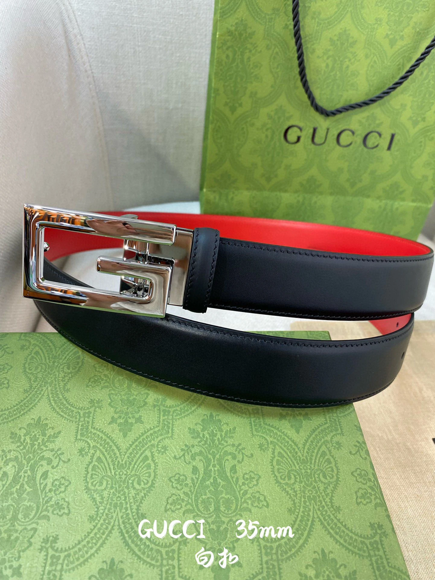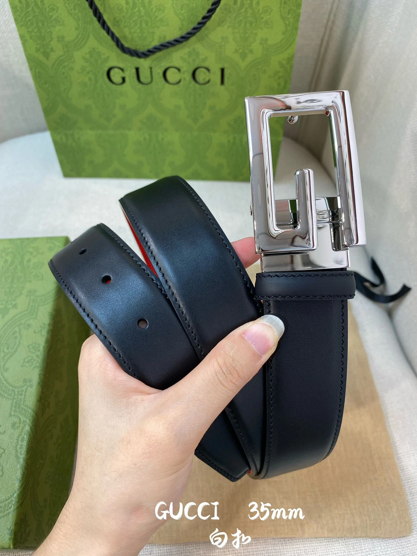 Gucci Square G Buckle Leather Belt with Silver Finish