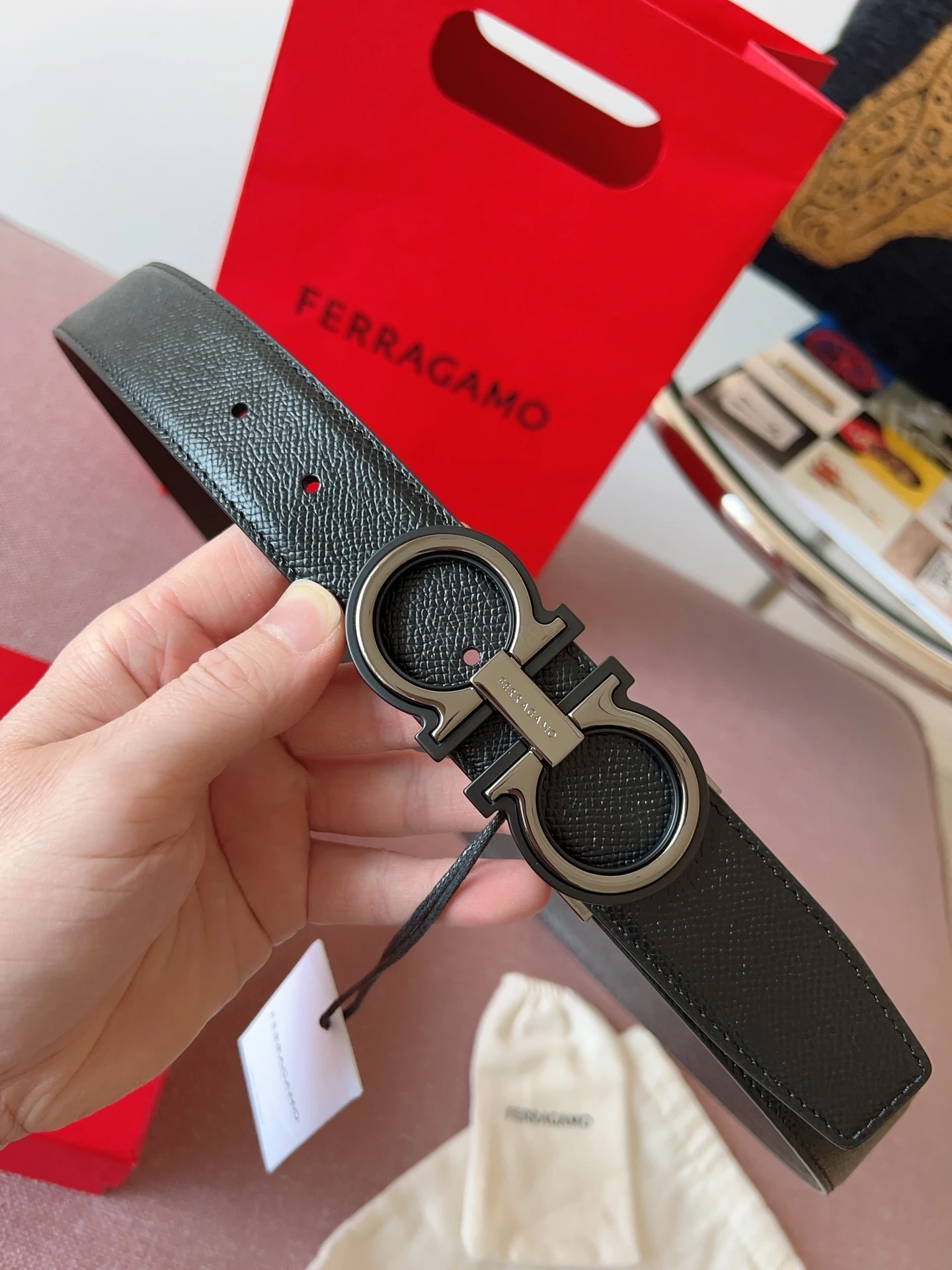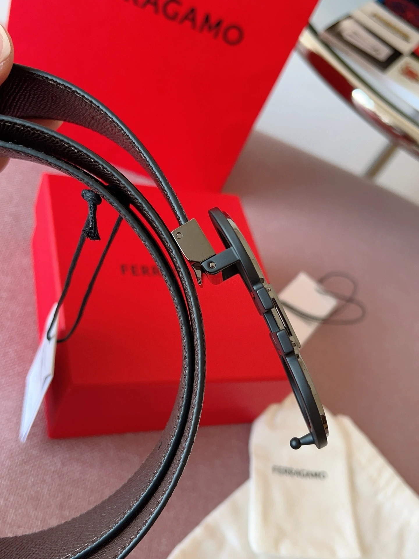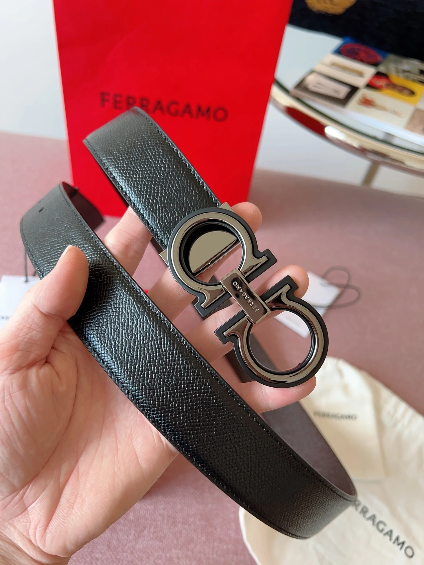Ferragamo 3.5cm Original Leather. Precise brass hardware upgrade version, genuine factory IP electroplating! Original design matching.