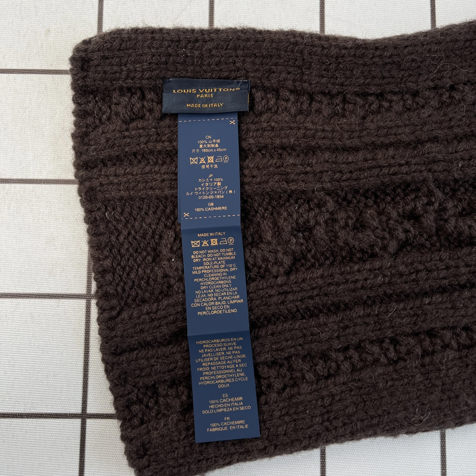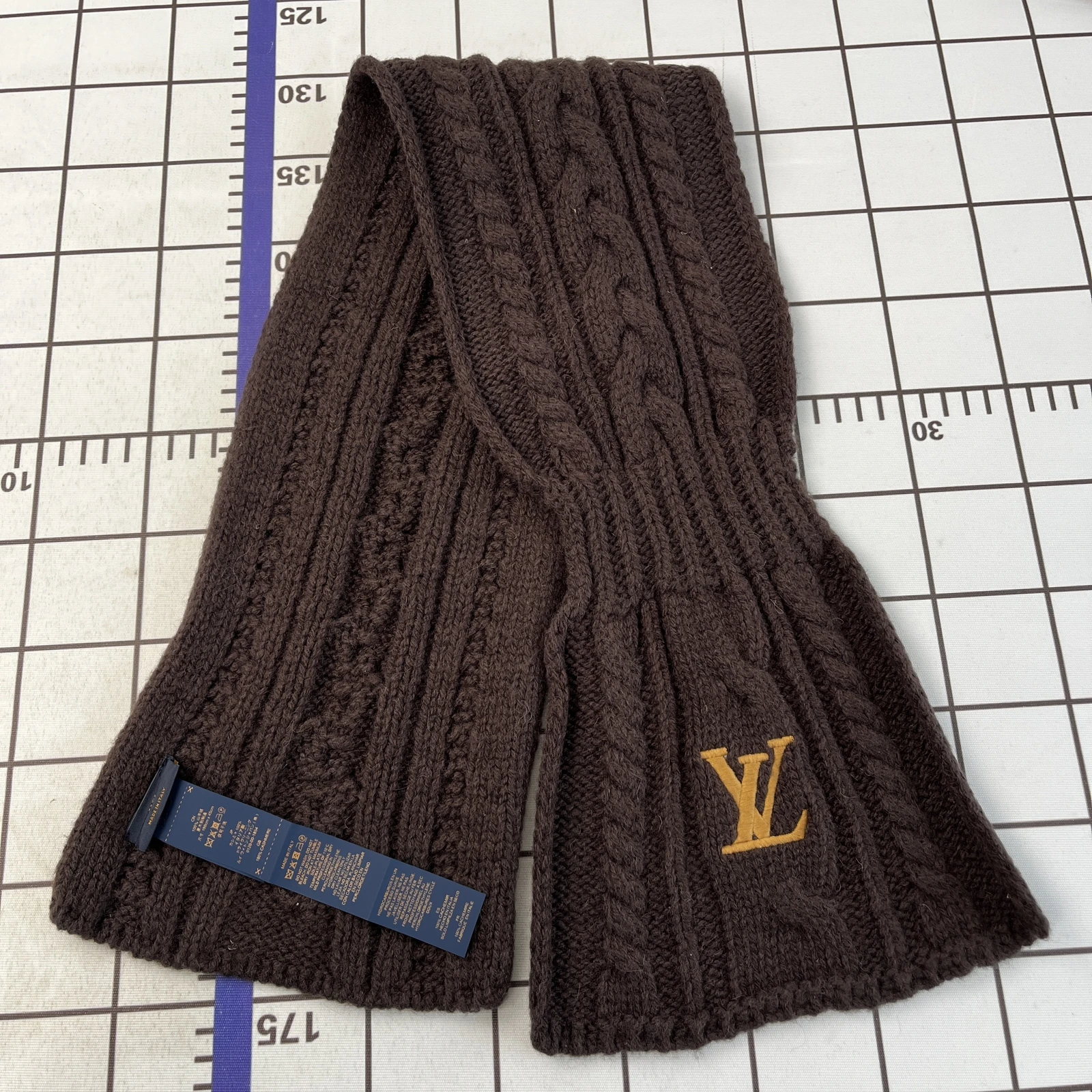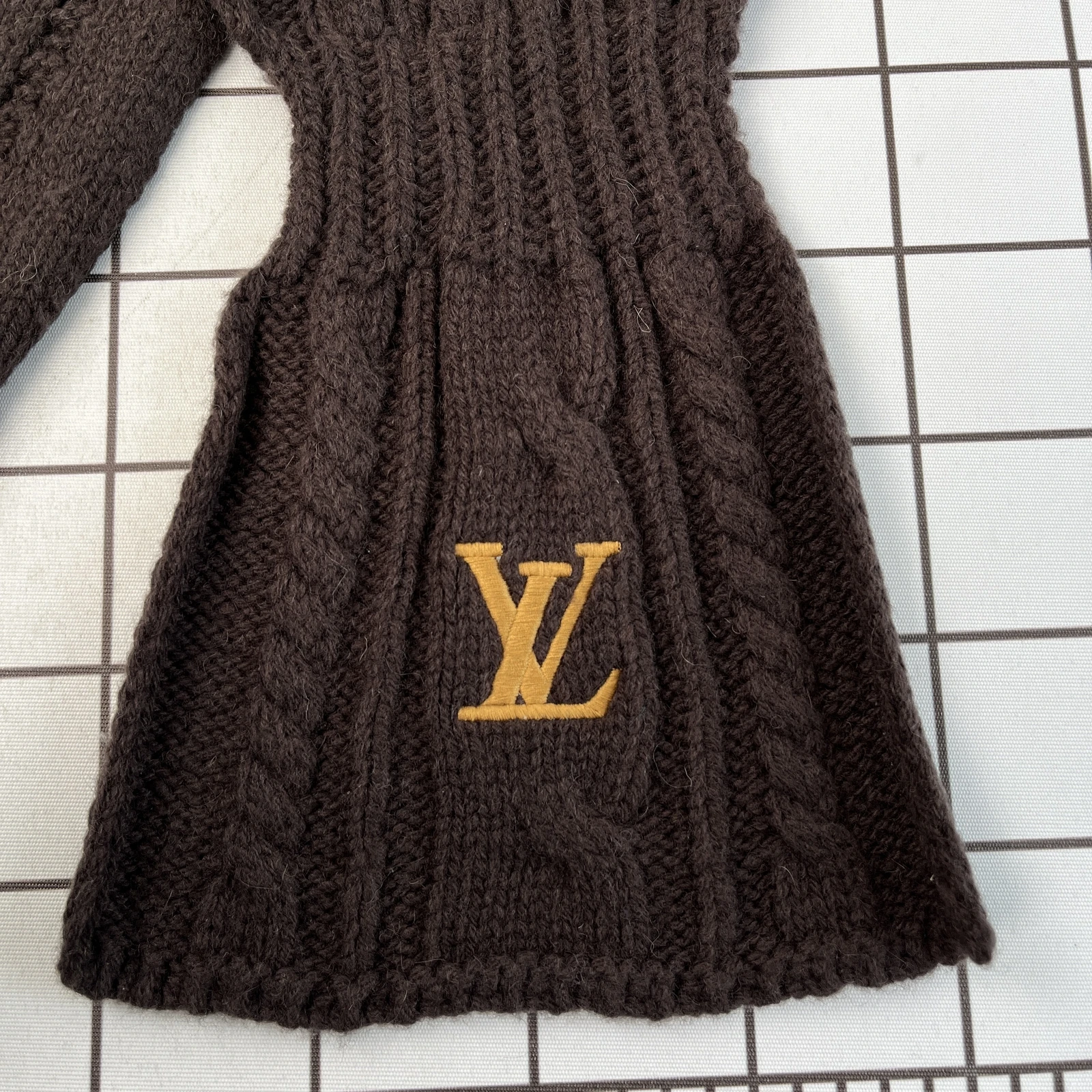 lv all-wool knitted scarf Selected materials and craftsmanship: The scarf is made of all-wool material and has undergone mercerization and scaling treatment, making the wool softer and smoother, with an excellent skin-friendly feel, effectively reducing the possible itching sensation caused by ordi