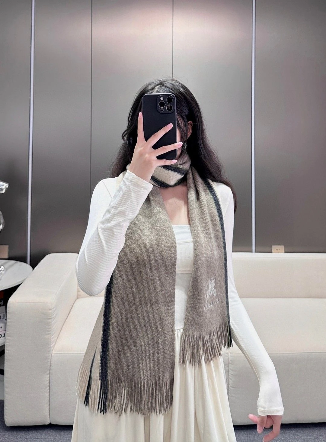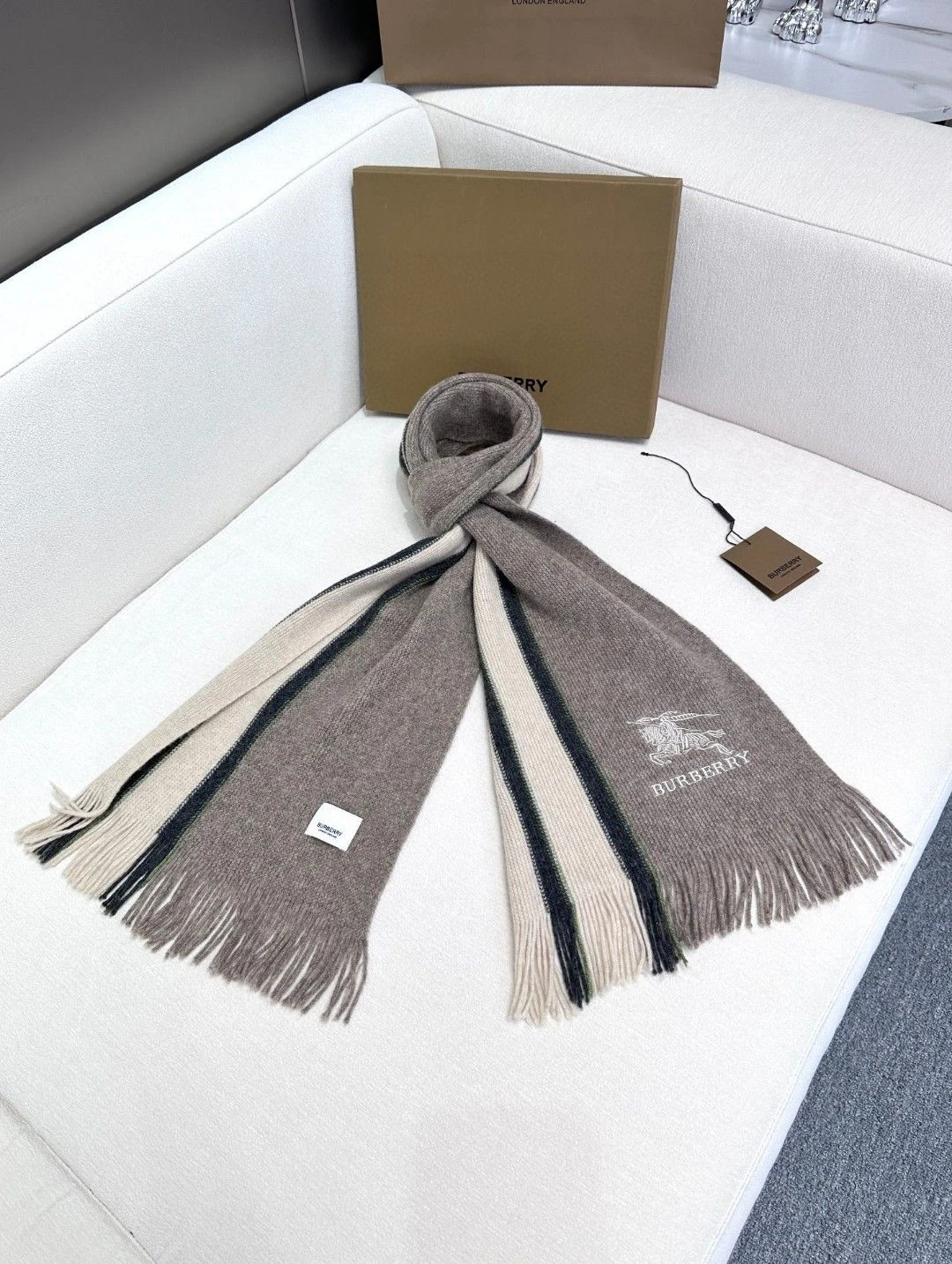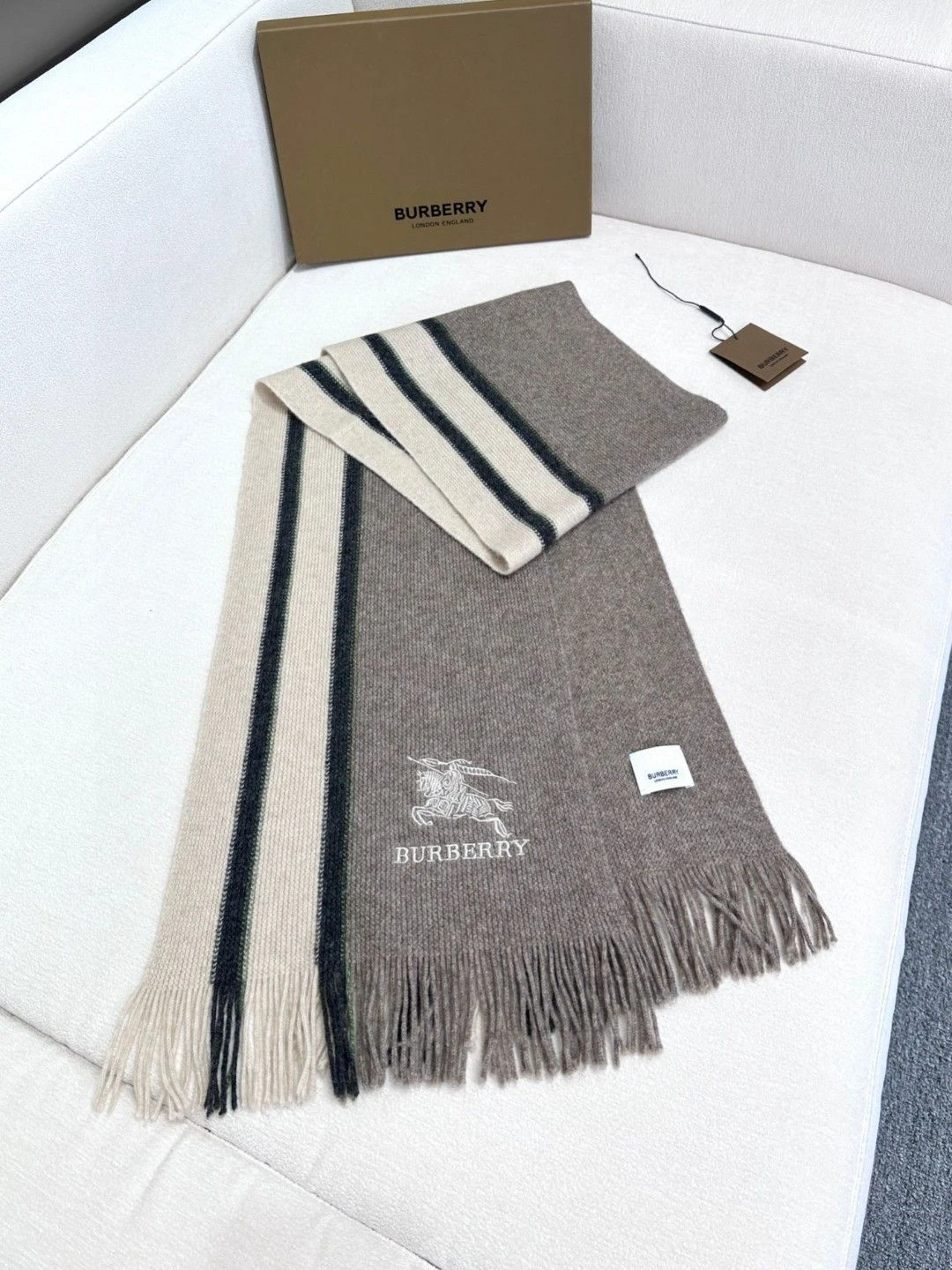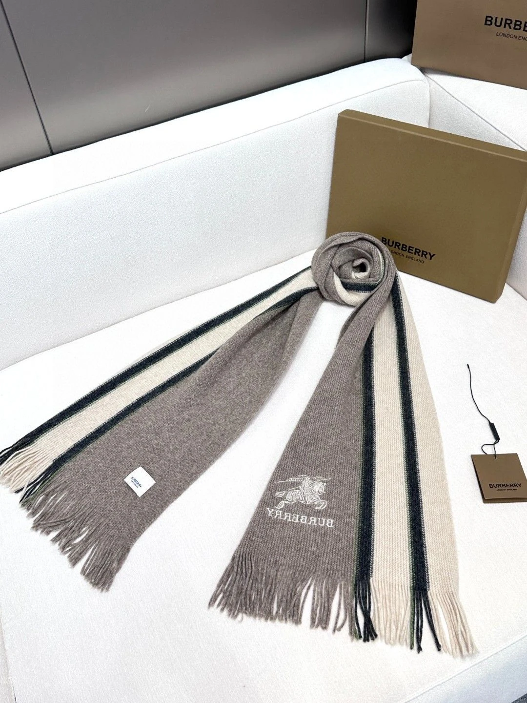 Burberry шарф с серо-бежевыми полосами