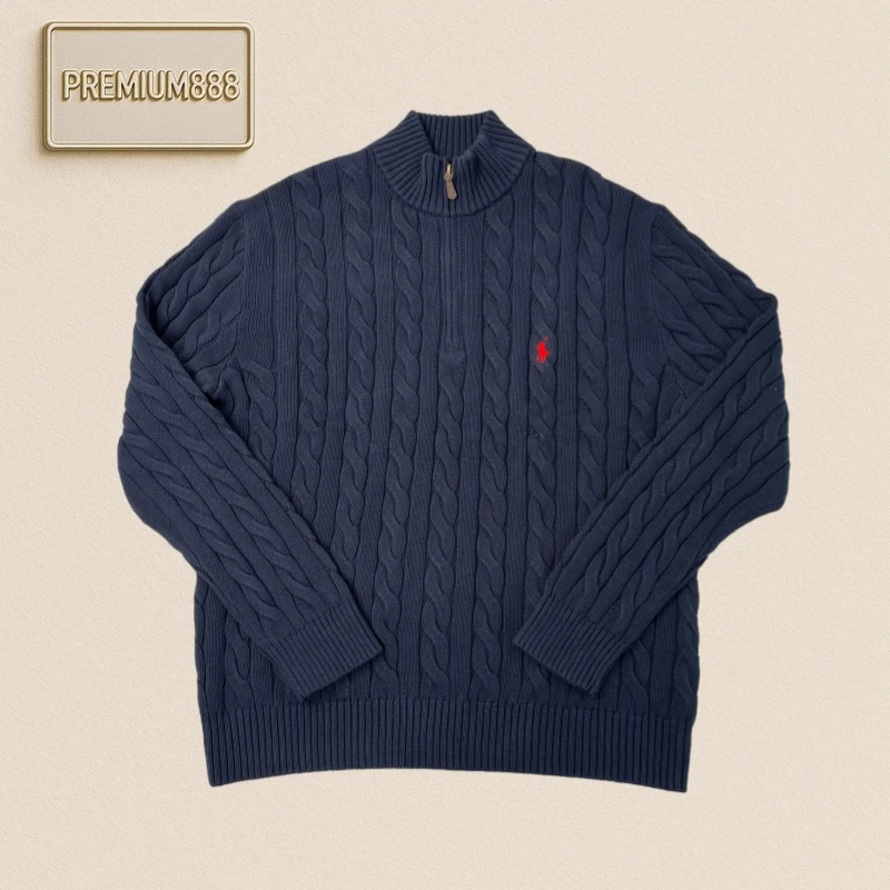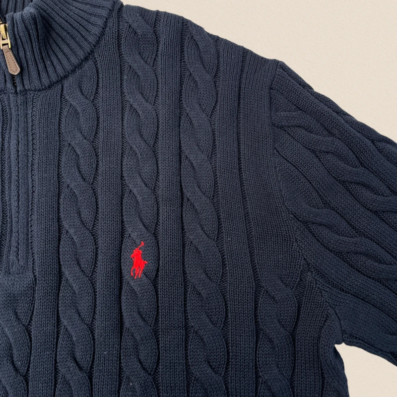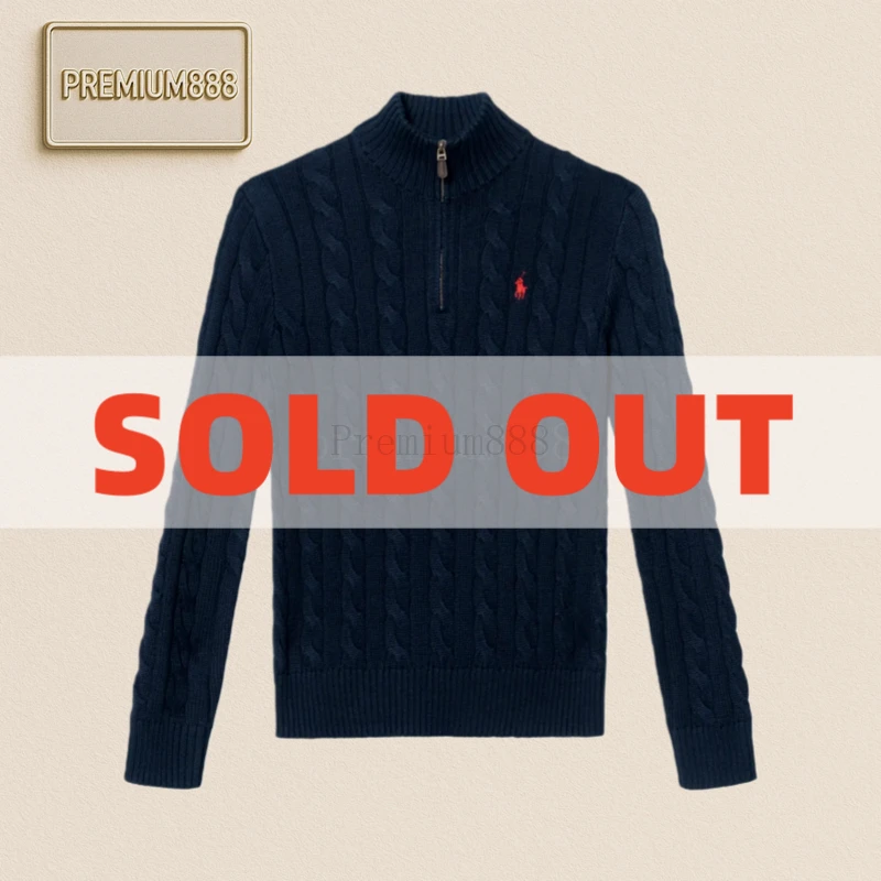 Ralph Lauren solid color casual embroidered half-zipper sweater