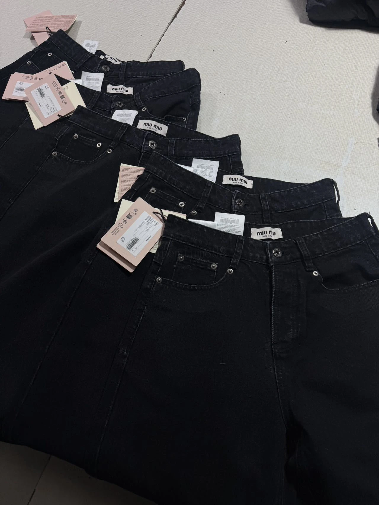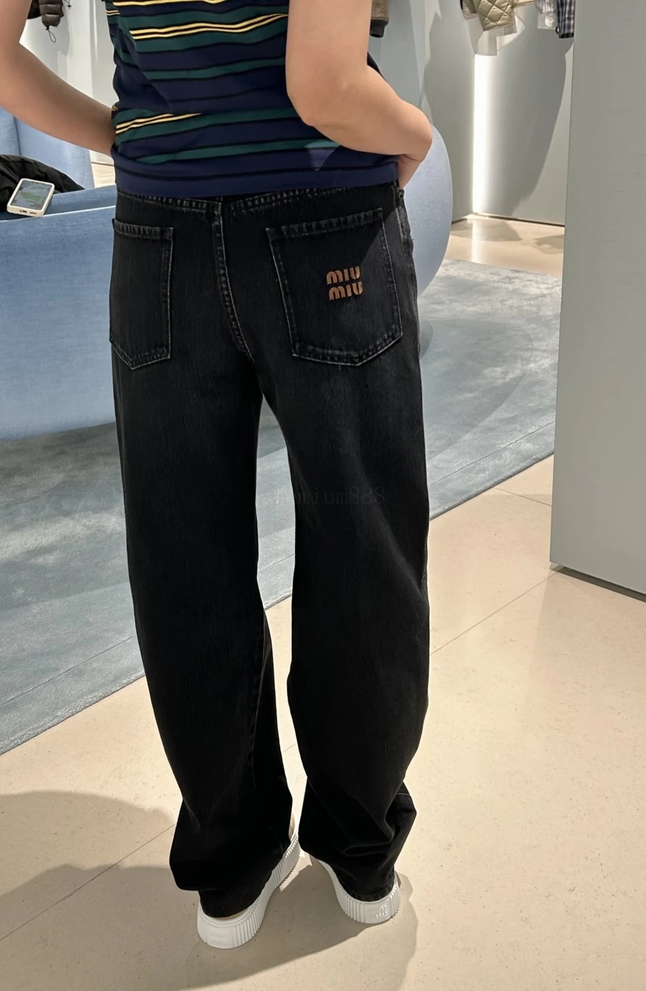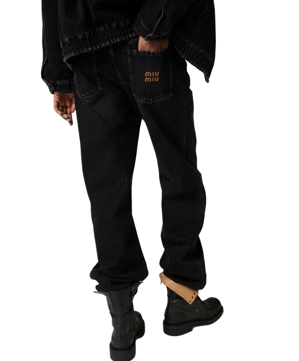 Miumiu stretch leather straight-leg jeans The fabric is made of 14-ounce twill denim imported from Turkey. The pants are not made according to the conventional denim production method. The side seams are all done in the style of straight pants with smooth edges. The inner seams are also bound. The e