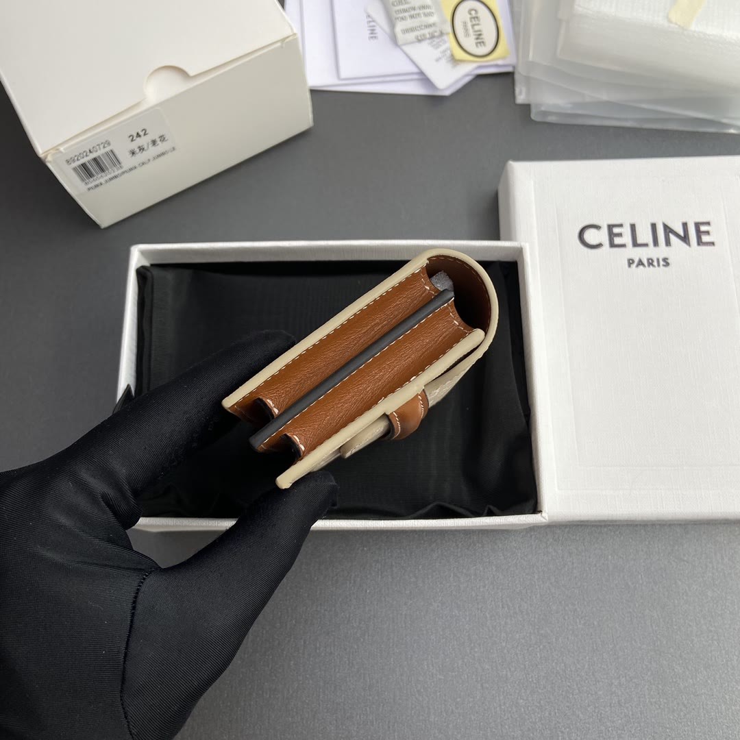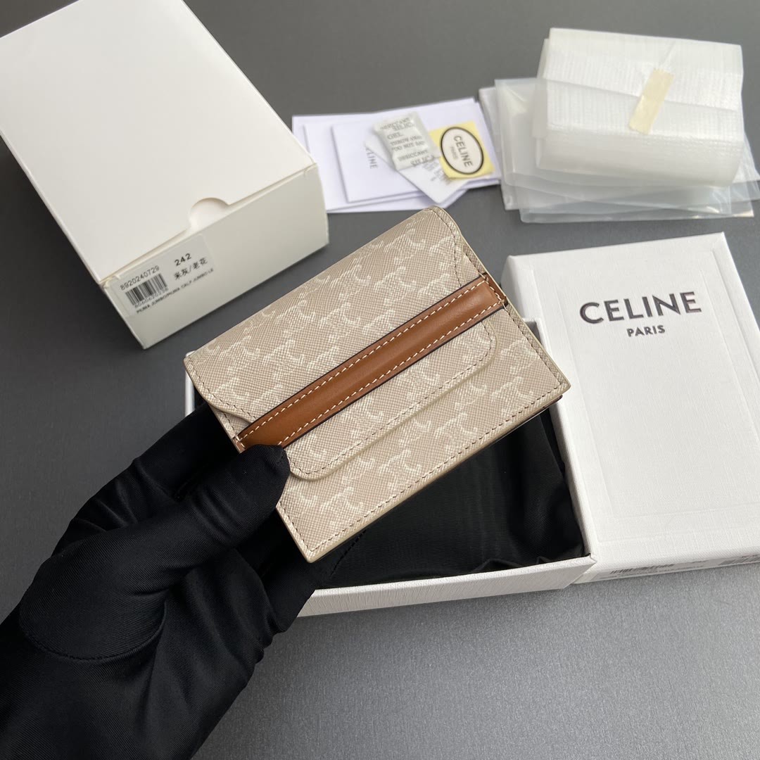 【特级进口原厂皮】TRIOMPHE标志印花卡包名片包/2024小赛 2个卡糟 2个角撑隔层 2个扁平口袋 1个纸币袋 编号:10E242BZ904.LU 242米灰/老花