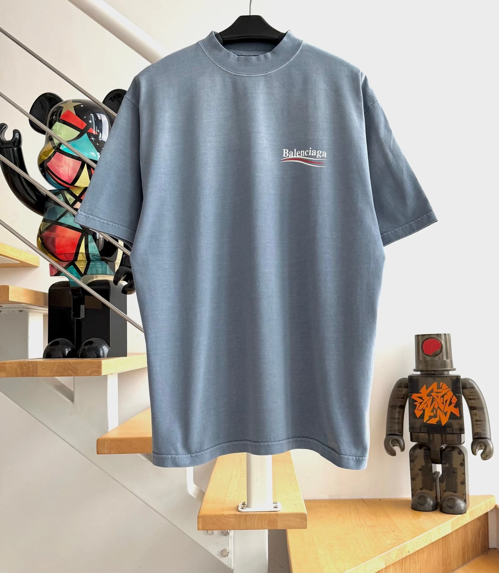 Balenciaga Logo T-shirt Grey-Blue