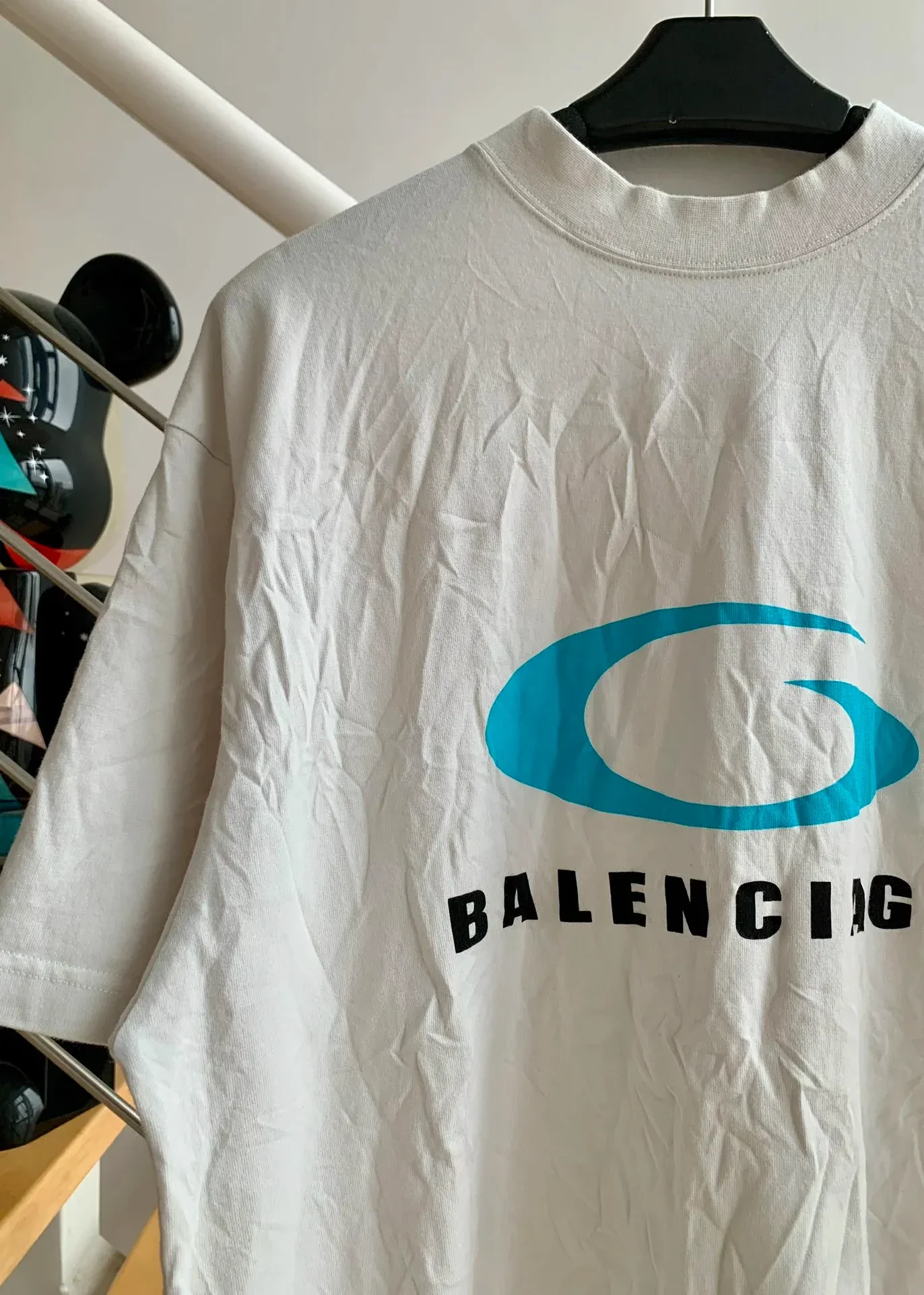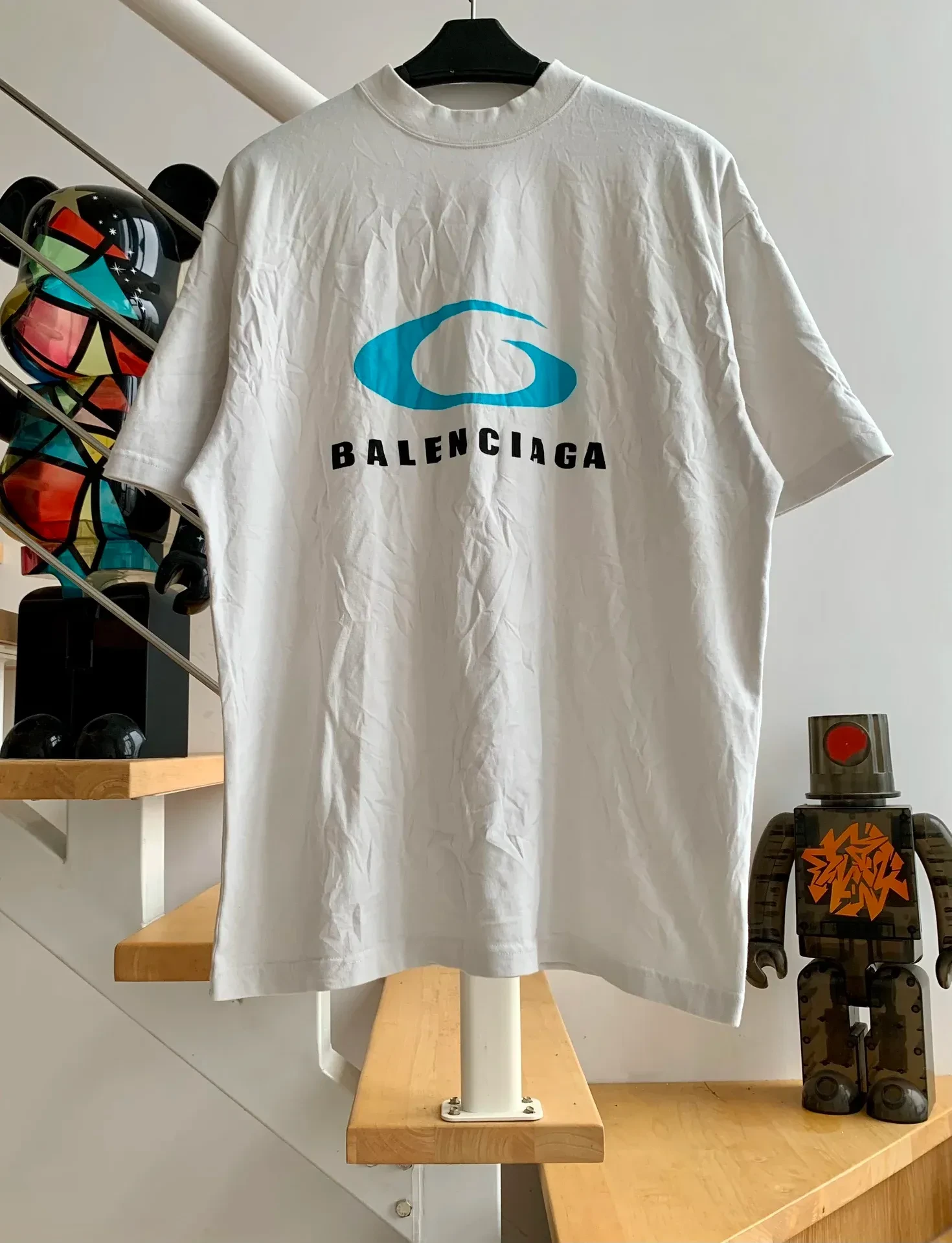 Balenciaga Blue Logo T-shirt White