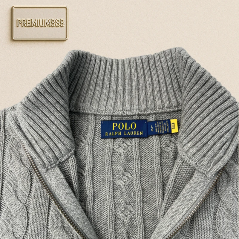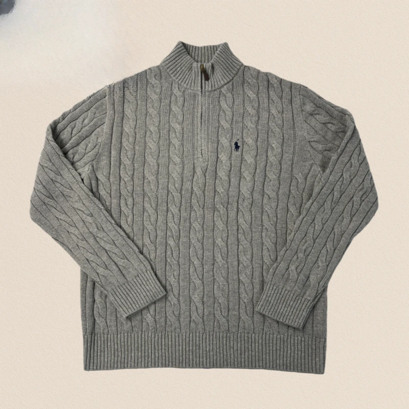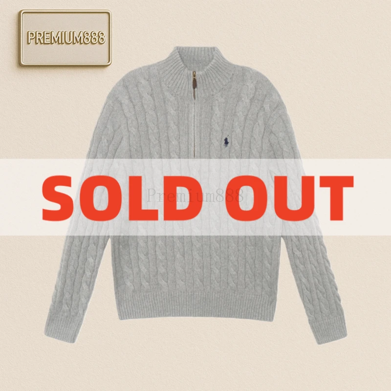 Ralph Lauren solid color casual embroidered half-zipper sweater