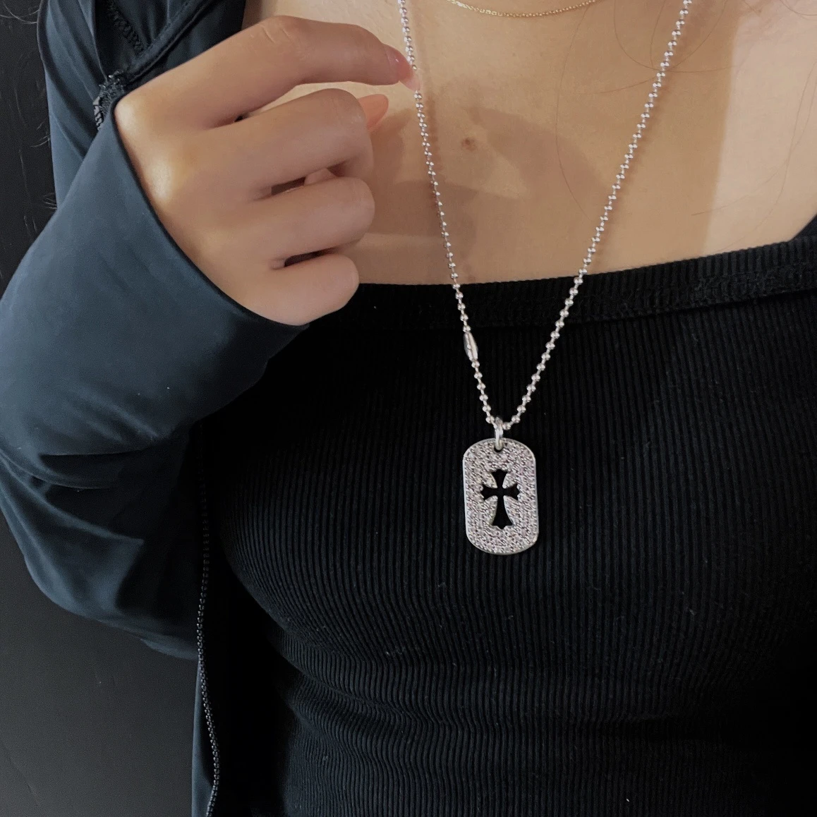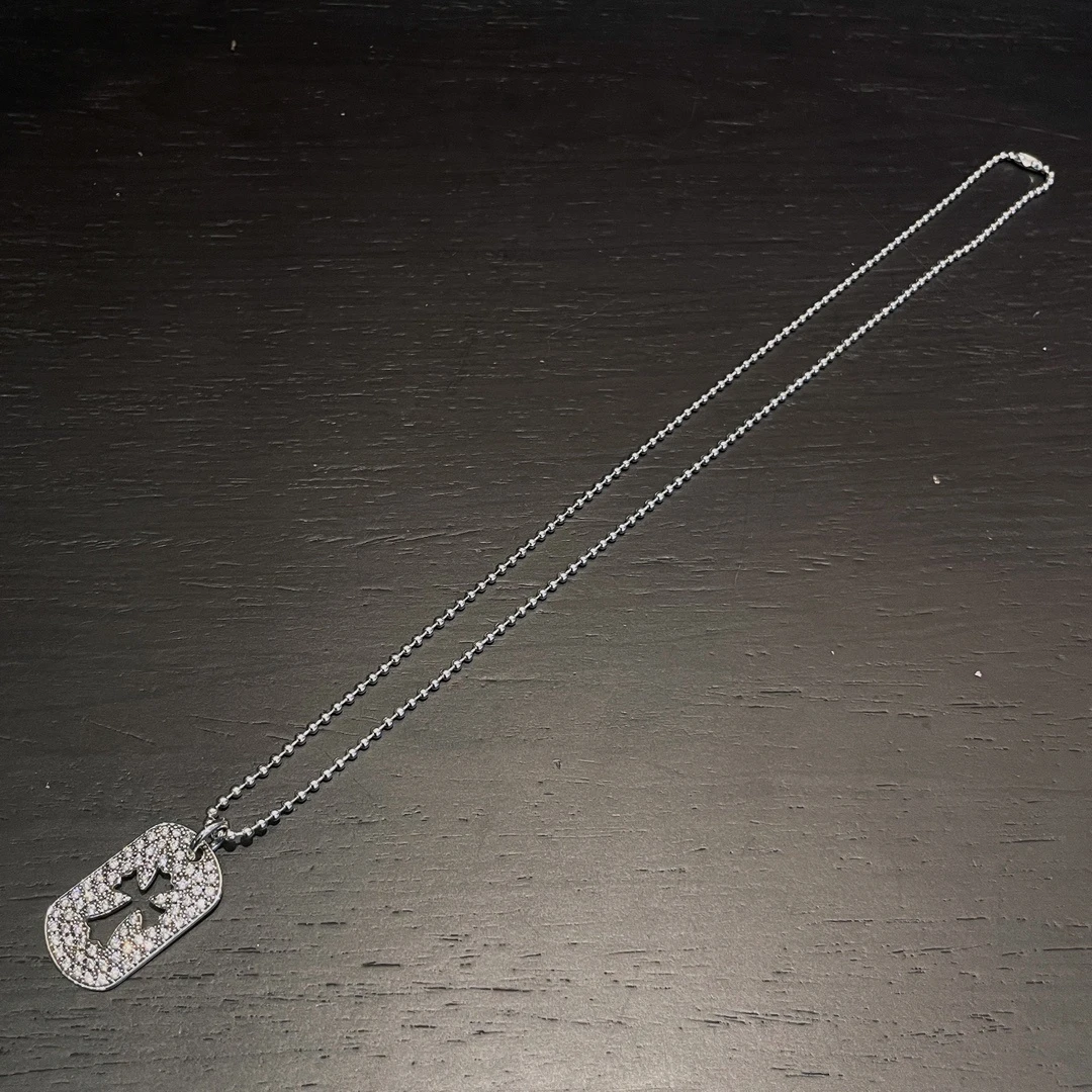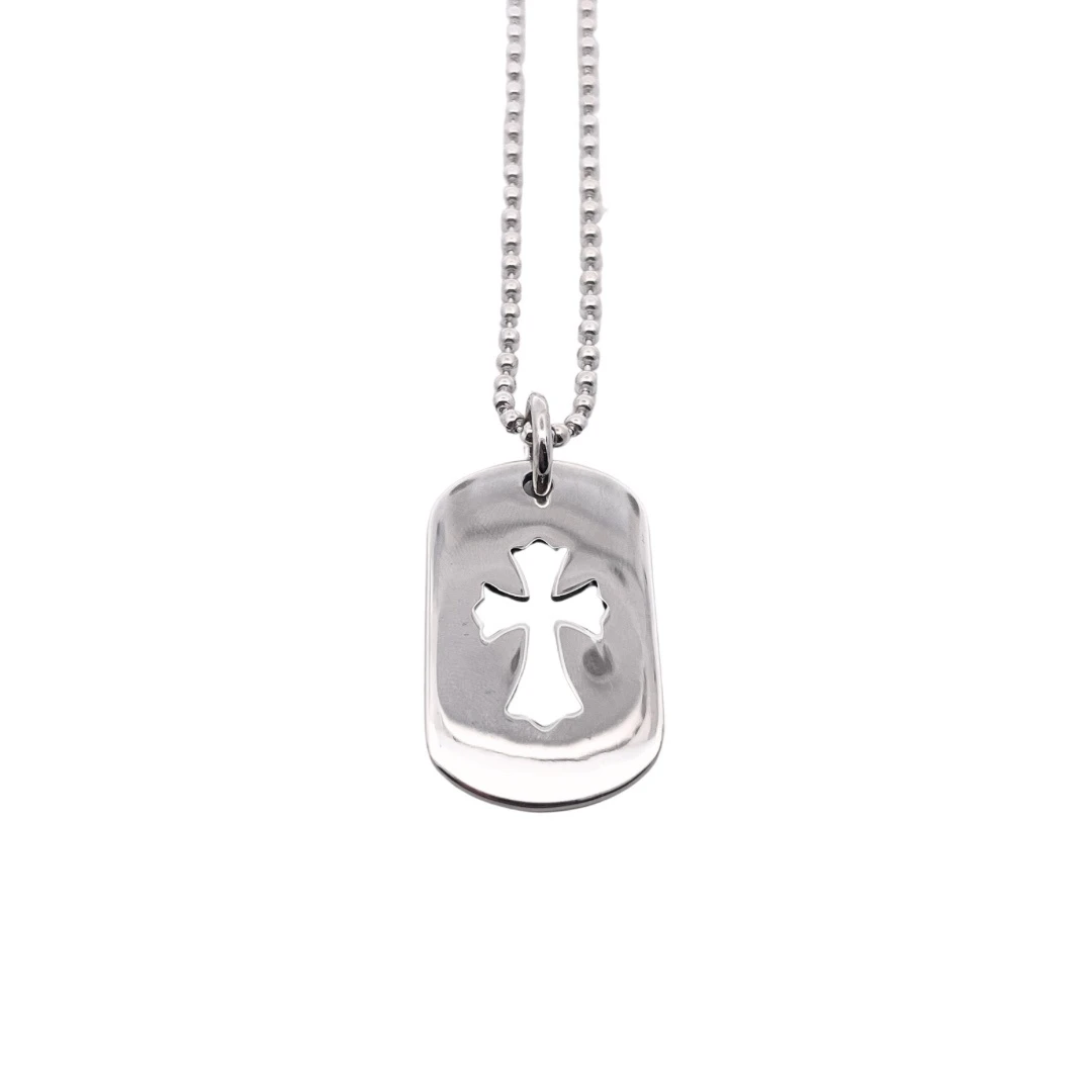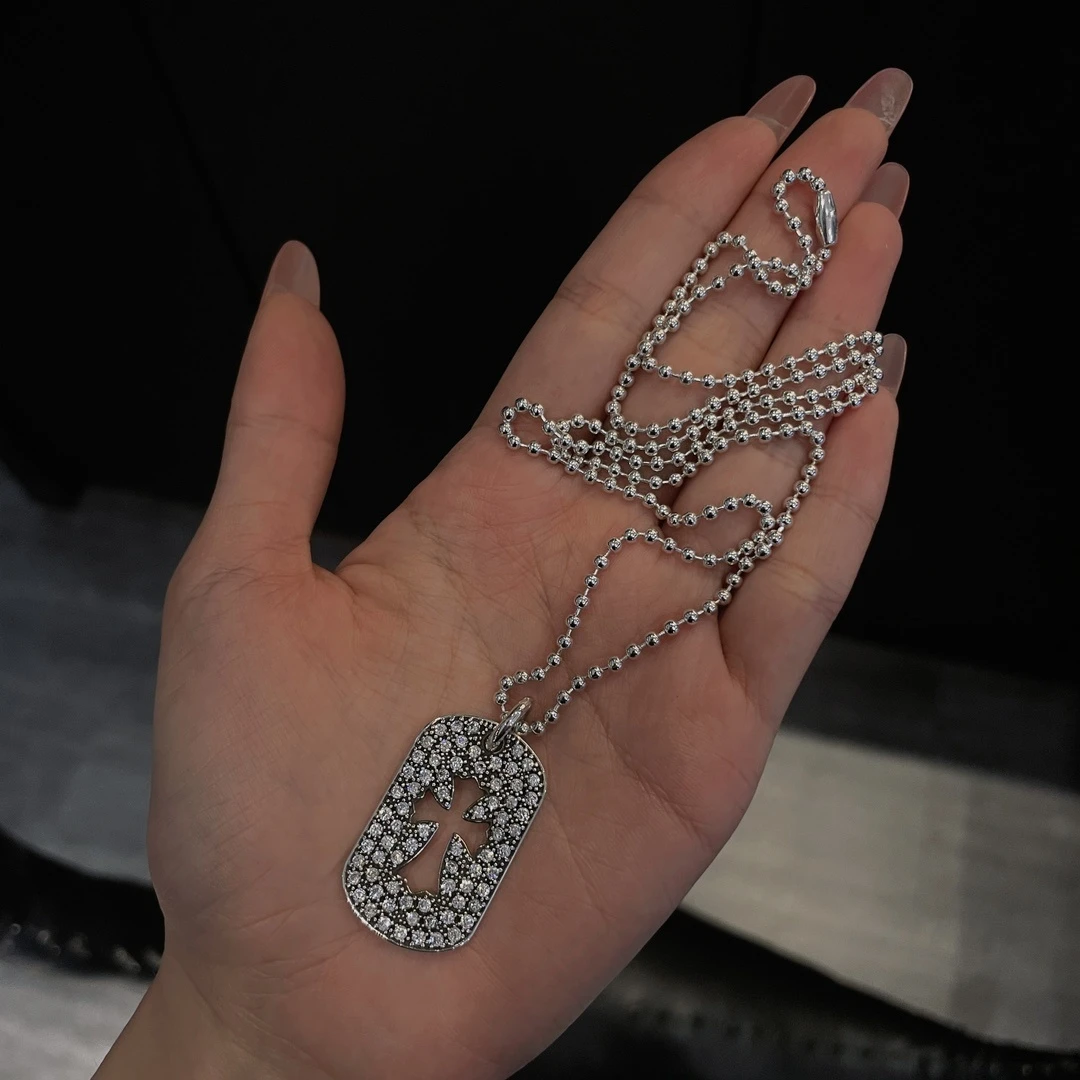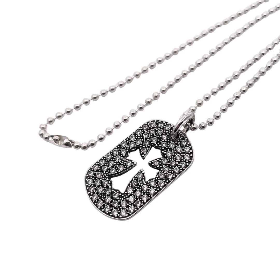 Chrome hearts Croix medium full diamond cut-out cross card Sterling silver material, vintage distressed, hand-inlayed, cross elements, white diamonds, with bead chain, fashion matching size:65cm Cod: 200680