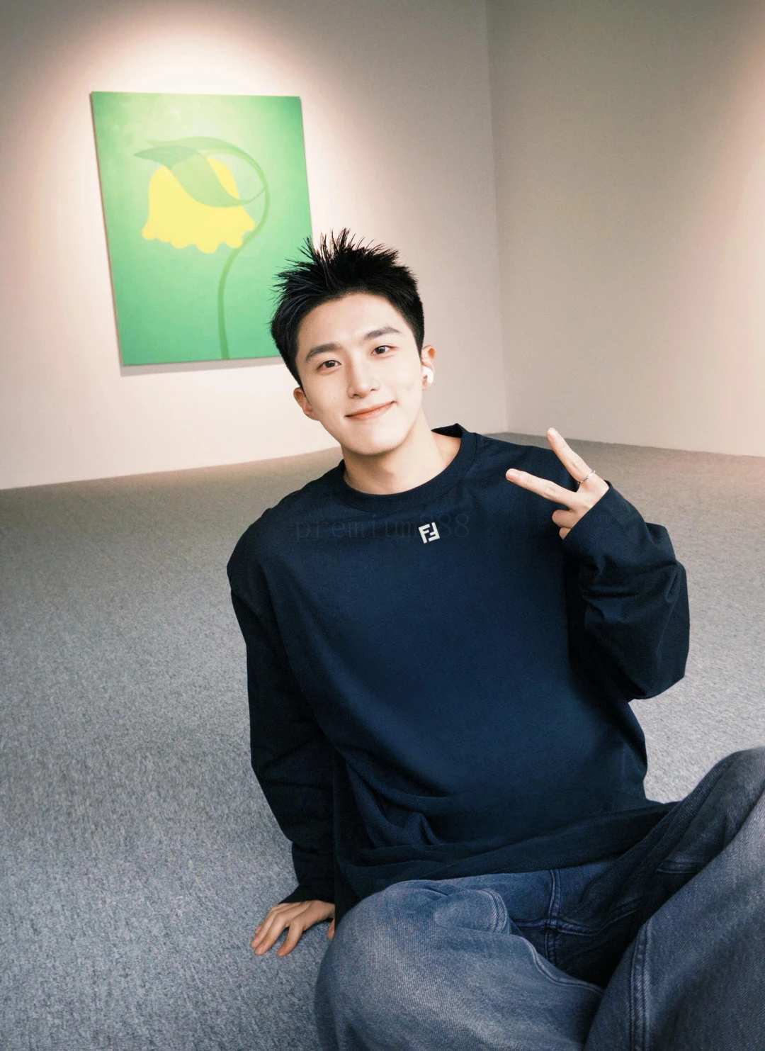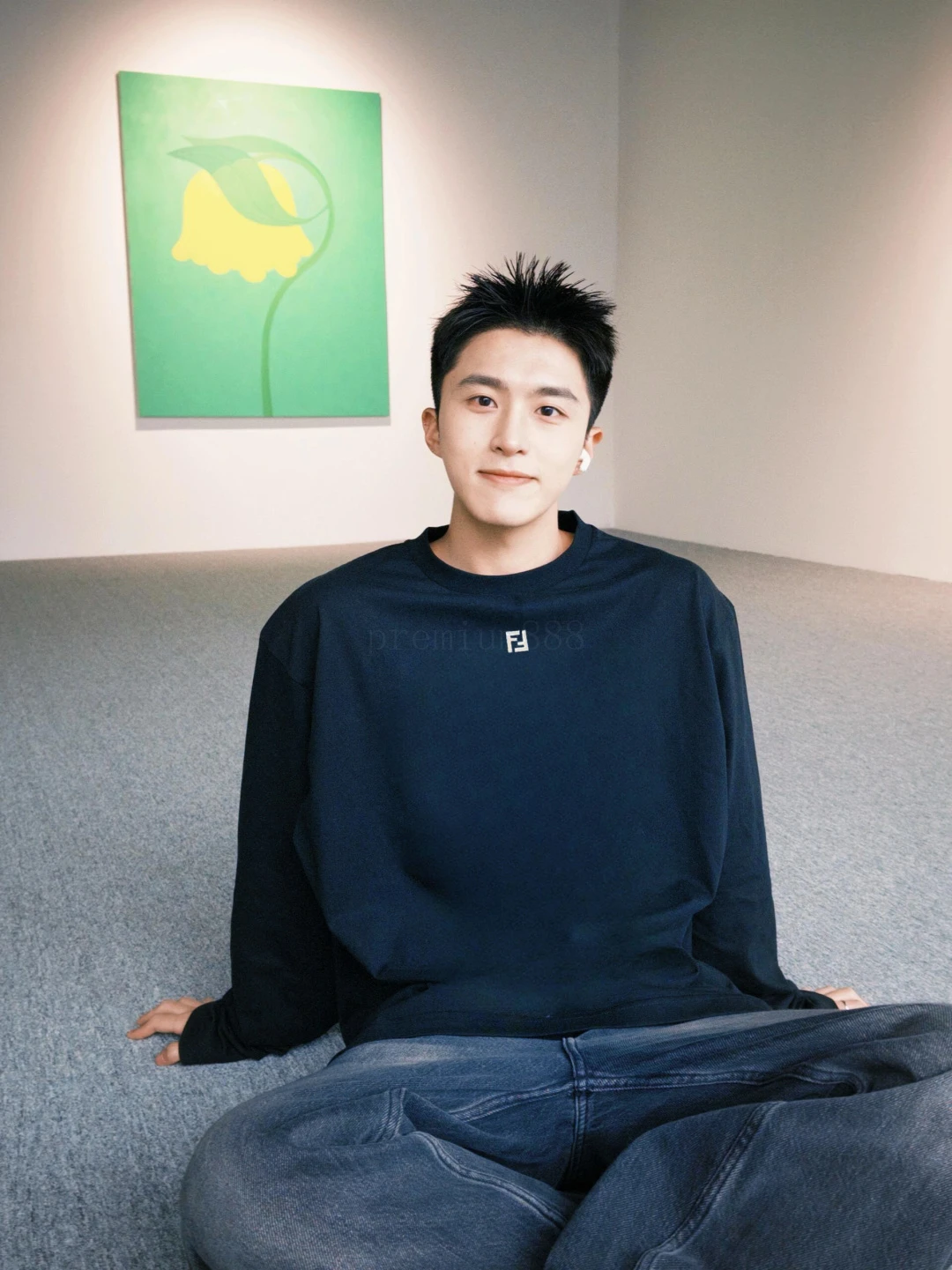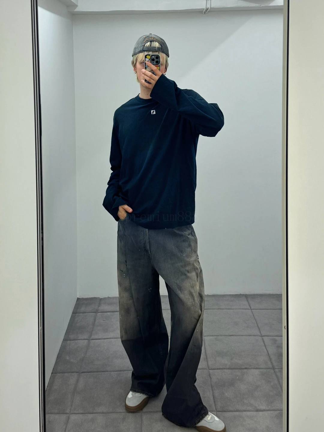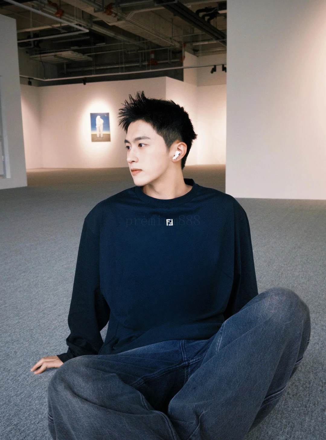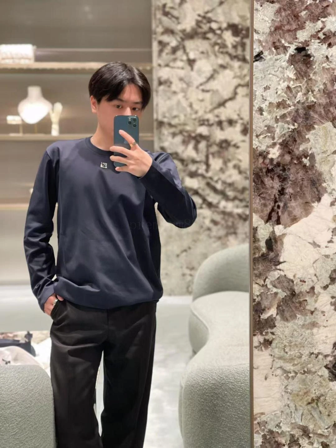 FD metal F-logo crew neck long sleeves Pure cotton royal blue, silver metal logo on the front, loose crew neck fit, and a full set of accessories # Double-sided long-staple cotton silk fabric Made of 60S single-yarn double-sided long-staple cotton, with a gram weight of 170g; With 32S 1×1 thread,
