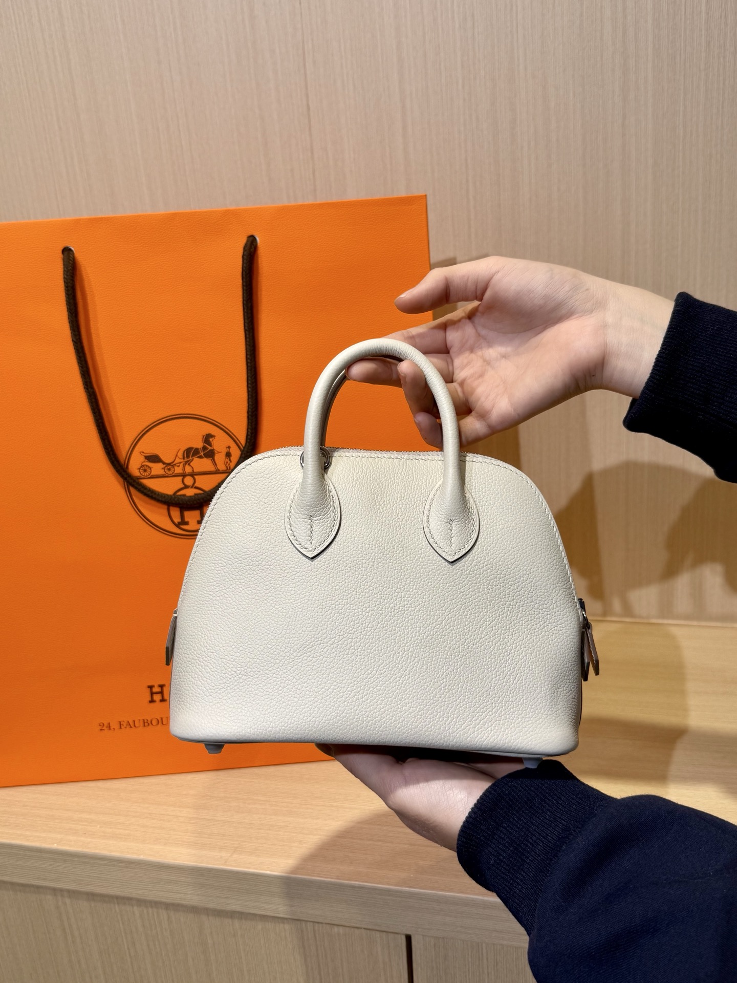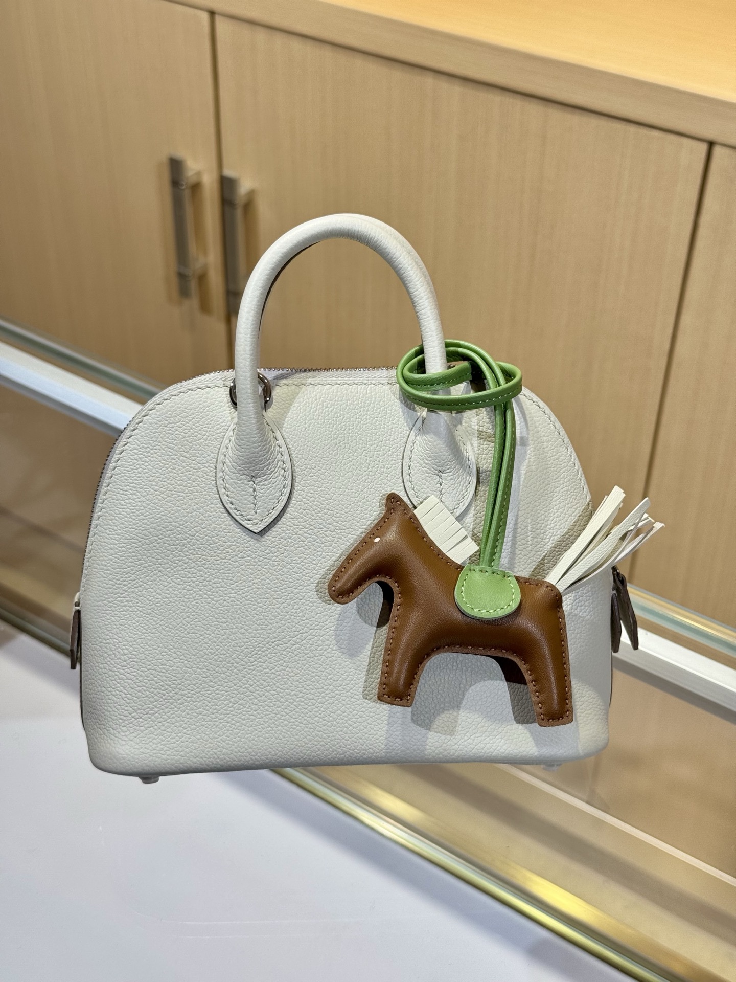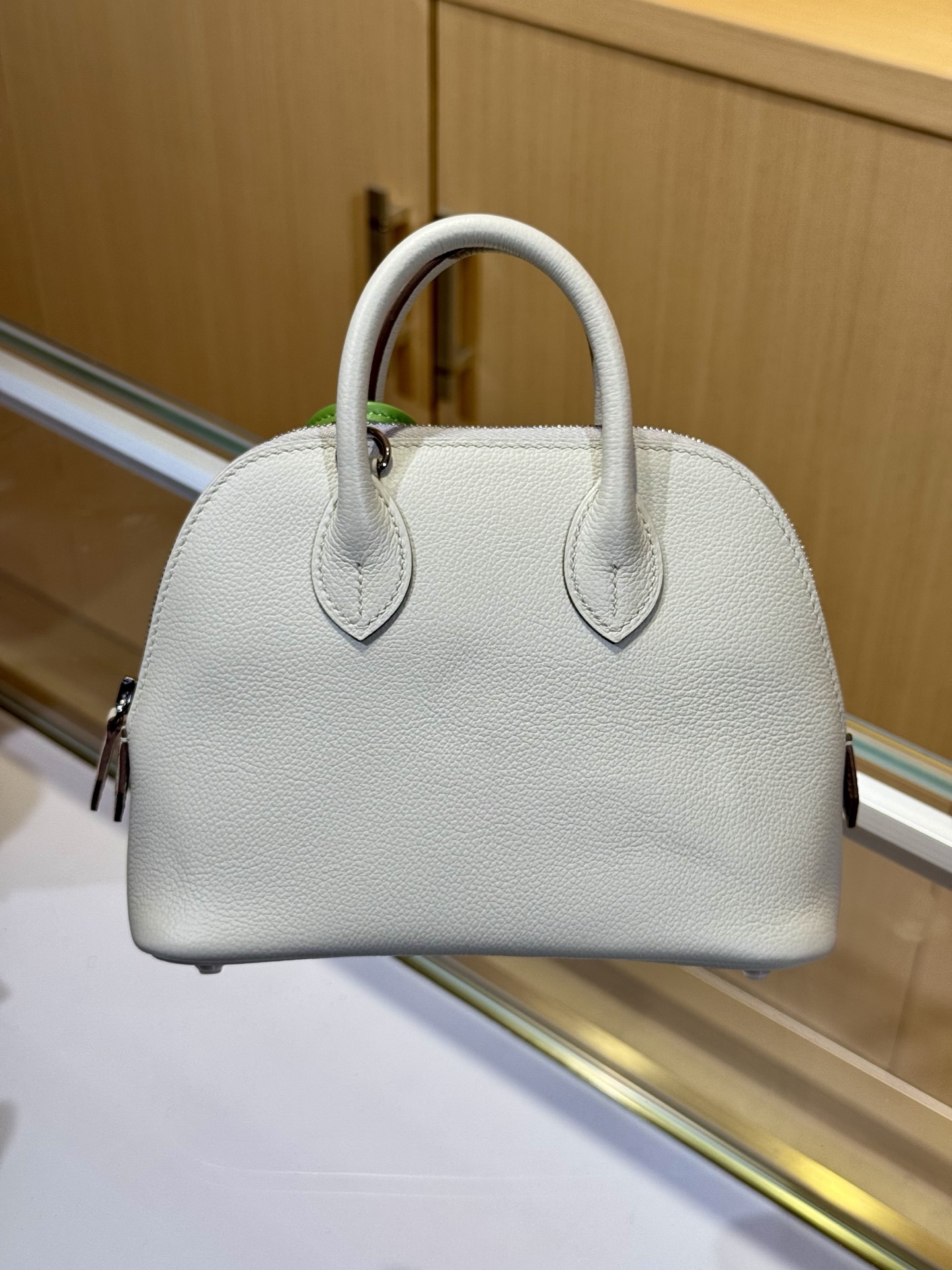 A small Hermès Kelly bag in Epsom leather, featuring a cream color.
