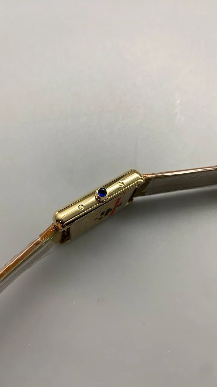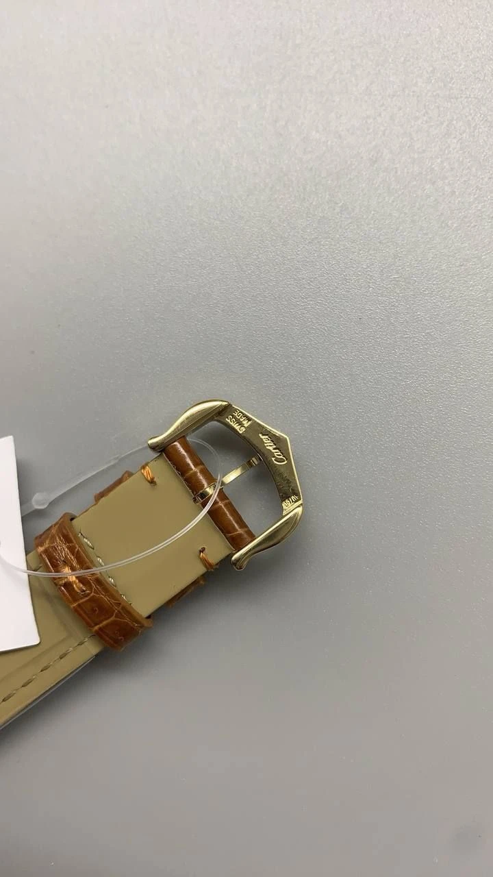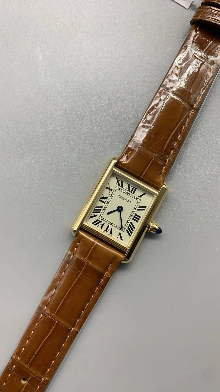 Часы Cartier Tank малого размера (Золотое покрытие, коричневый ремешок из аллигатора)