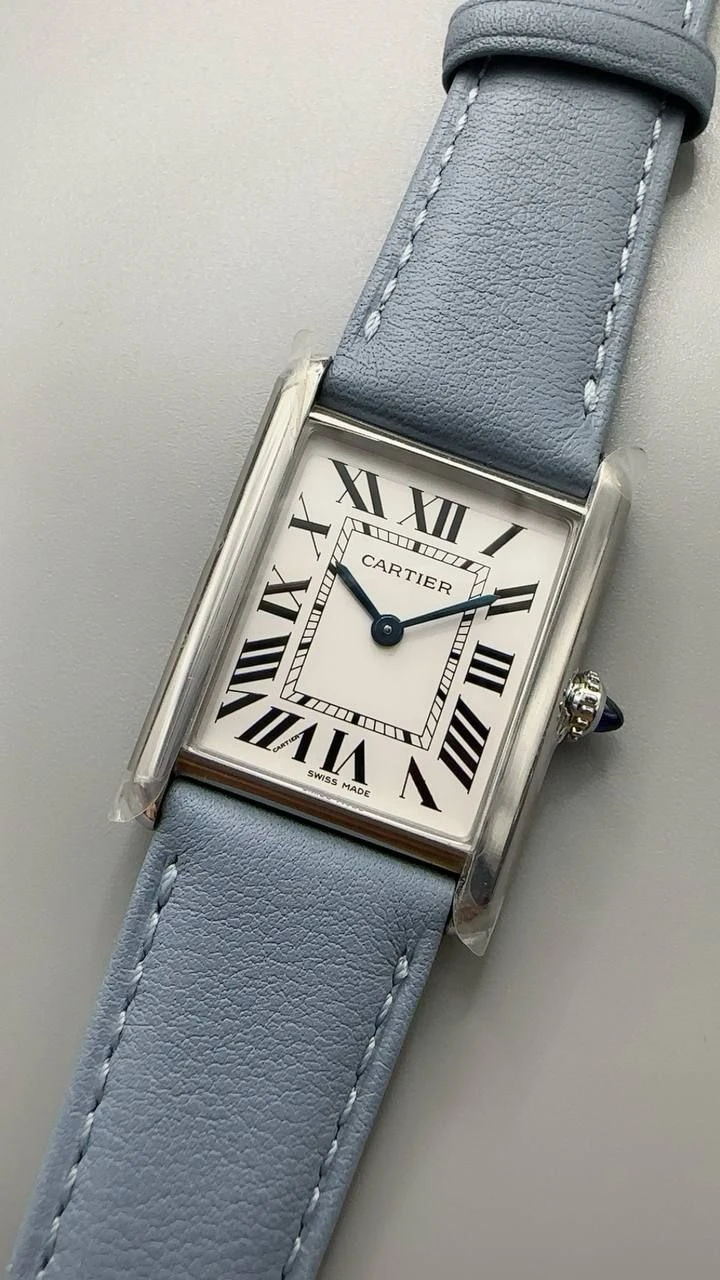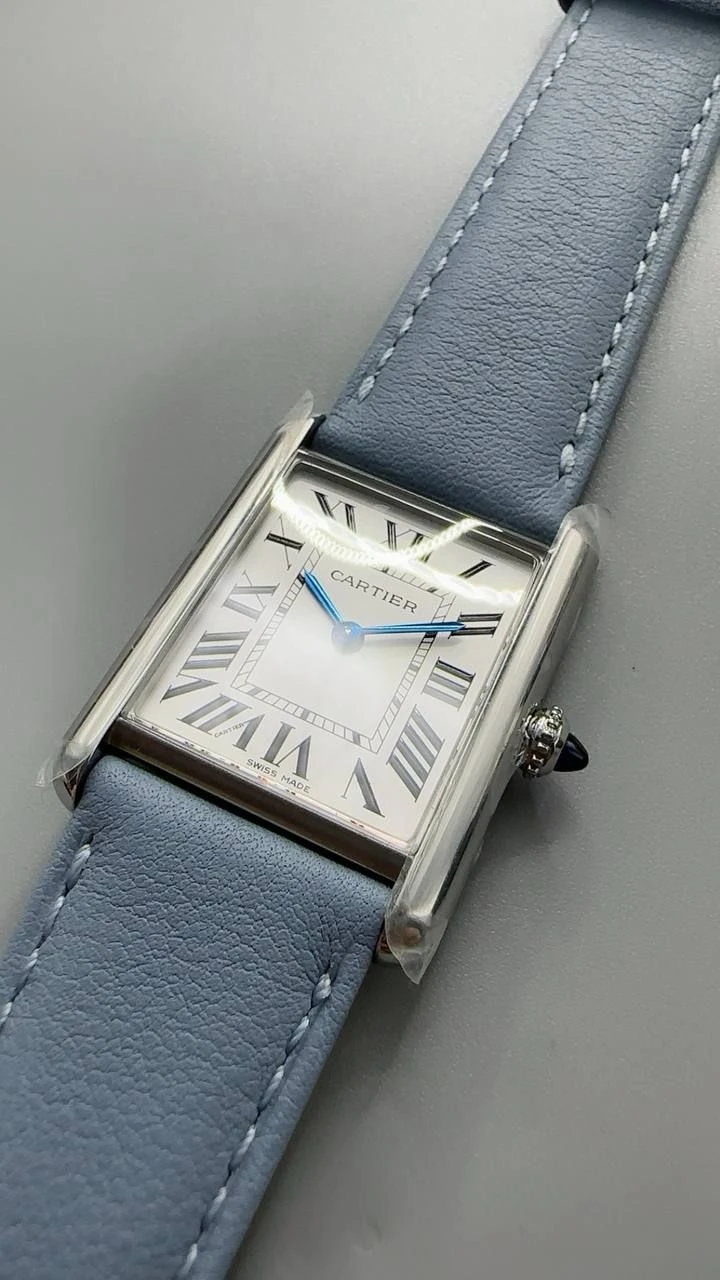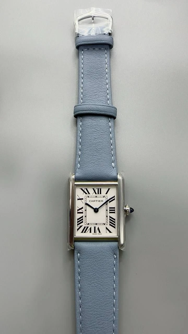 Часы Cartier Tank Must (Сталь, светло-голубой ремешок)