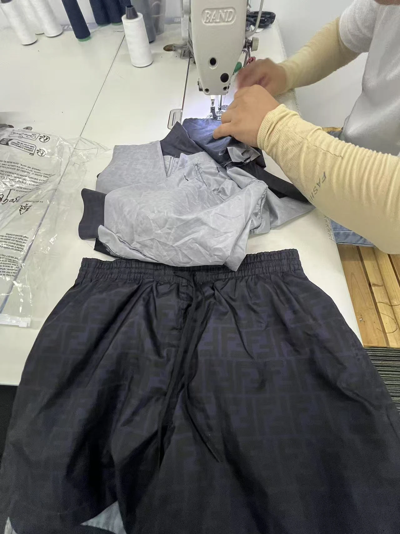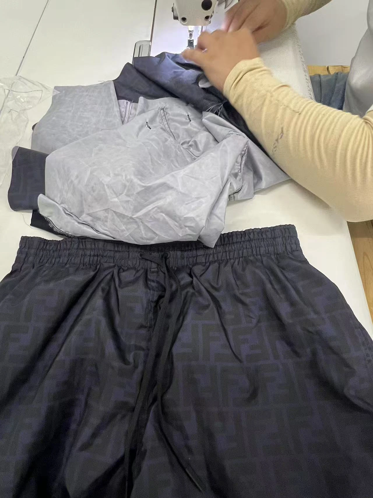FENDI FD Blue Double F Dark Pattern Nylon Beach Shorts Adopt nylon technology double F printing fabric, nylon lining, cloth printing, positioning and cutting bed, customized 1:1 corns, customized 1:1 tail clip, customized 1:1 trademark, fitted fit Size:42 44 46 48