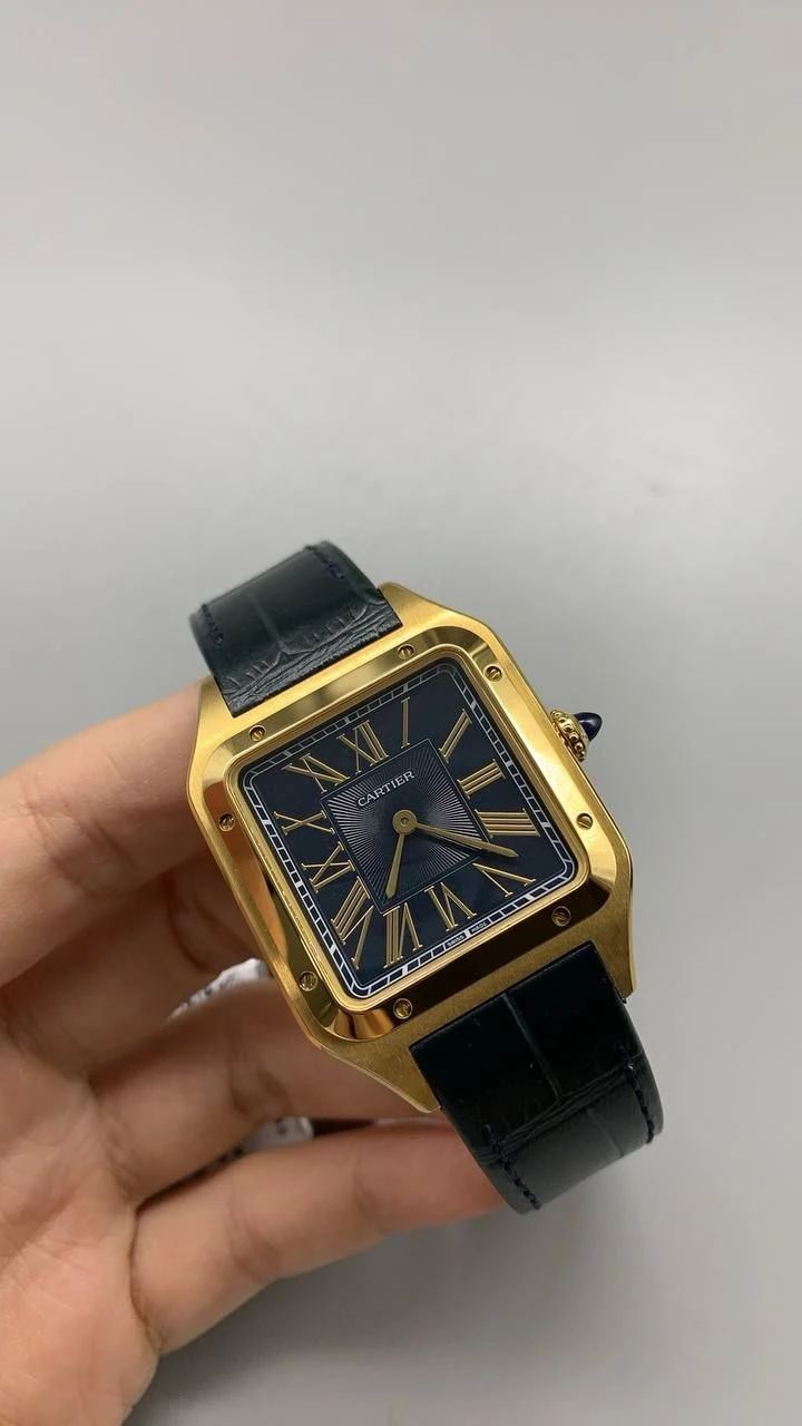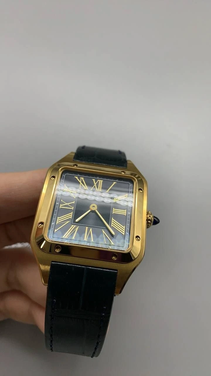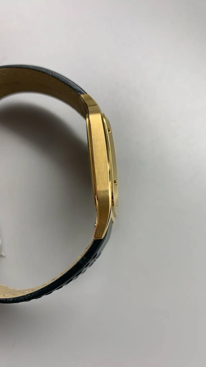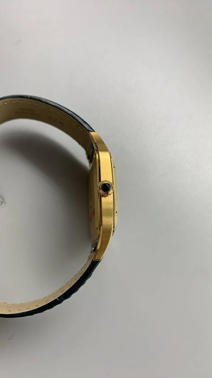 Часы Cartier Santos-Dumont (Черный циферблат, черный ремешок, позолота 18к)