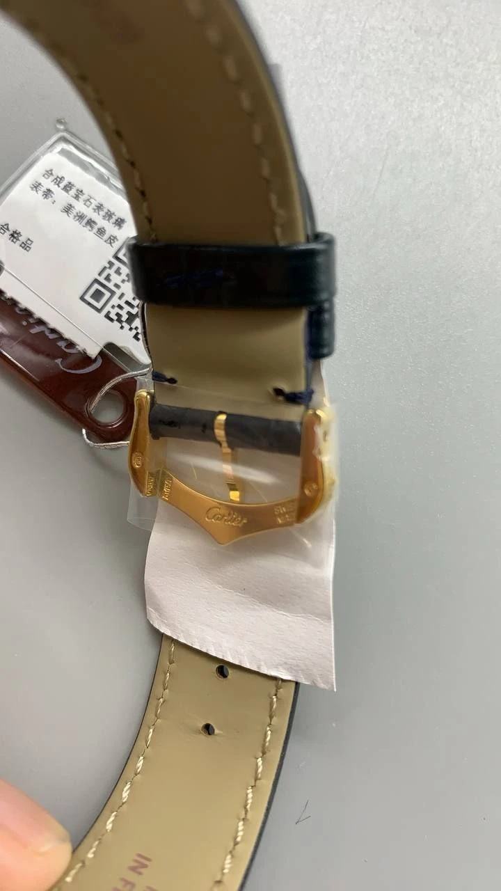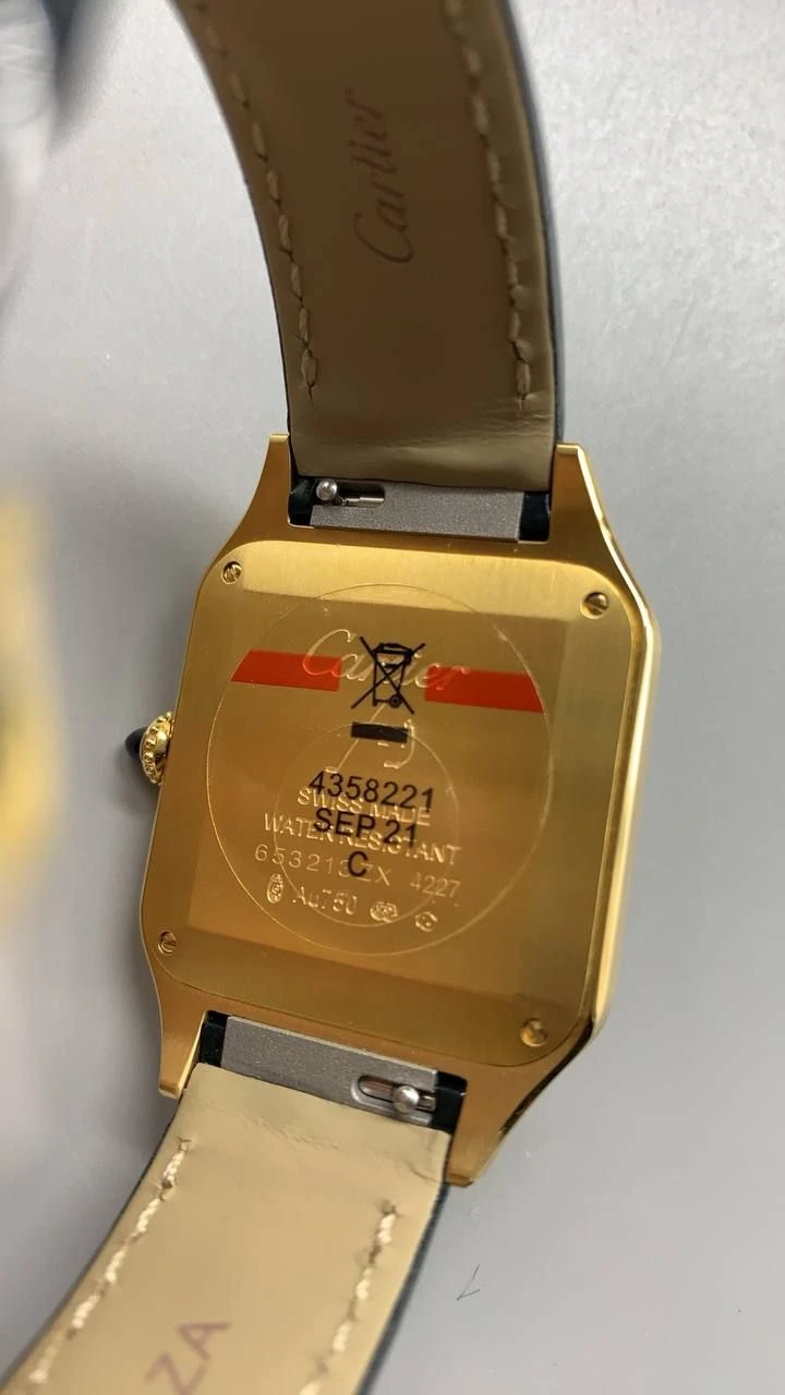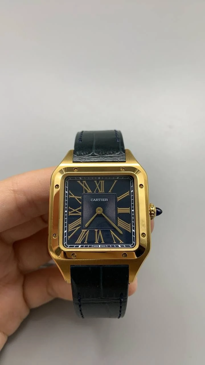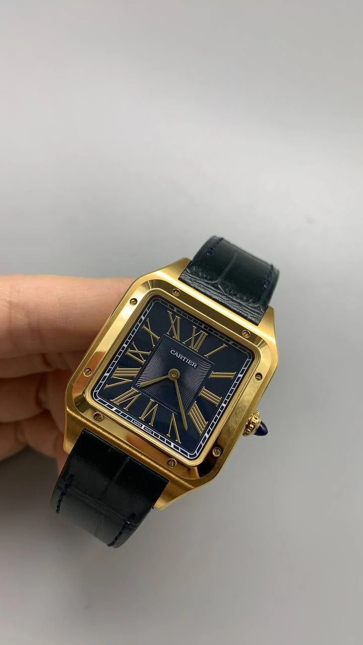 Часы Cartier Santos-Dumont (Черный циферблат, черный ремешок, позолота 18к)
