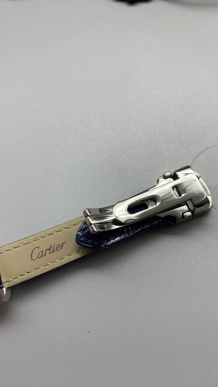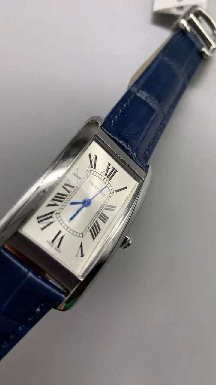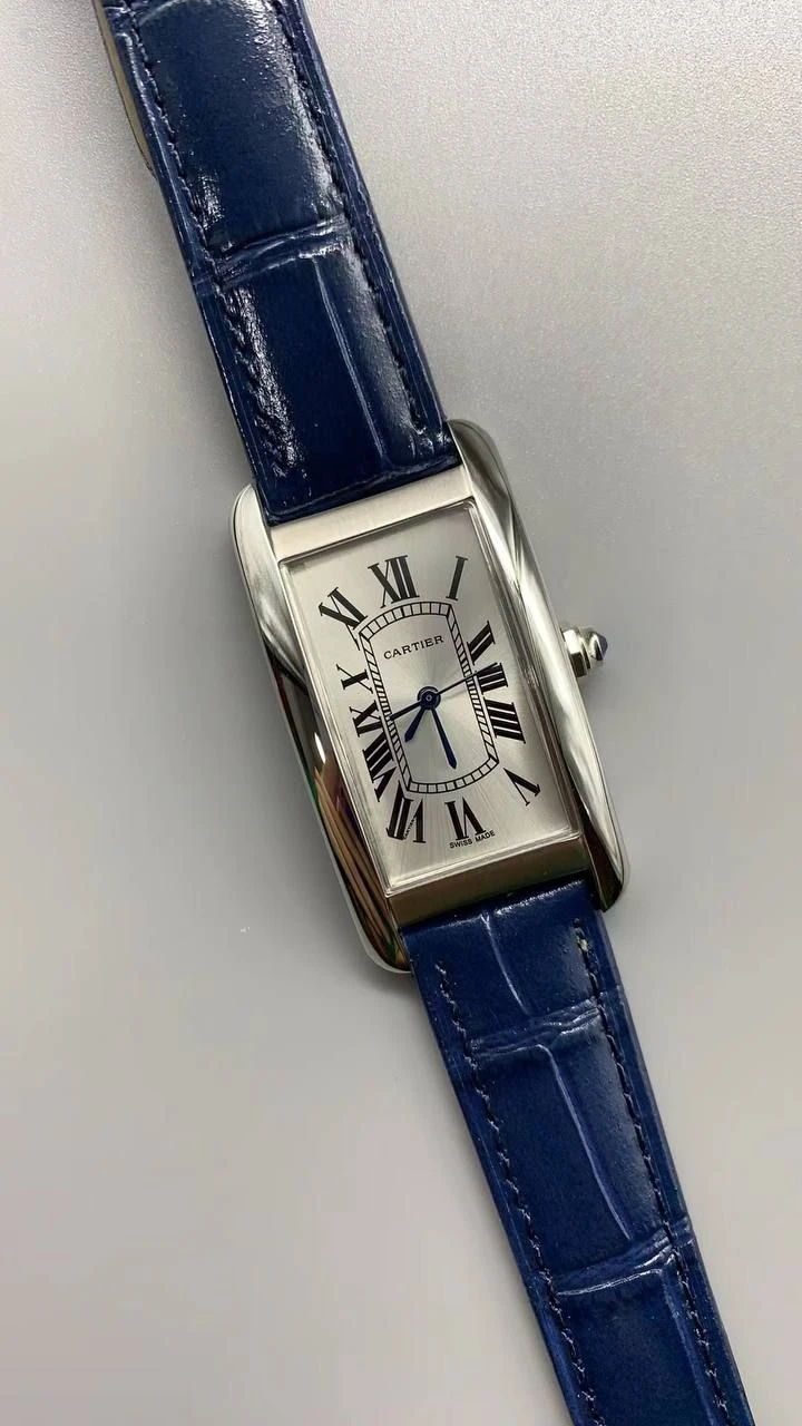 Часы Cartier Tank Americaine (Сталь, синий ремешок)
