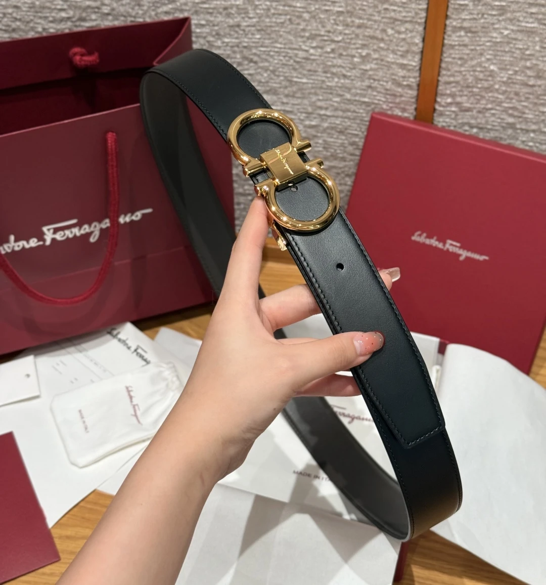 Ferragamo reversible adjustable Gancini belt This belt is one of the brand's classic accessories. It is elegant and timeless, with a classic Gancini buckle and brand lettering d