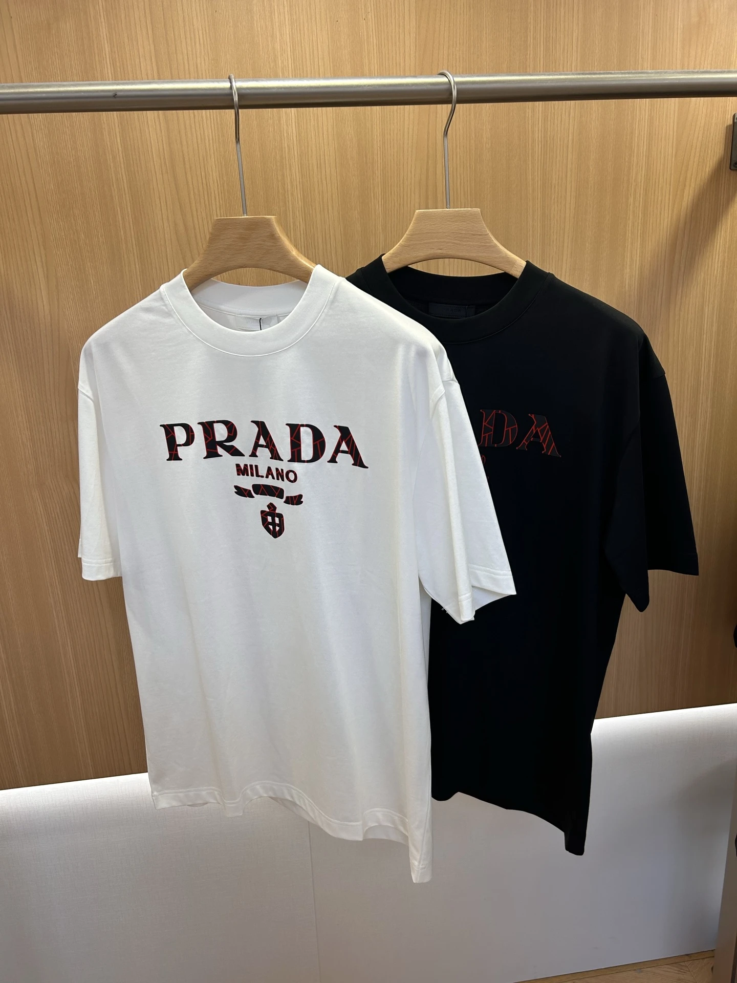 Prada PRADA 2026 Spring/Summer New Collection Launch Counter Latest Short-Sleeved Round-Neck T-Shirt. High-end customization. Bold and fashionable design! Brand logo with exquisite craftsmanship. High-end custom silk-painted long-pile cotton fabric. Soft texture. Comfortable to wear. Counter-level e