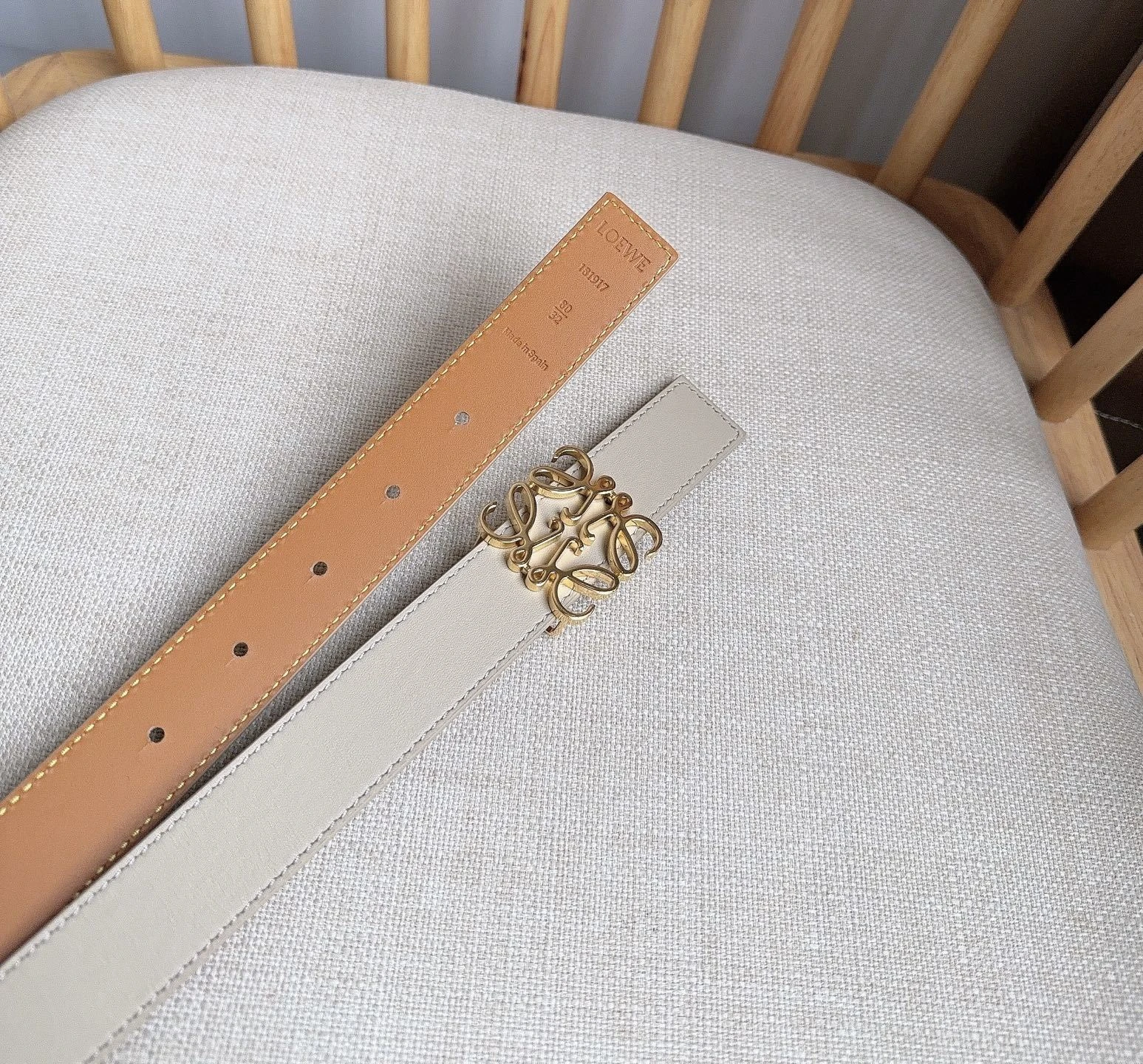 LOEWE latest exclusive belt Width: 2.8cm. Made of smooth cowhide leather on both sides. Equipped with Anagram pin buckle with five-hole adju