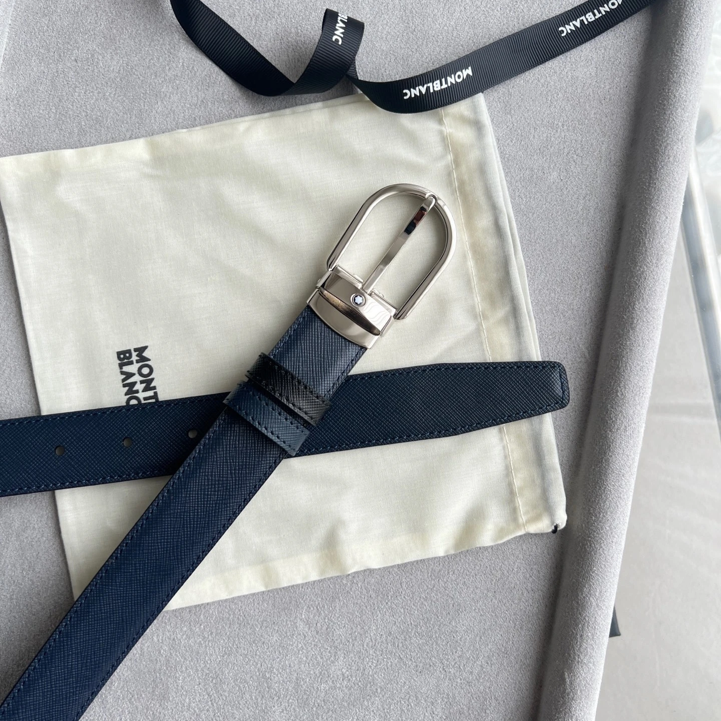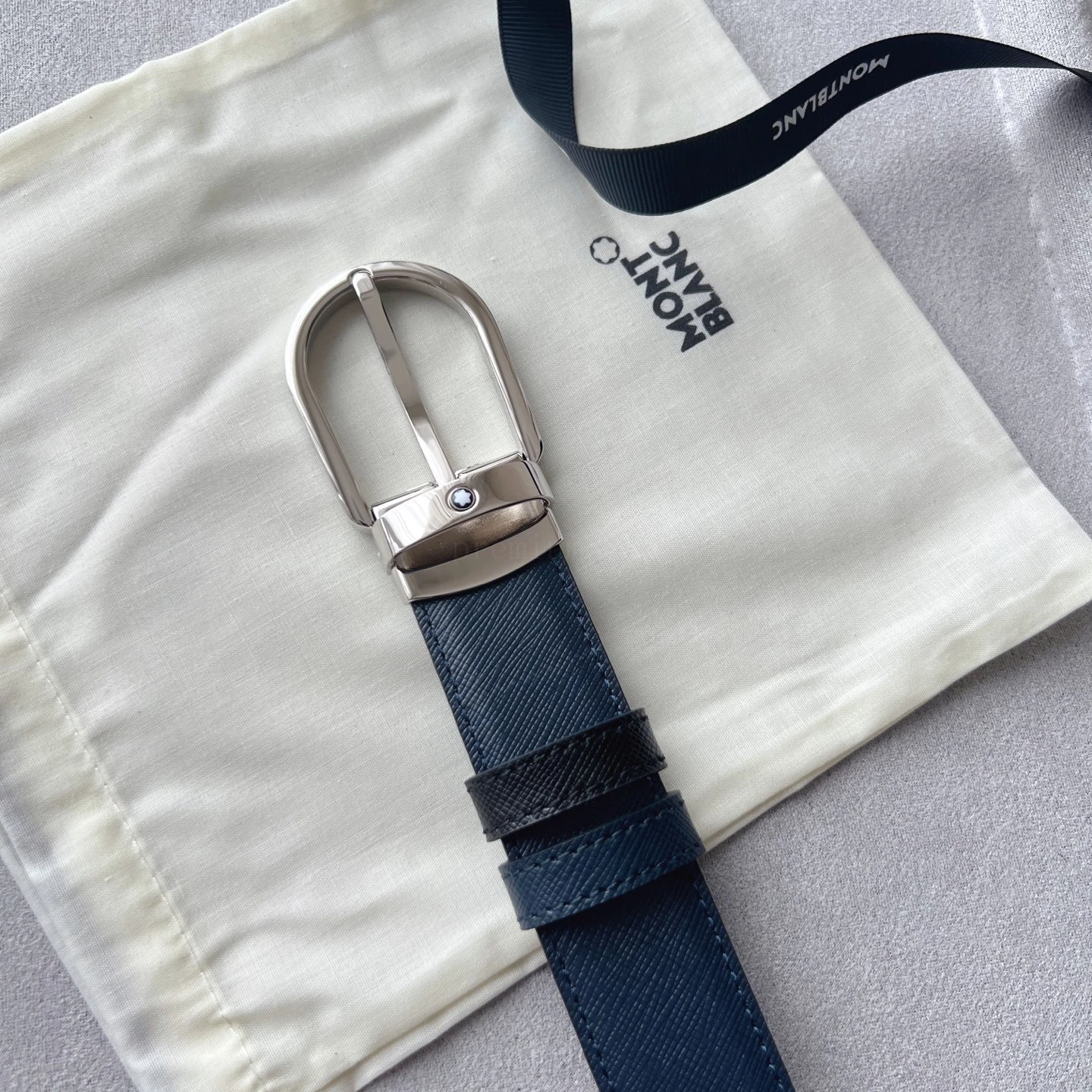 Horseshoe-shaped buckle black/brown double-sided leather belt (30mm) Horseshoe-shaped shiny rhodium-plated buckle. Adjustable length, 3cm x 120cm, black and brown double-sided l