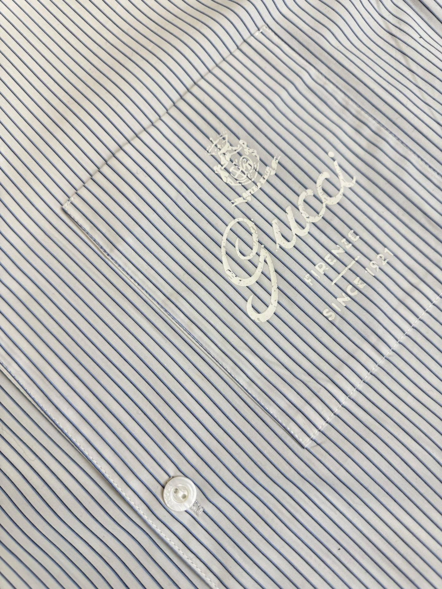 Gucci pocket crown logo printed striped short-sleeved shirt size: s, m, l, xl