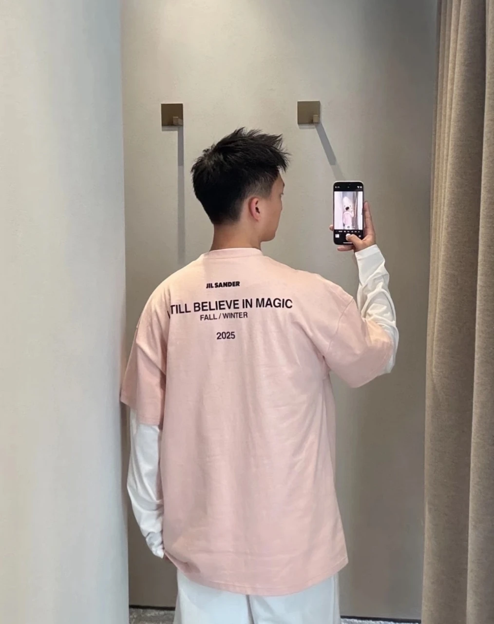 JIL really has two pink pieces The face is made of 26s230g combed cotton, while the bottom is commonly made of 40s180g high-density smooth cotton. The fabric is custom-woven with all-cotton material, and the color is color-matched. It features a dust-free and double-sided singling process, providin