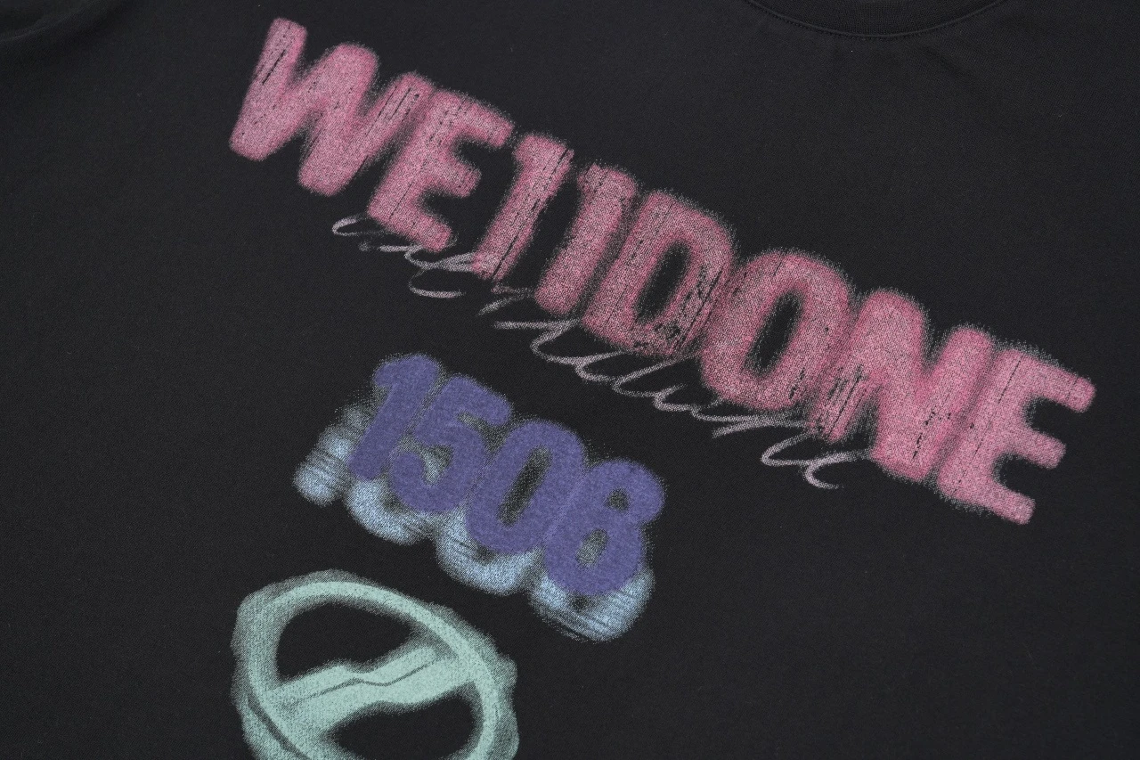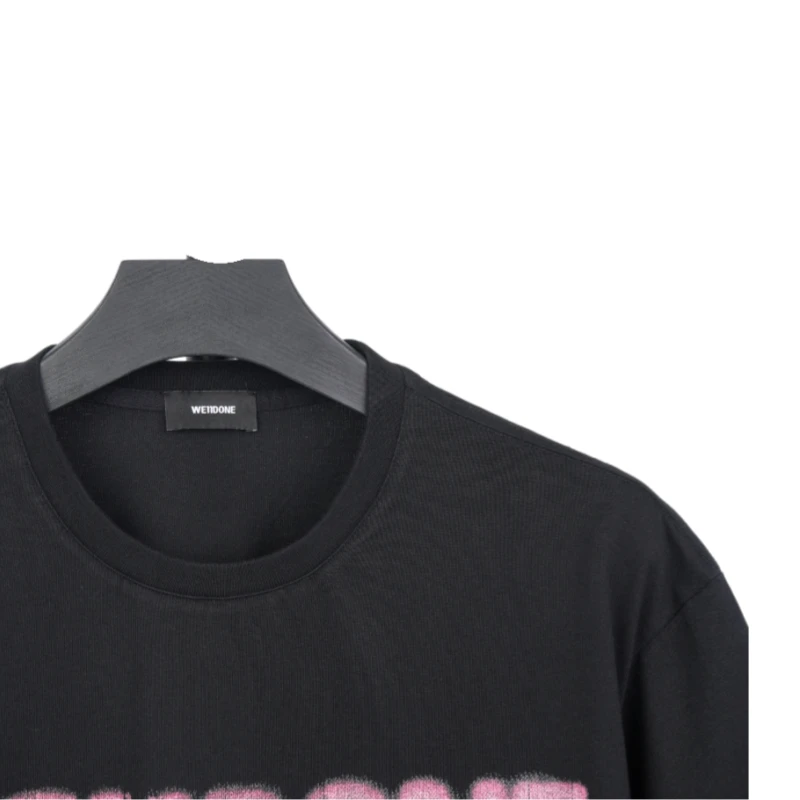 26we11 couple blurred logo T-shirt The fabric is 100% cotton, 26 yarns, 220 grams plain weave fabric. The neckline thread is 1x1 elastic thread. The entire garment is designed in an os loose and fashionable style. There is also a logo embroidery of the same color pattern in the middle of the lower p