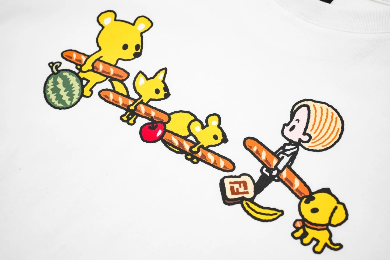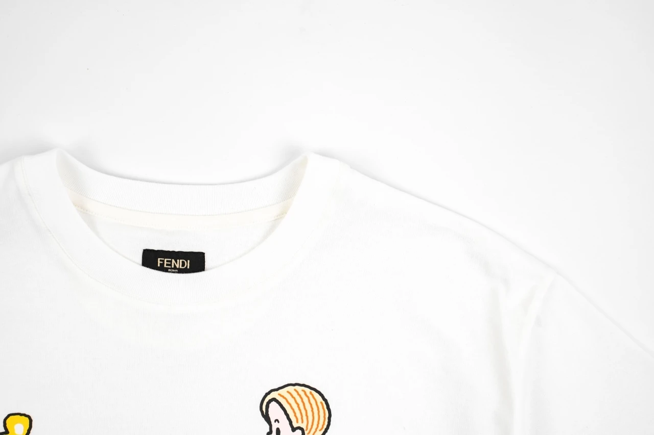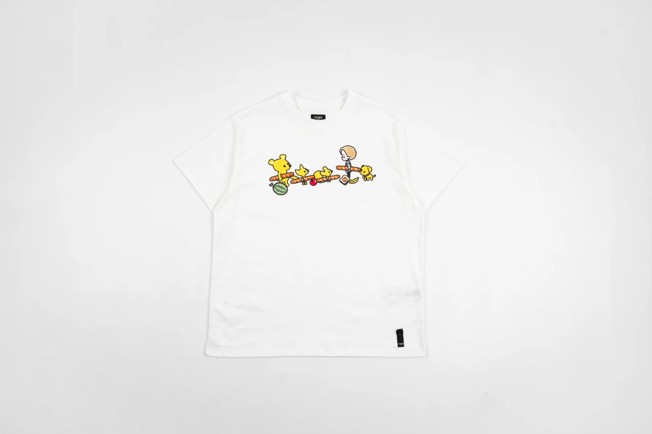 Fendi bear figure short sleeve Main cloth: 40 double-strand combed long-staple cotton plain weave, 200 grams Rib: 21 count of fine cotton 1×1 rib, 260 grams Here are a few keywords to keep in mind: "Double-stranded, long-staple, combed", to achieve the same effect of the original fabric, the cost h
