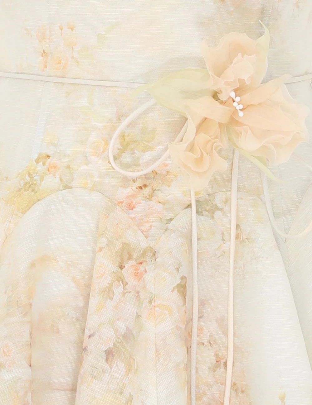 Zimmerman Layers of lace, like moonlight kneaded into the hem. The wide black belt is a cool-toned footnote, adding sharp edges to the romance