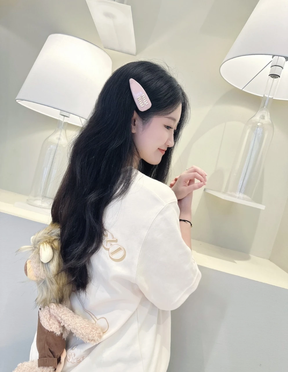 MIU MIU pink and white hair clips "Advanced Pink and White Metaphysics ▪️ 0.3% grayish powder - whiteness comparable to a polished plate The Yellow-skinned Redeemer ▪️ cold white satin - produced with pearl stud earrings/silver jewelry The third luster that is neither gold nor silver ▪️ taboos: I d